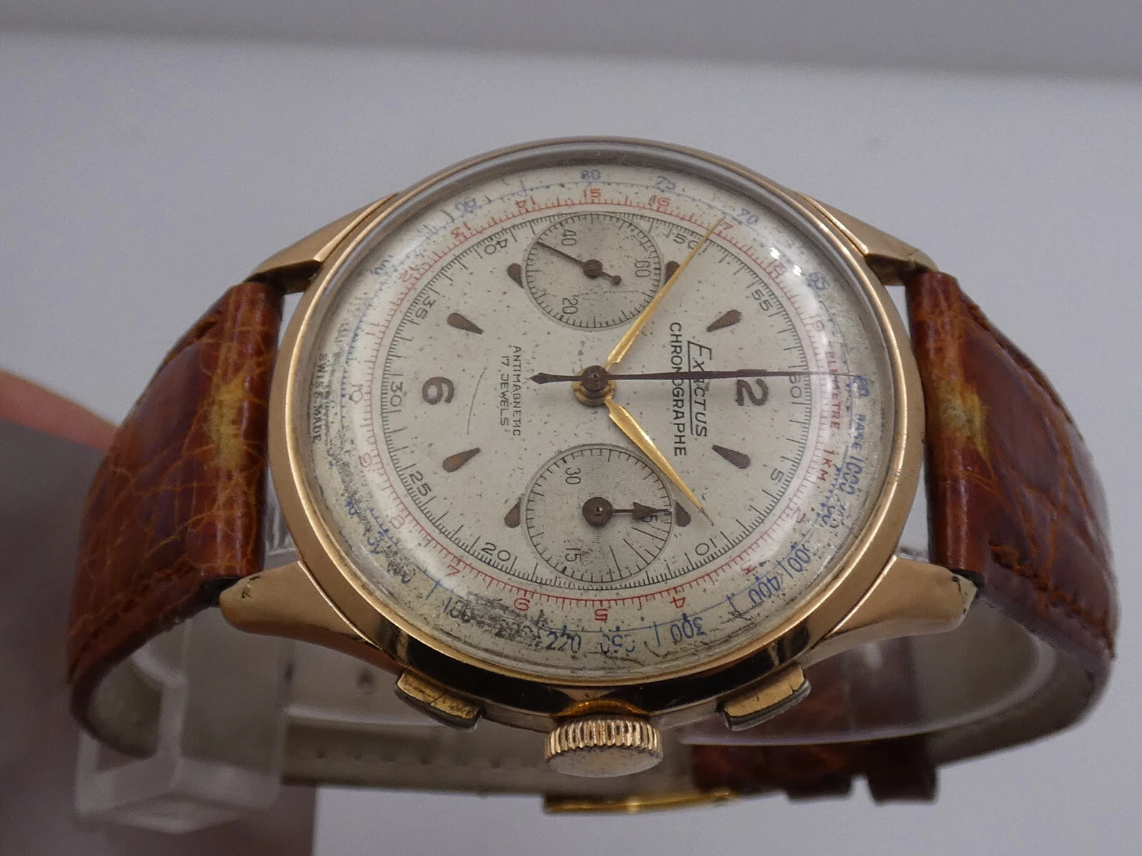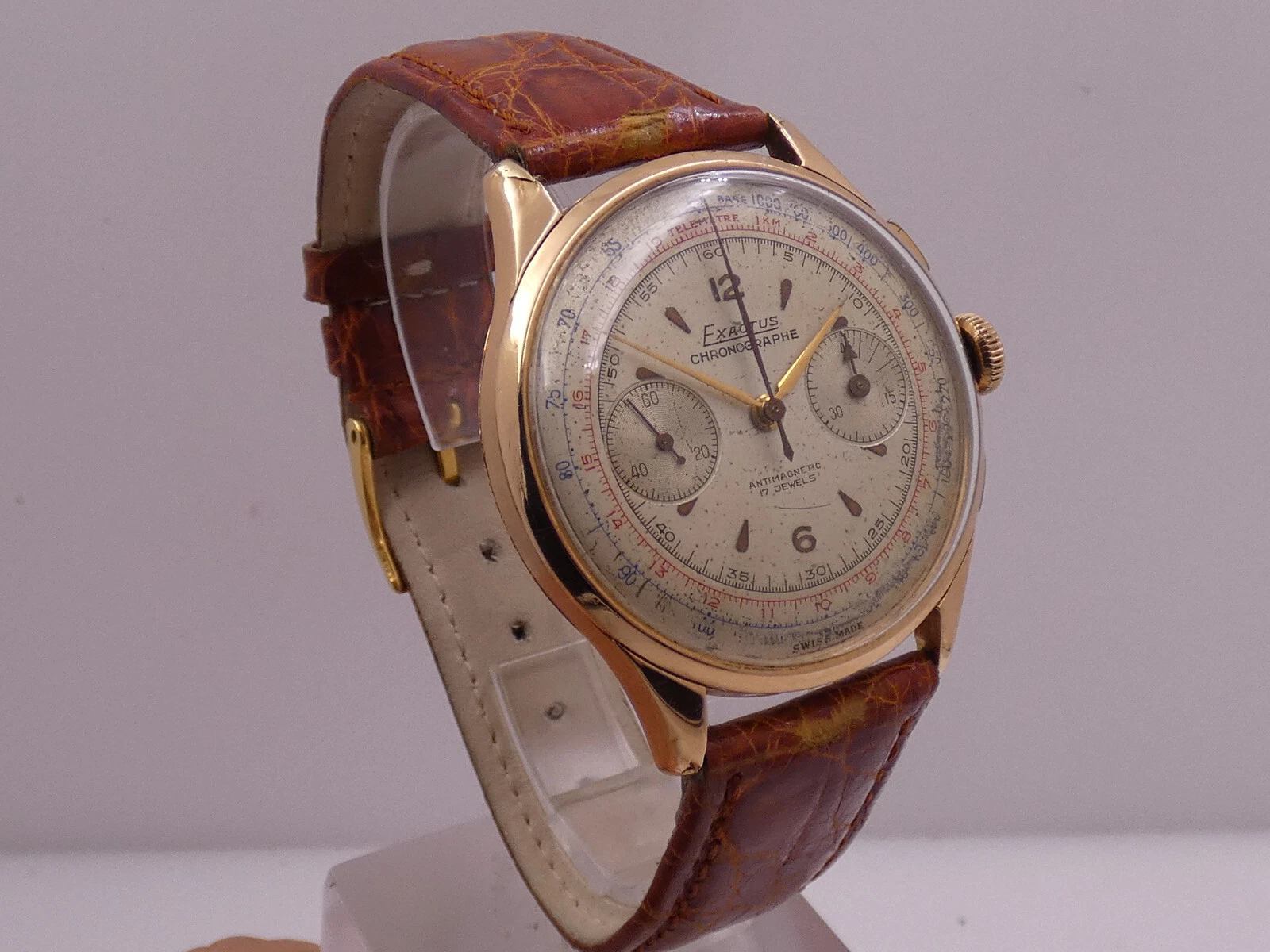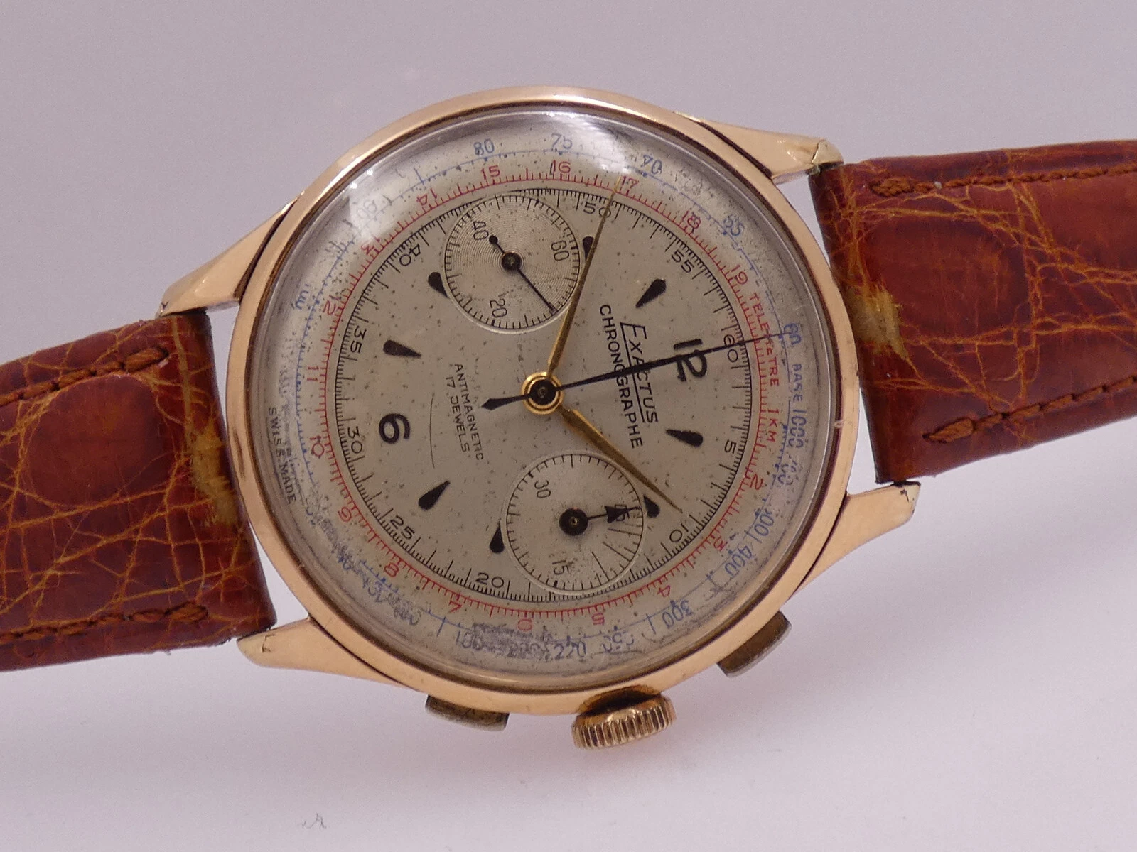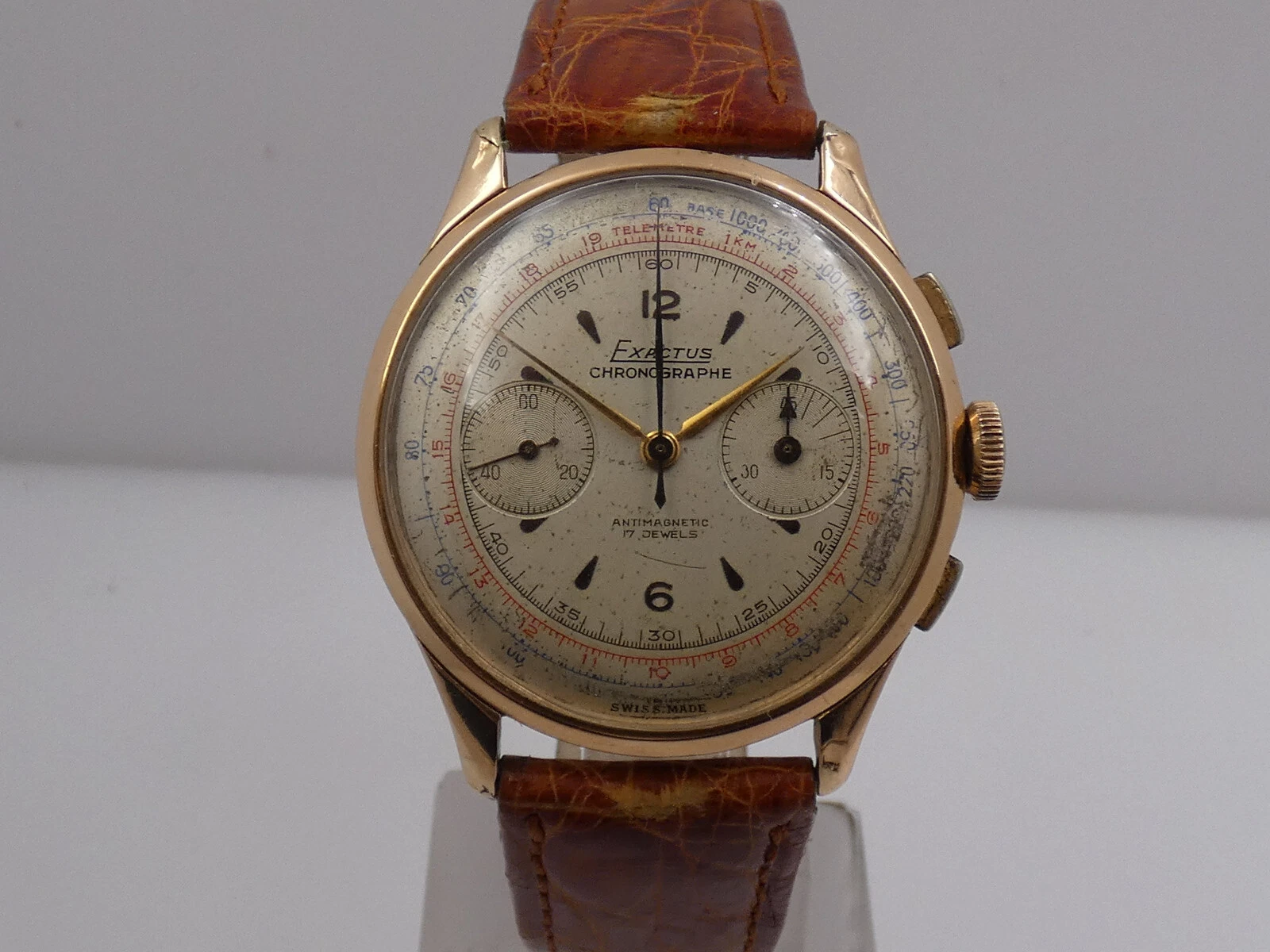 EXACTUS CHRONOGRAPH 18 Kt GOLD OVERSIZE 38mm VENUS 175 YEARS '50s MANUAL WATCH