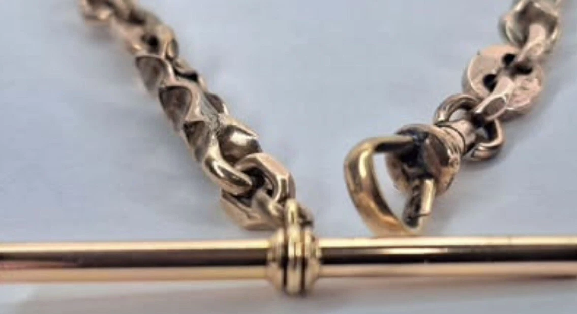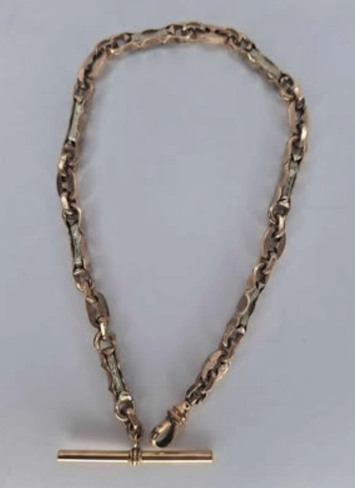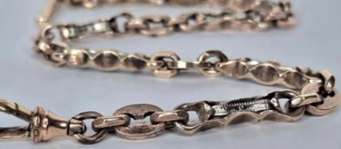 RARE Antique Solid Rose Gold and Platinum Albert Pocket Watch Chain