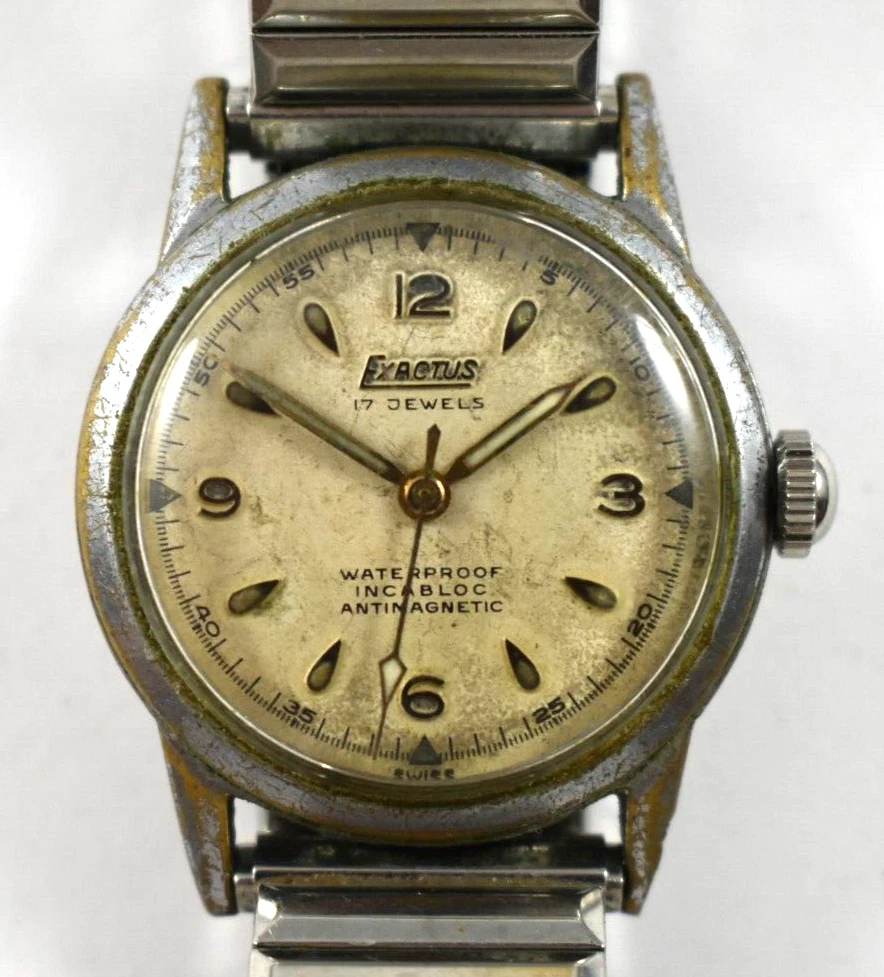 Vintage Swiss Made Exactus 30.90mm Case Manual Wind 17J Wrist Watch Runs lot.rj