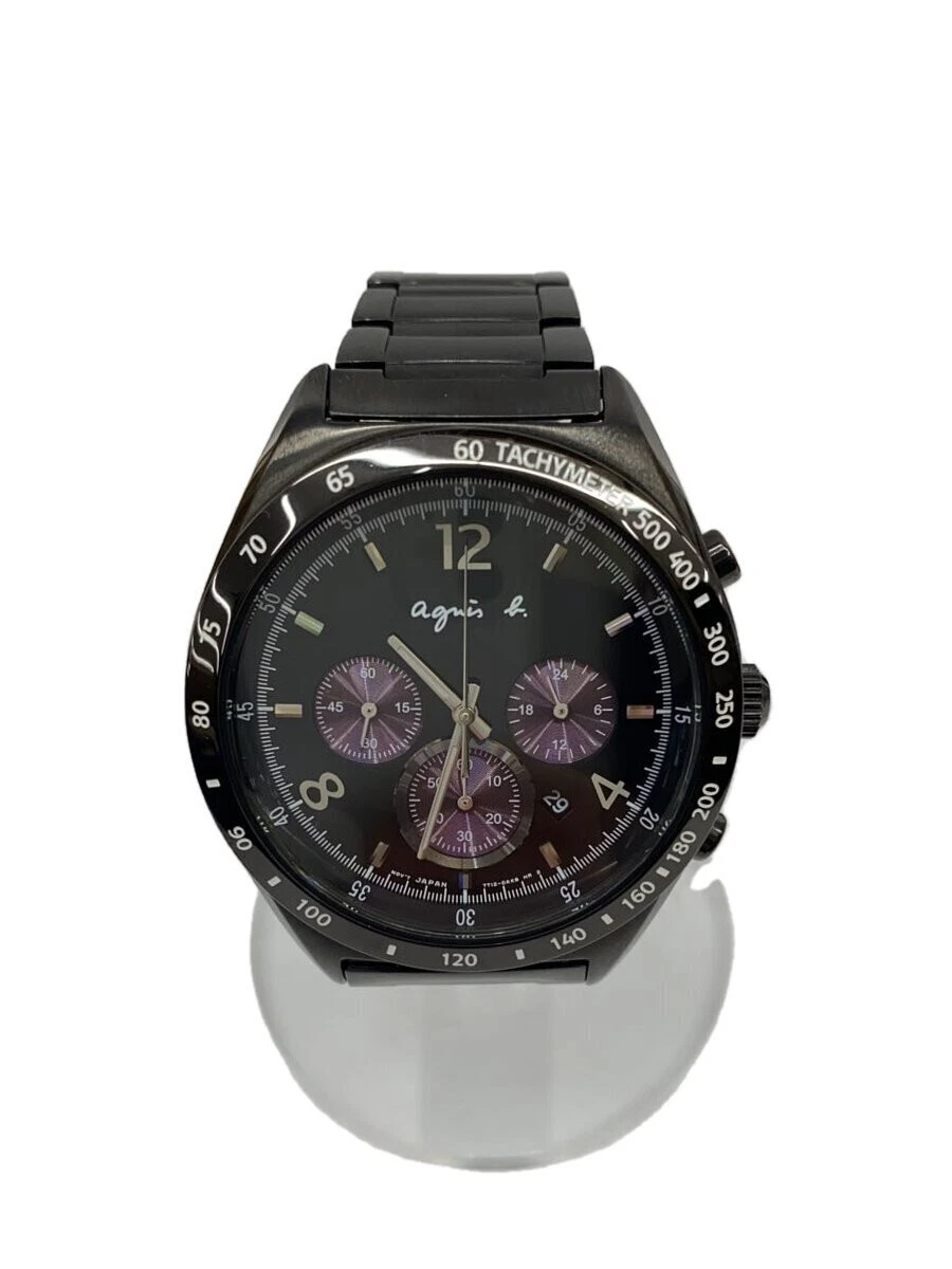 agnès b. 7t12-0ap0 Quartz Analog Stainless Black Men's Watch Used Good Condition