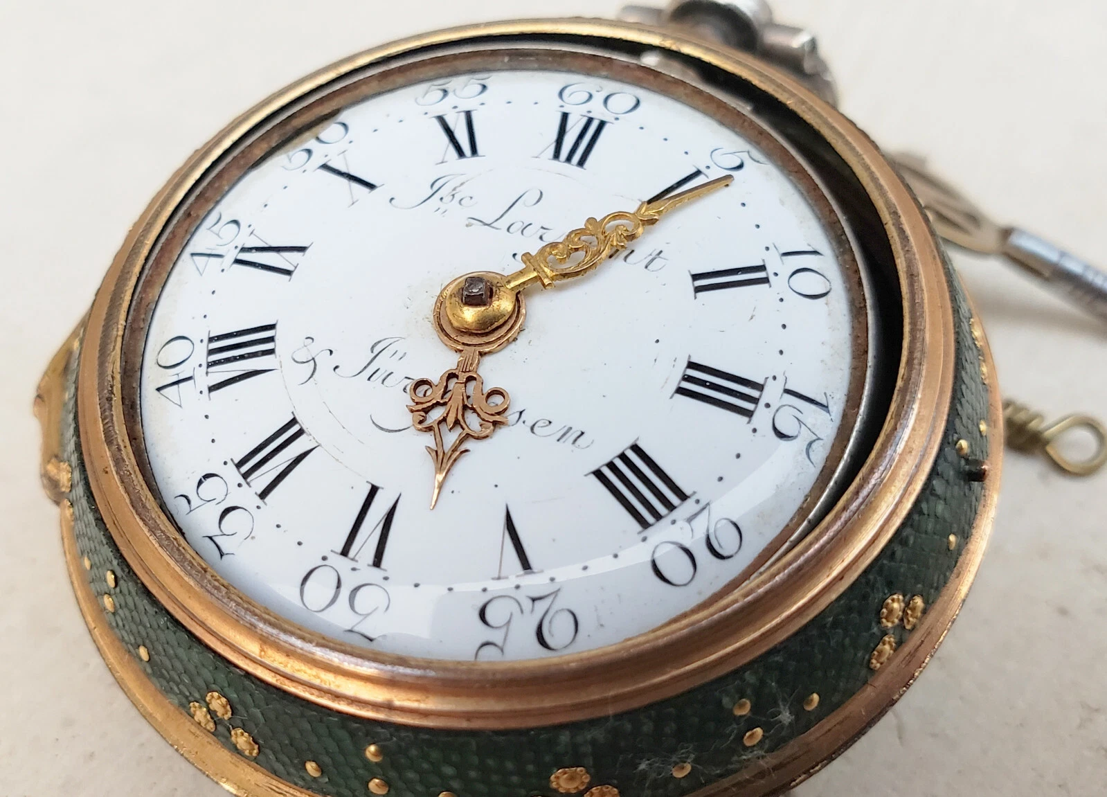ANTIQUE LARPENT & JURGENSEN COPENHAGEN FUSEE ENAMEL KEY POCKET WATCH