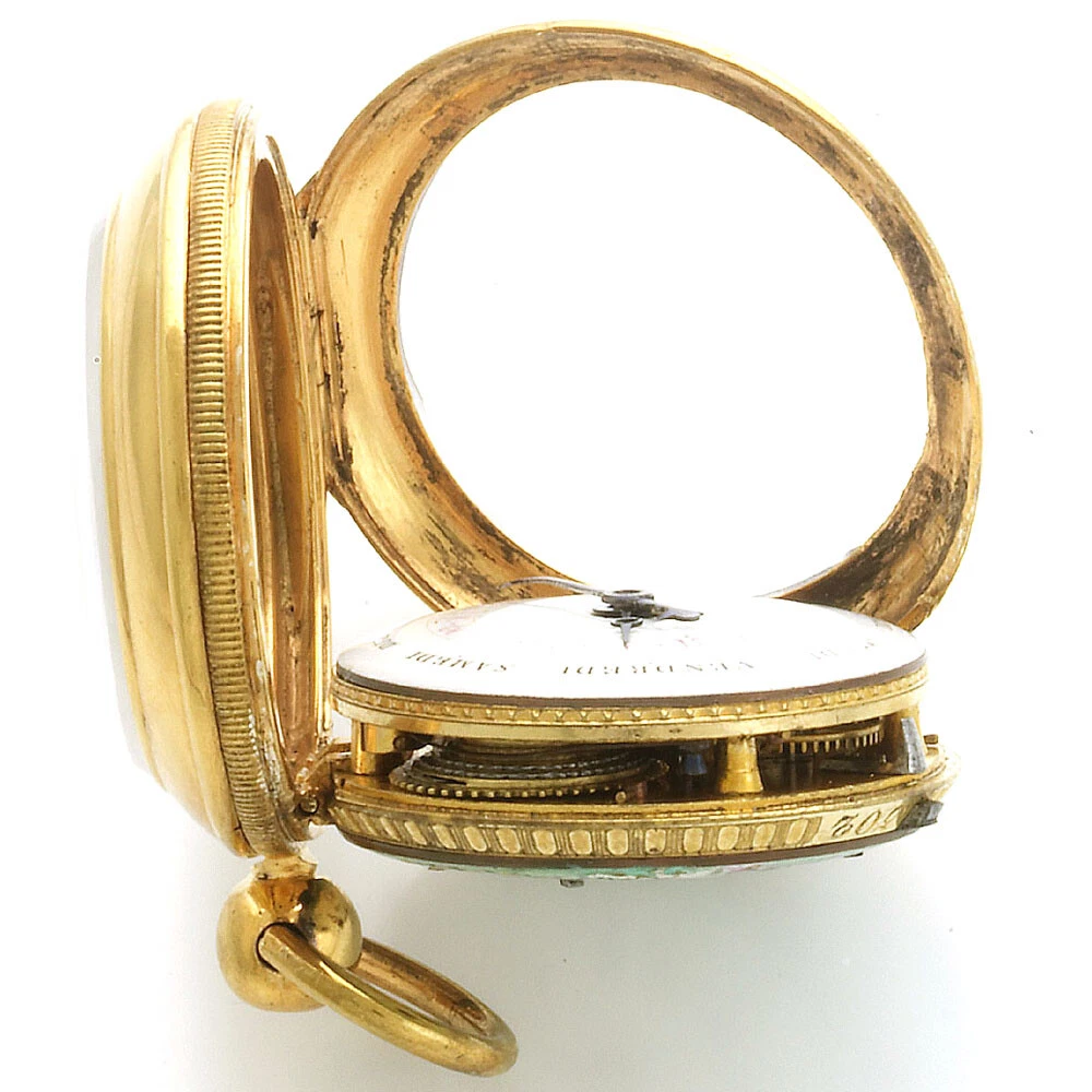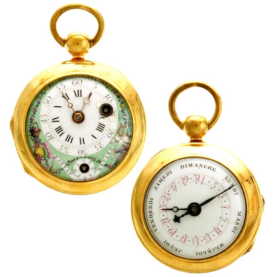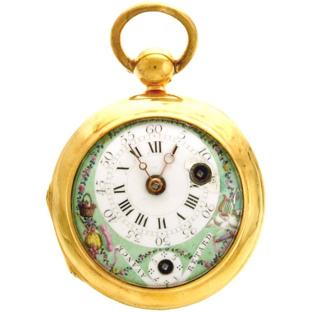 RARE ANTIQUE DOUBLE DIAL VERGE FUSEE KEYWIND POCKET WATCH CA1820