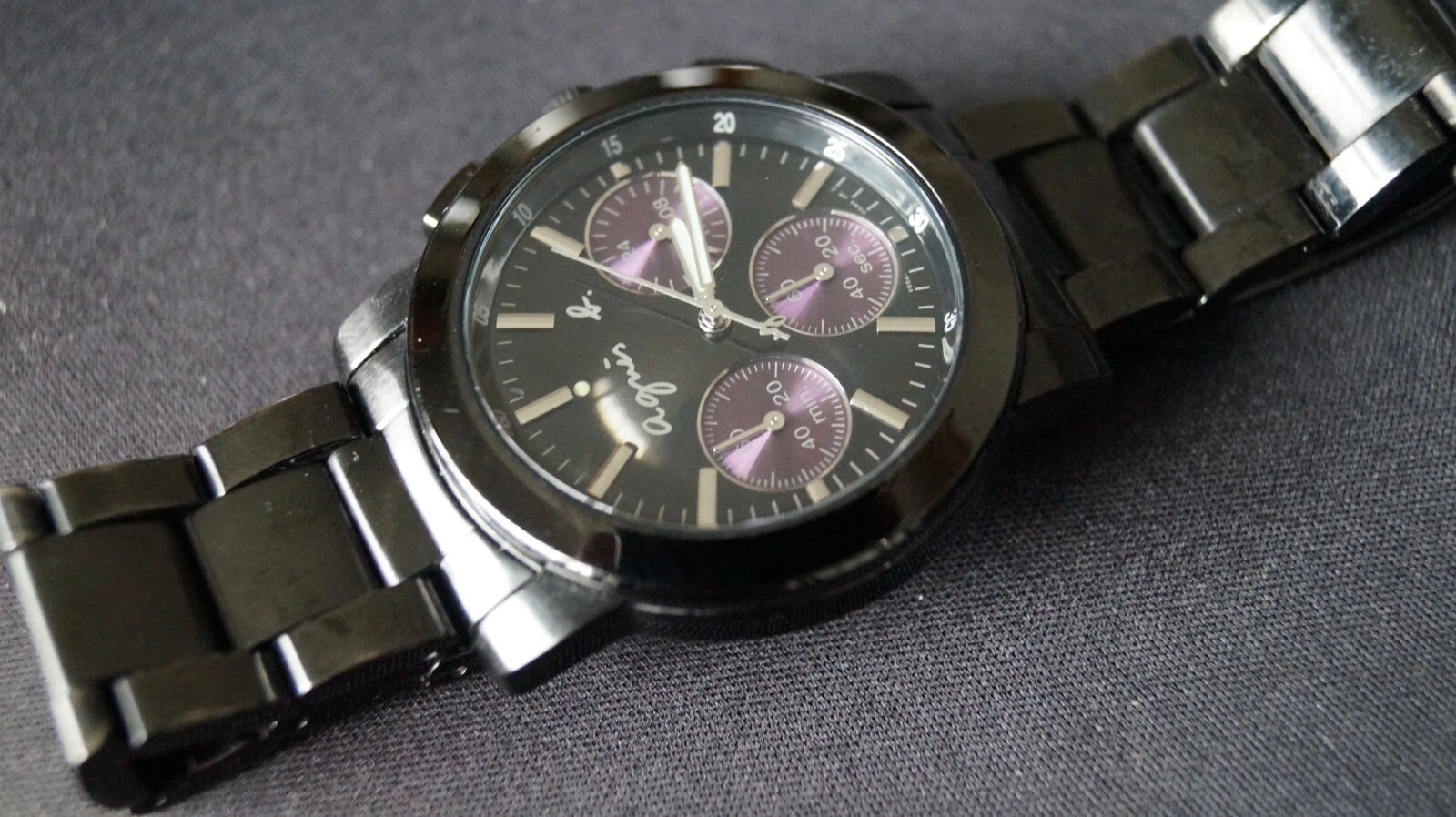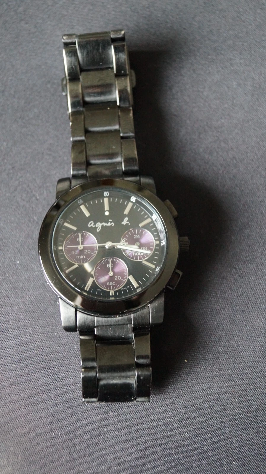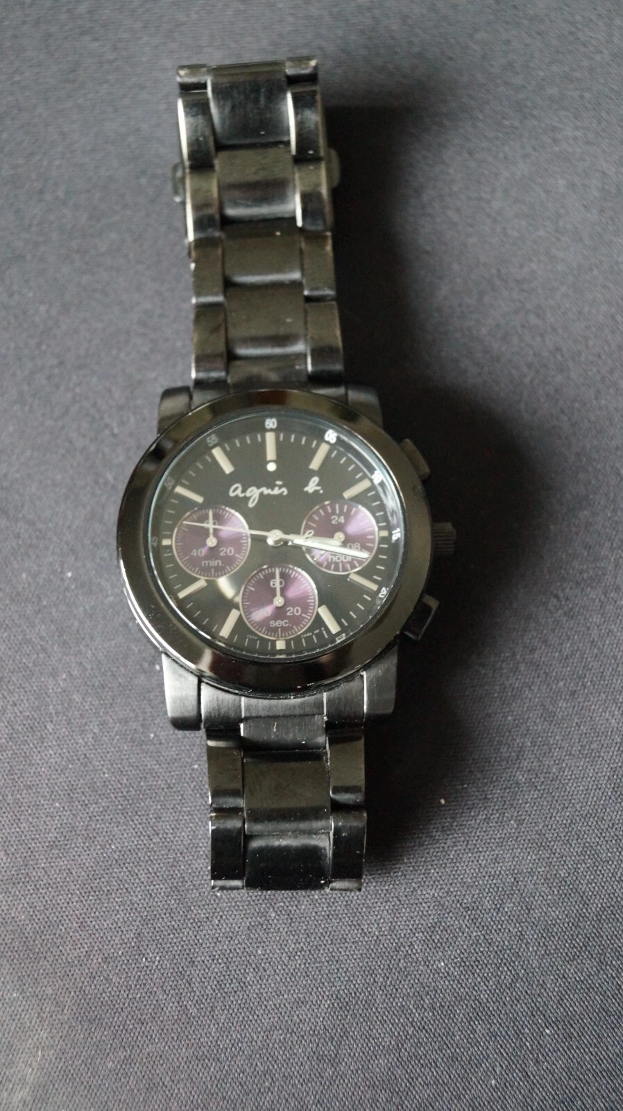 AGNES B V654 Quartz WATCH PURPLE Black Chronograph 38mm