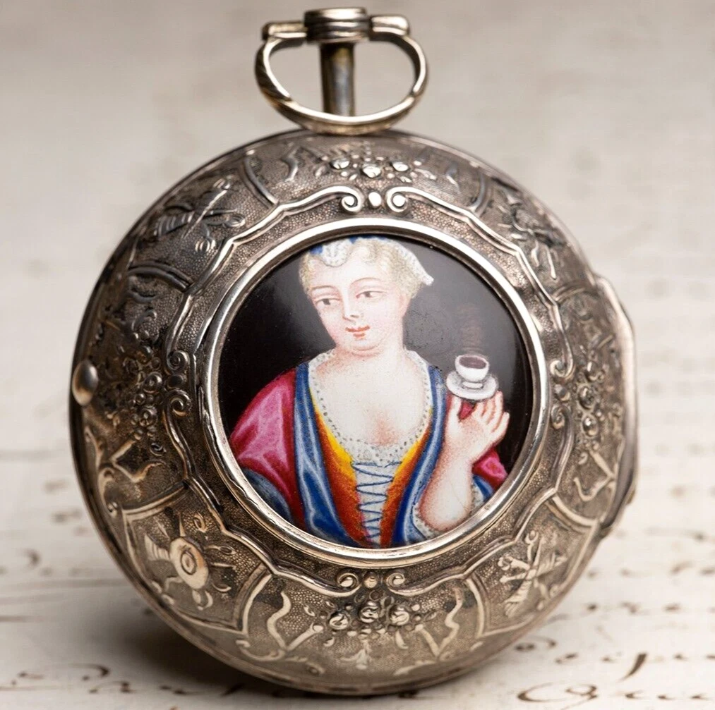 1700s GERMAN/POLISH Enamel VERGE FUSEE Antique Pocket Watch SpindelTaschenUhr