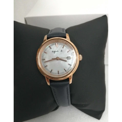 AGNES B. Solar Analogue Watch V137-KLS0 BLK.GLD Box