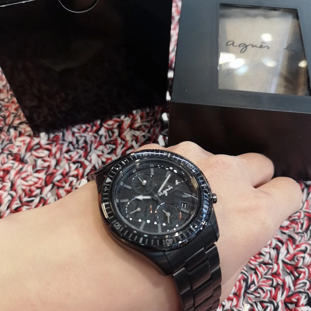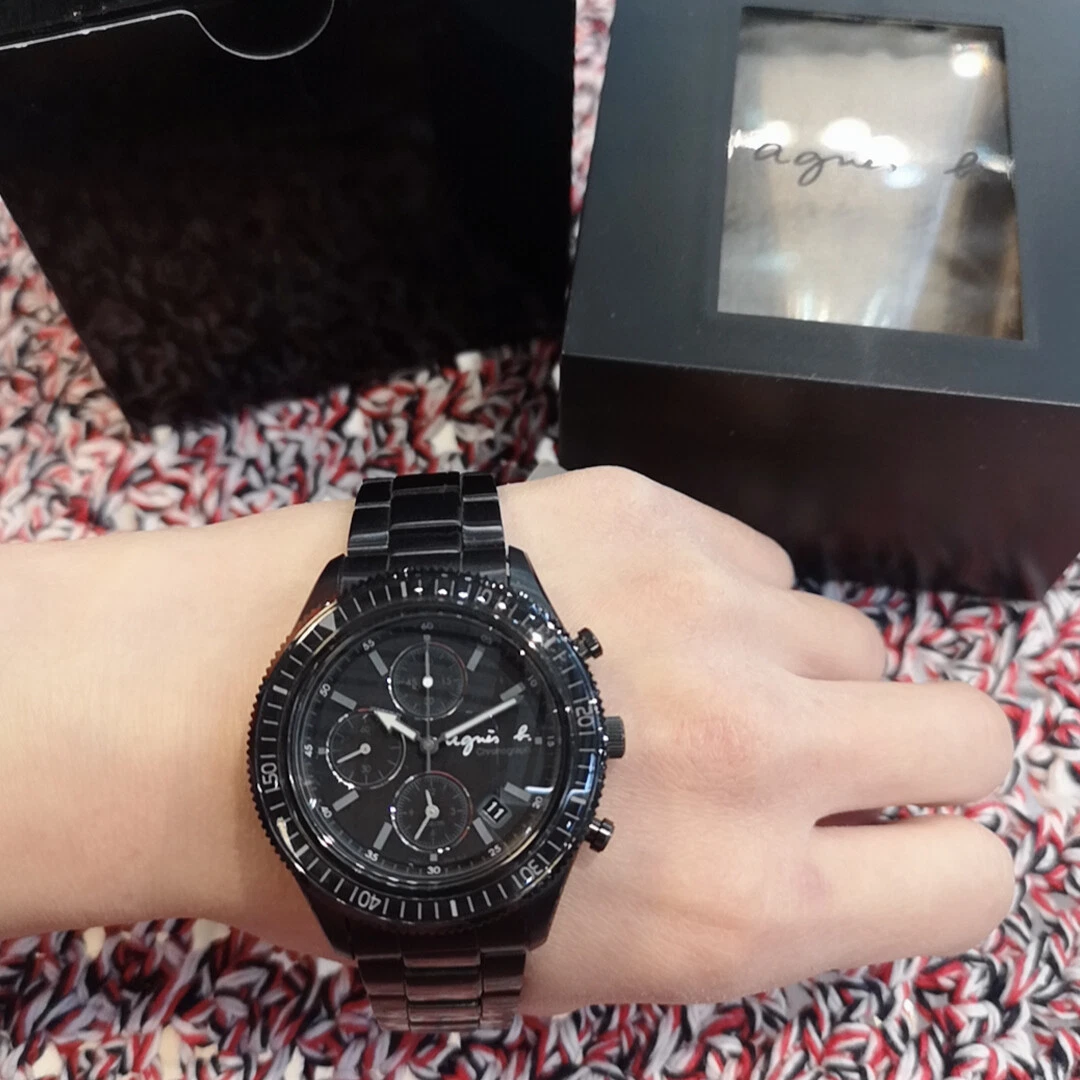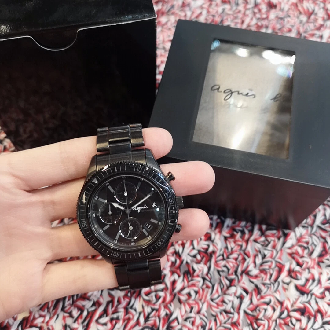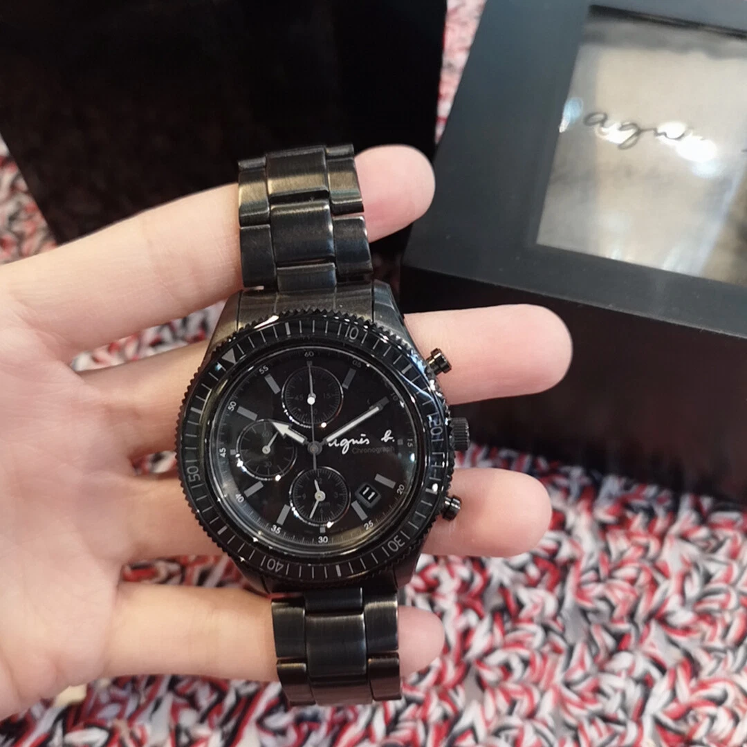 agnès b. Black Chronograph Unisex's Watch BF3001P NEW in box