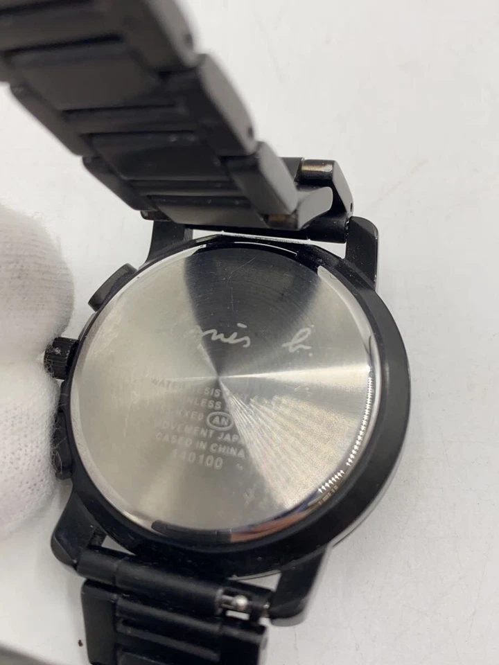 agnes b. Quartz Analog Wristwatch Black Stainless Steel Mint JAPAN