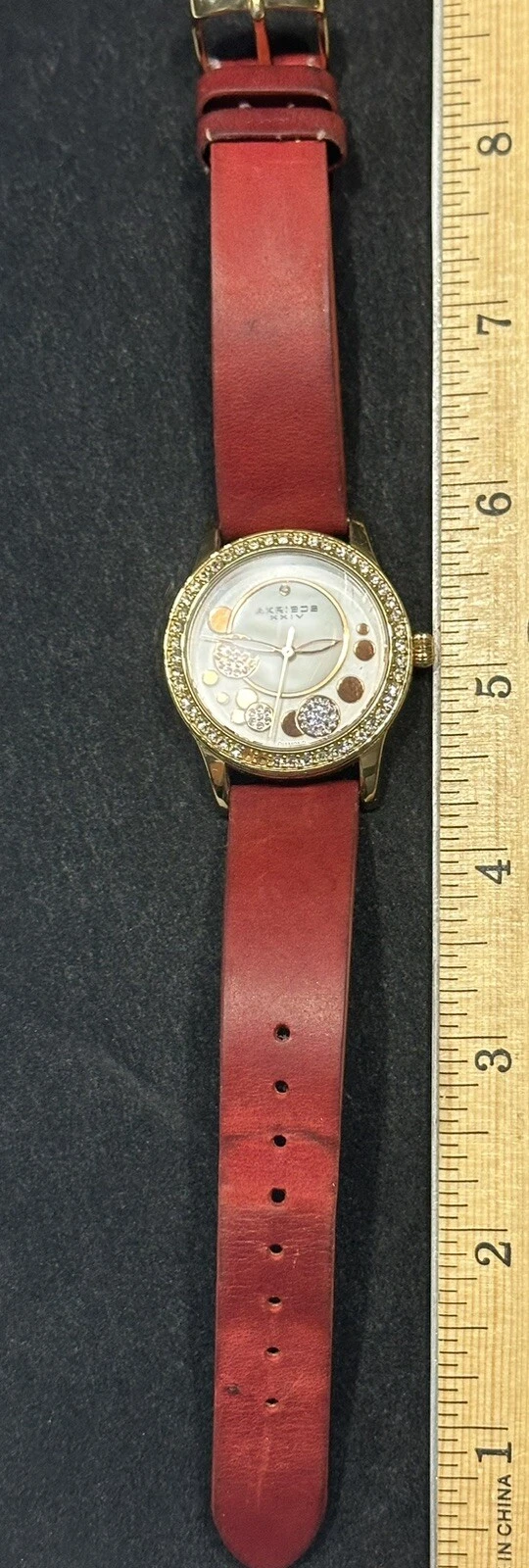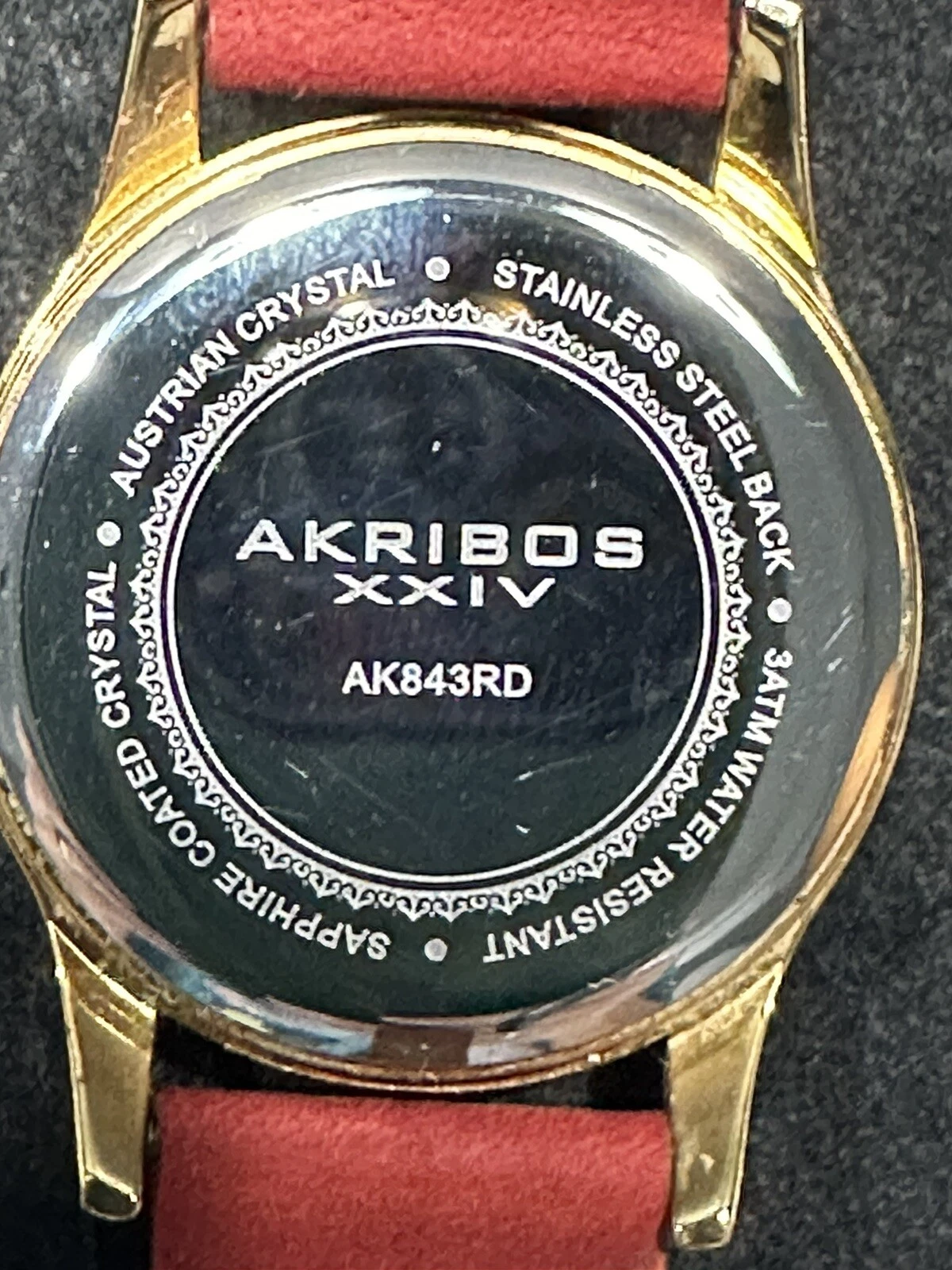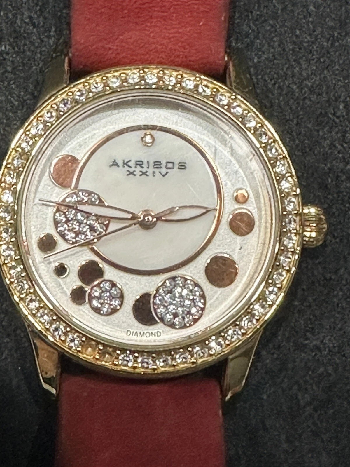 Akribos XXIV Women's Quartz Diamond Accented Dial - Leather Strap Watch -