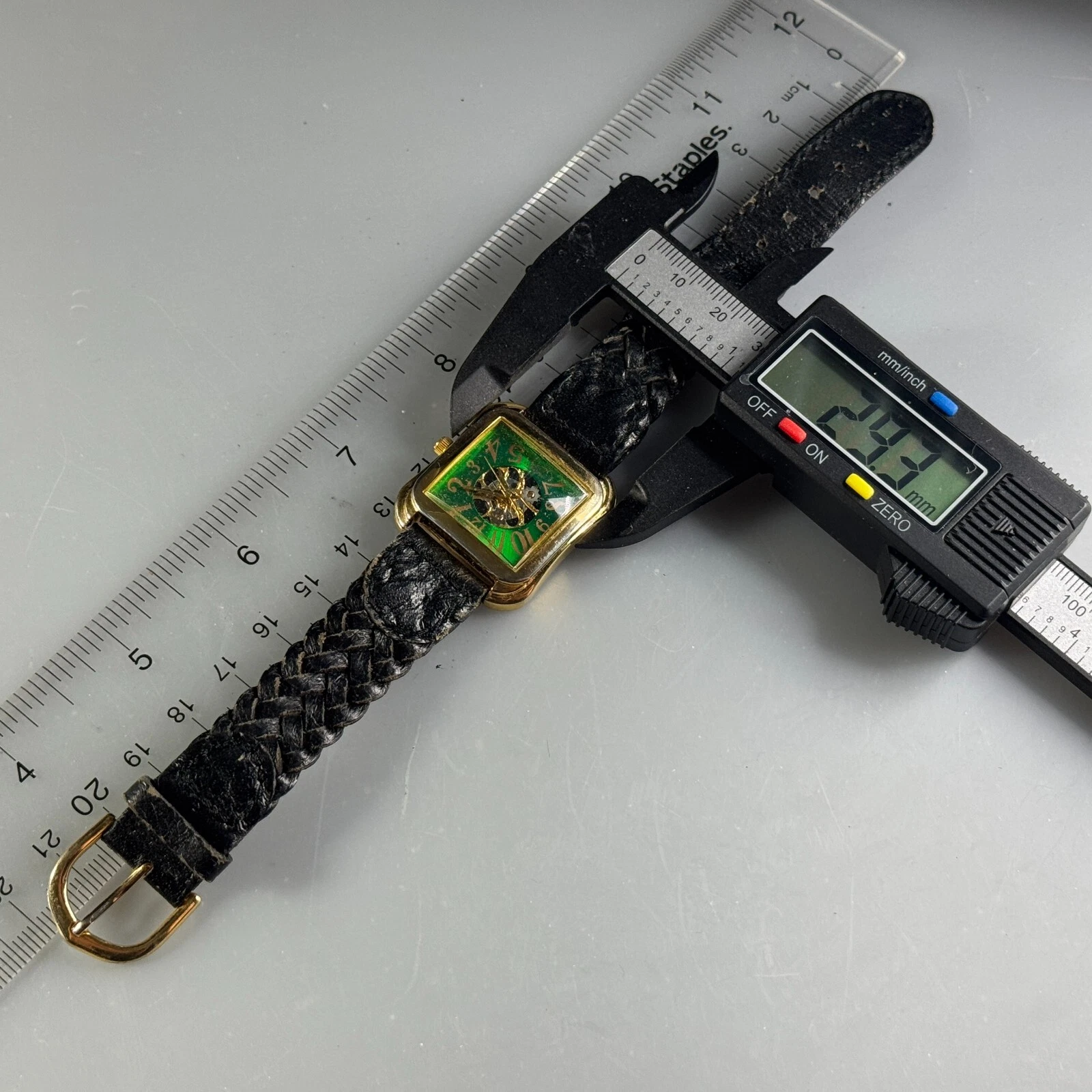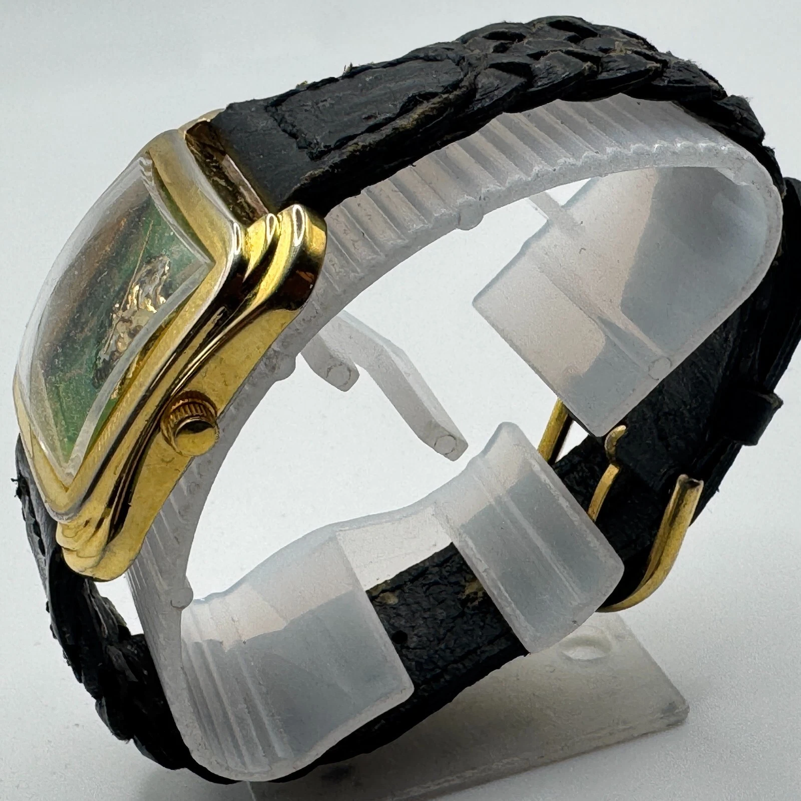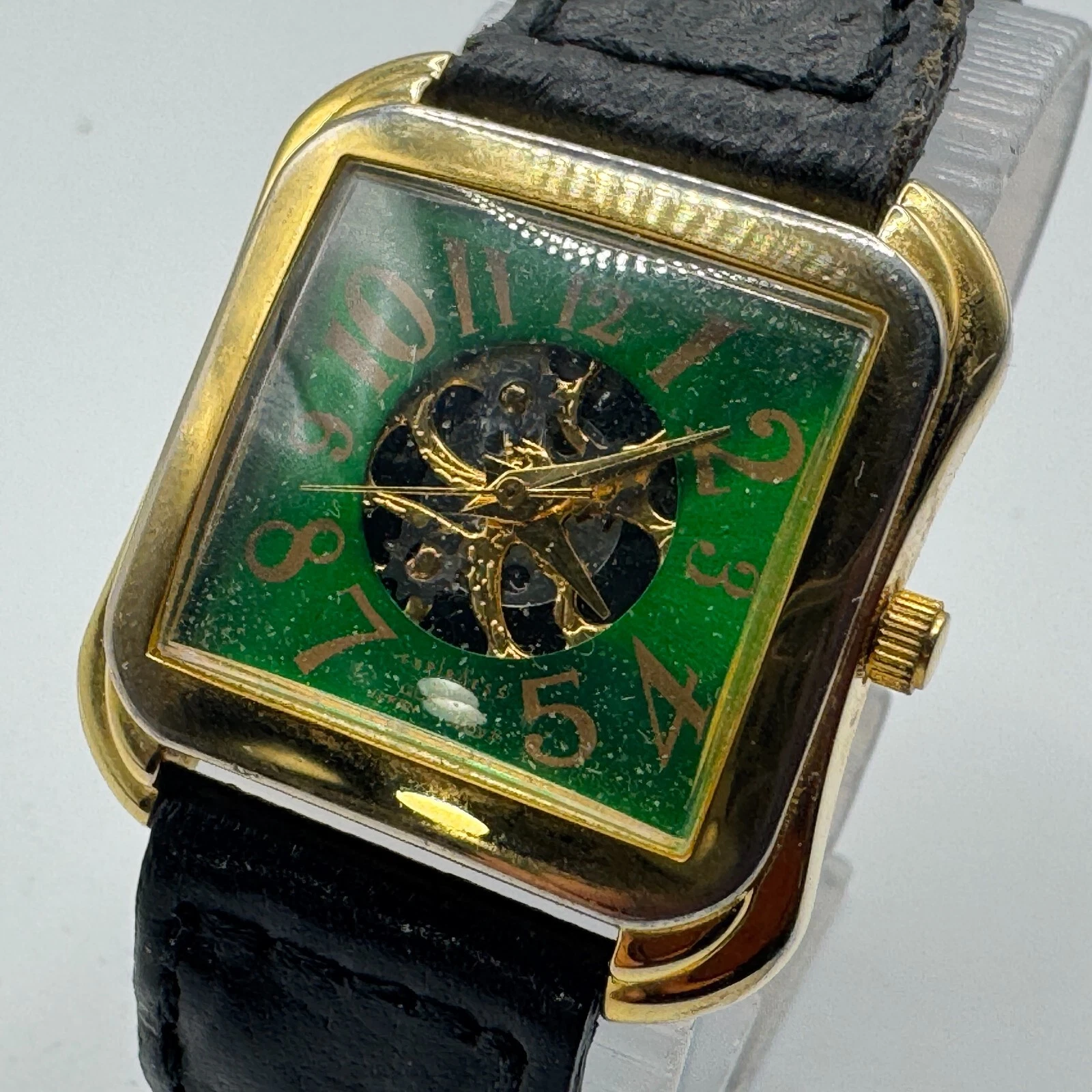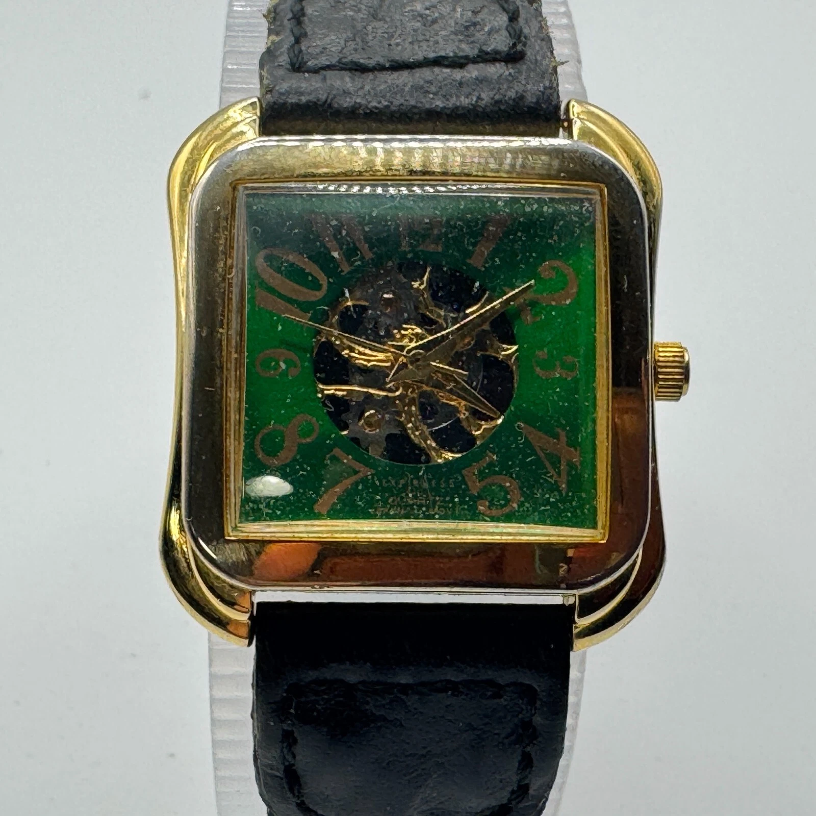Vintage LA Express Quartz Watch Unisex Gold Tone Green Square Analog New Battery