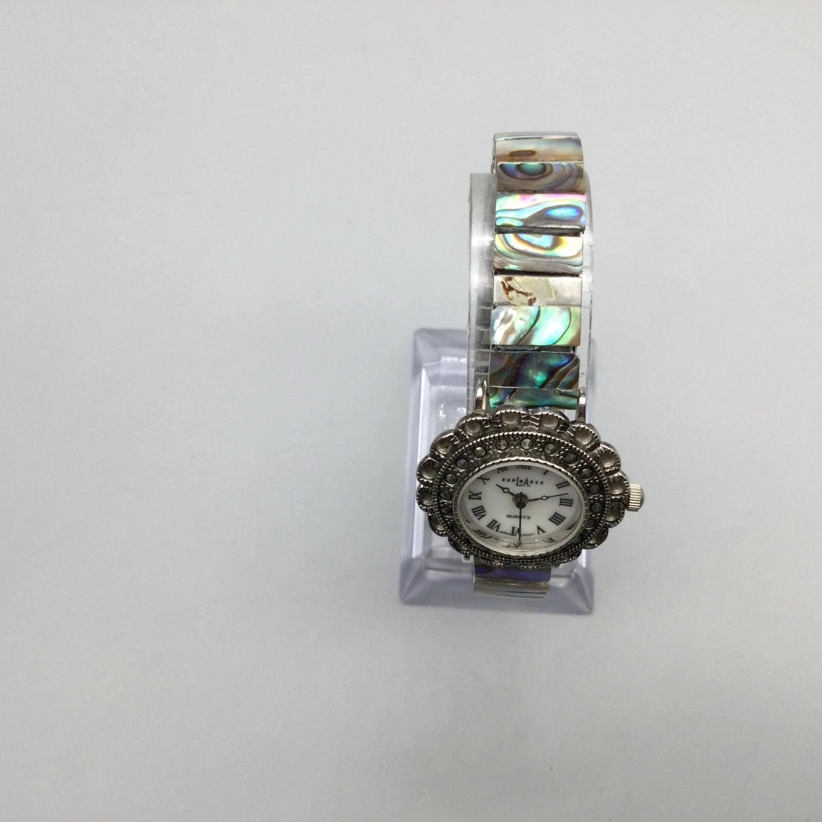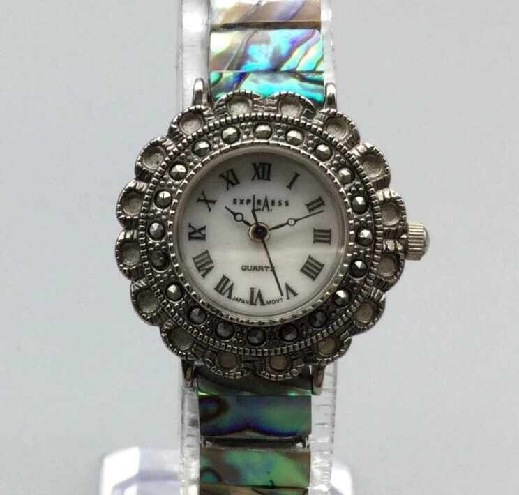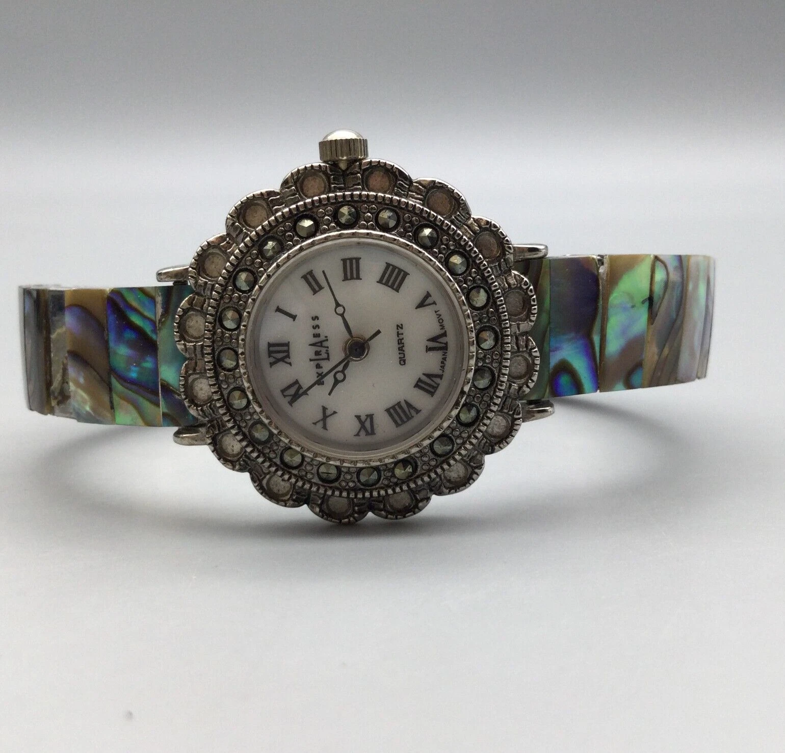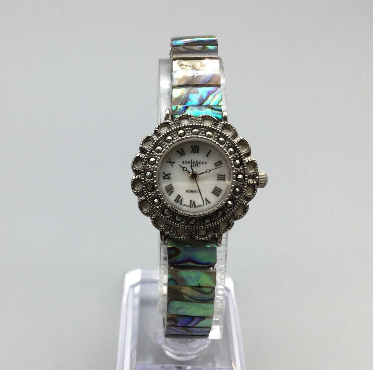 La Express Marcasite Watch Women 29mm MOP Dial Abalone Stretch Band New Battery