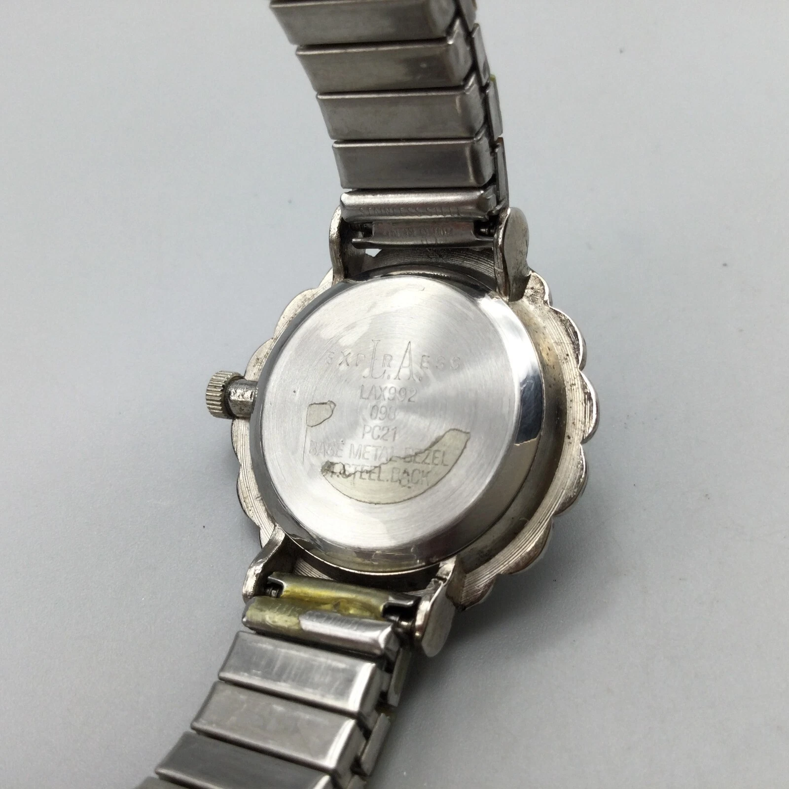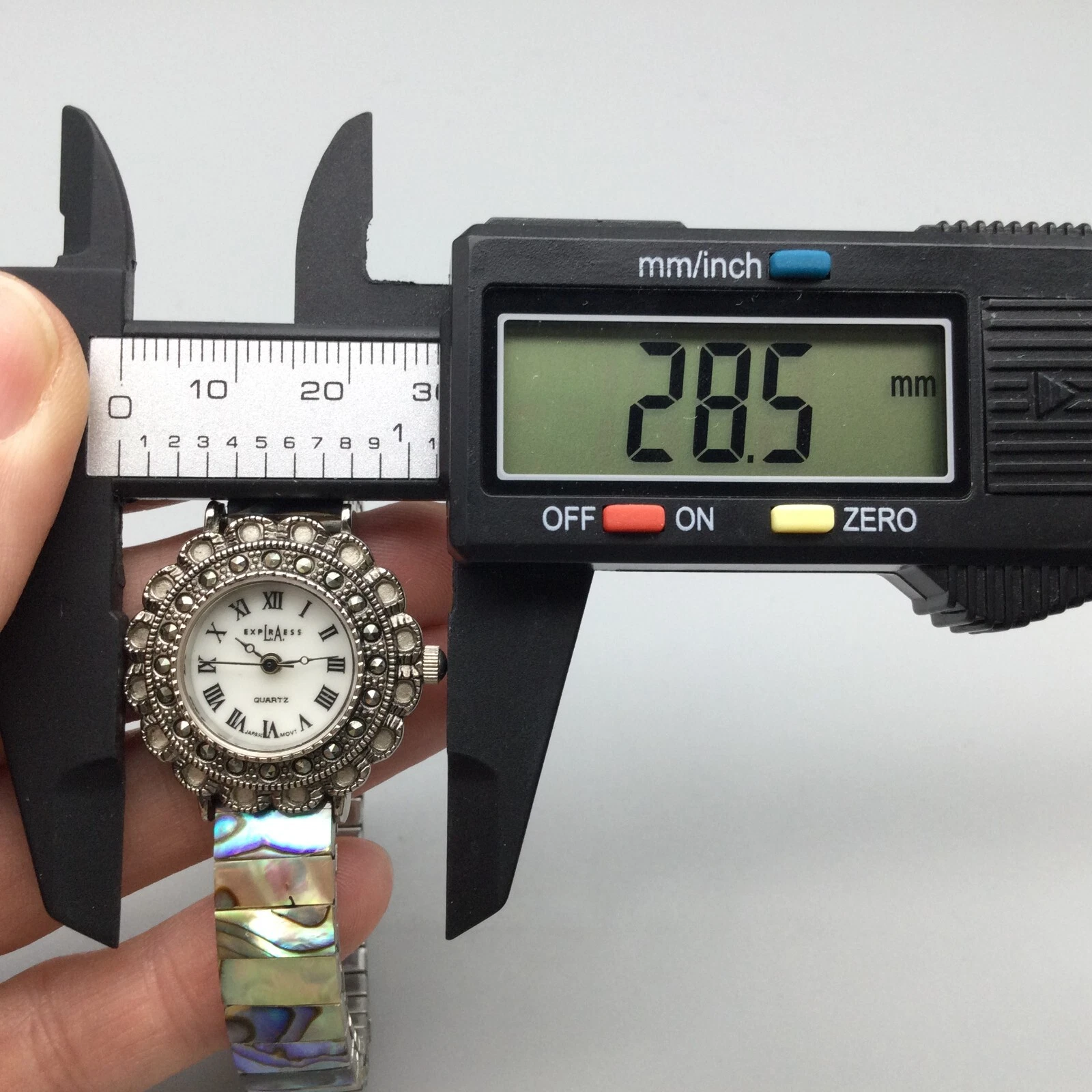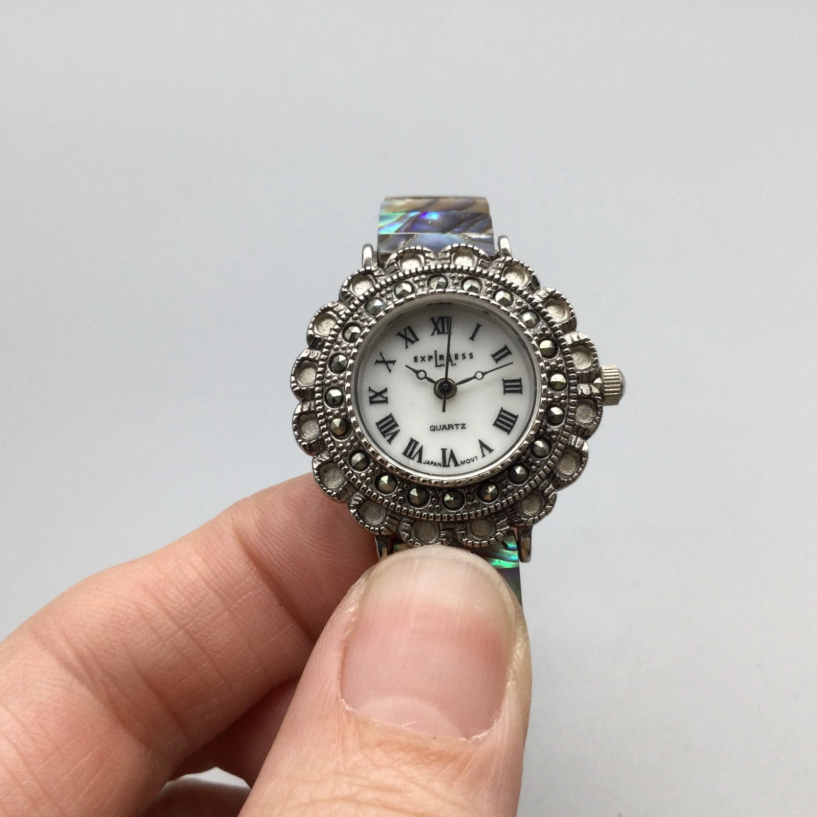 La Express Marcasite Watch Women 29mm MOP Dial Abalone Stretch Band New Battery