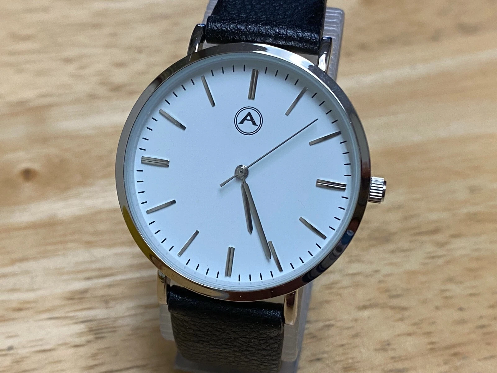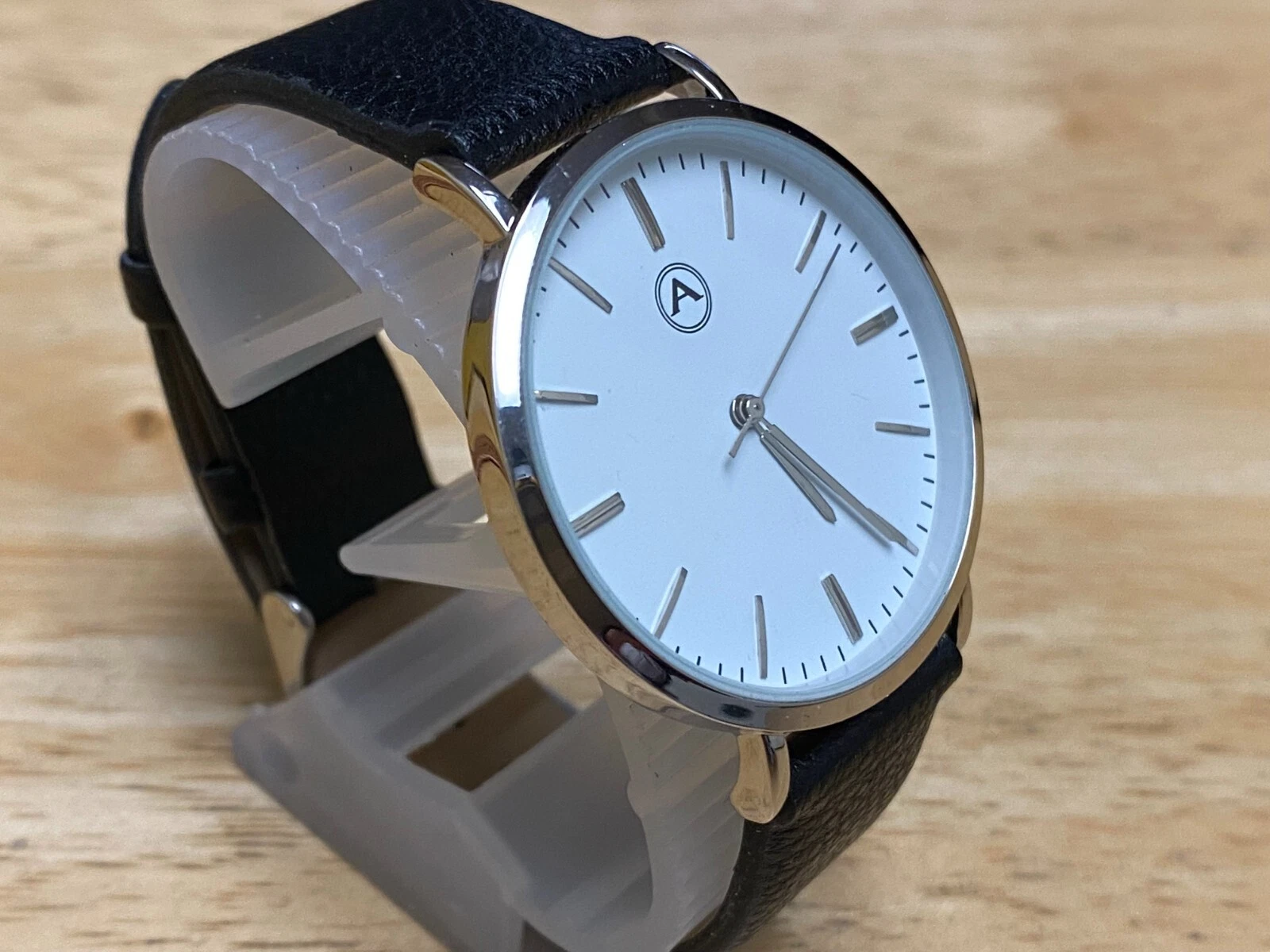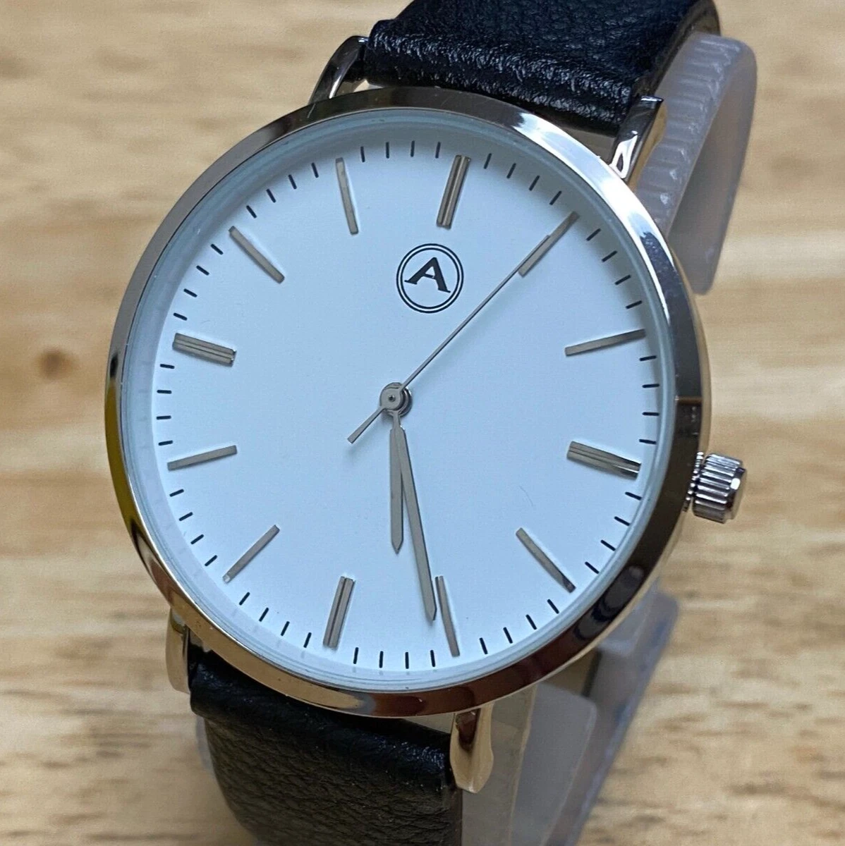 Unused Akribos Quartz Watch Men Silver White Leather Band Analog New Battery