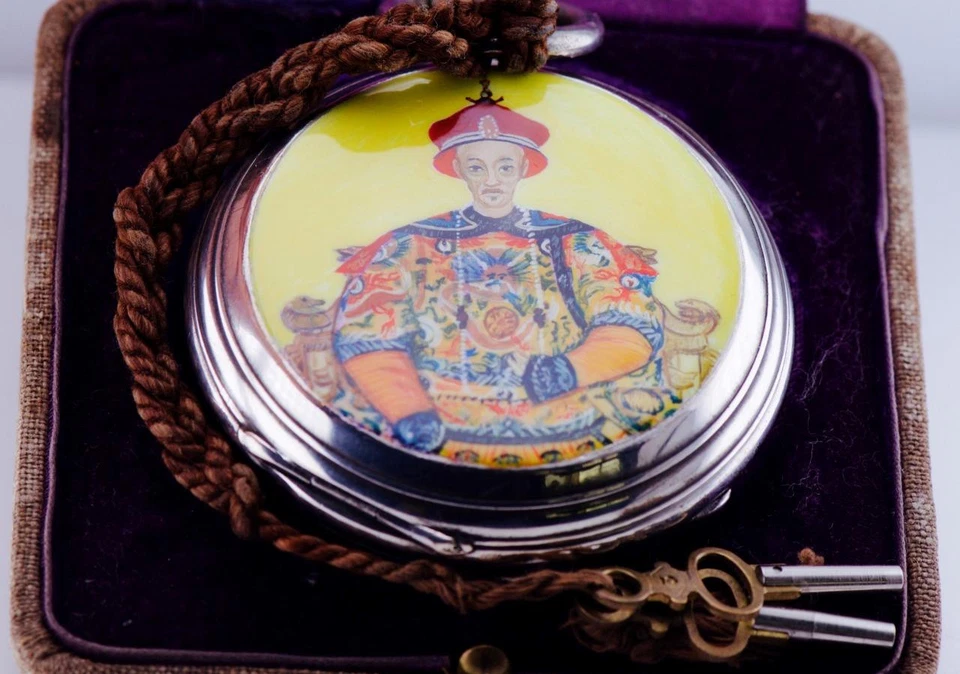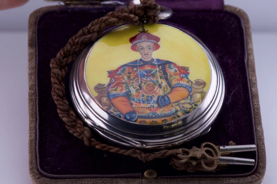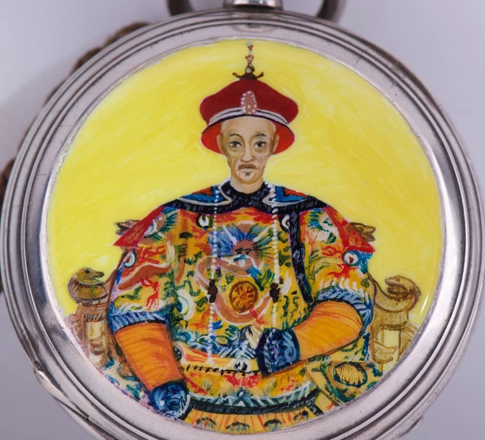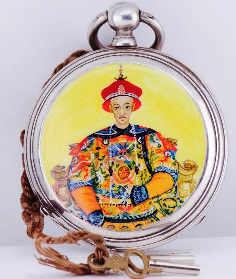 Antique Chinese Duplex  Pocket Watch Qing Dynasty Emperor Daoguang Silver Enamel