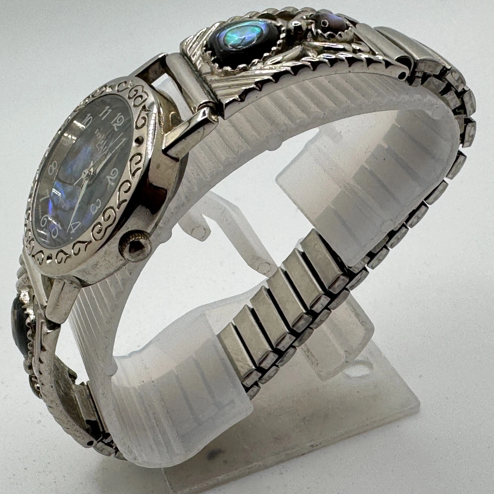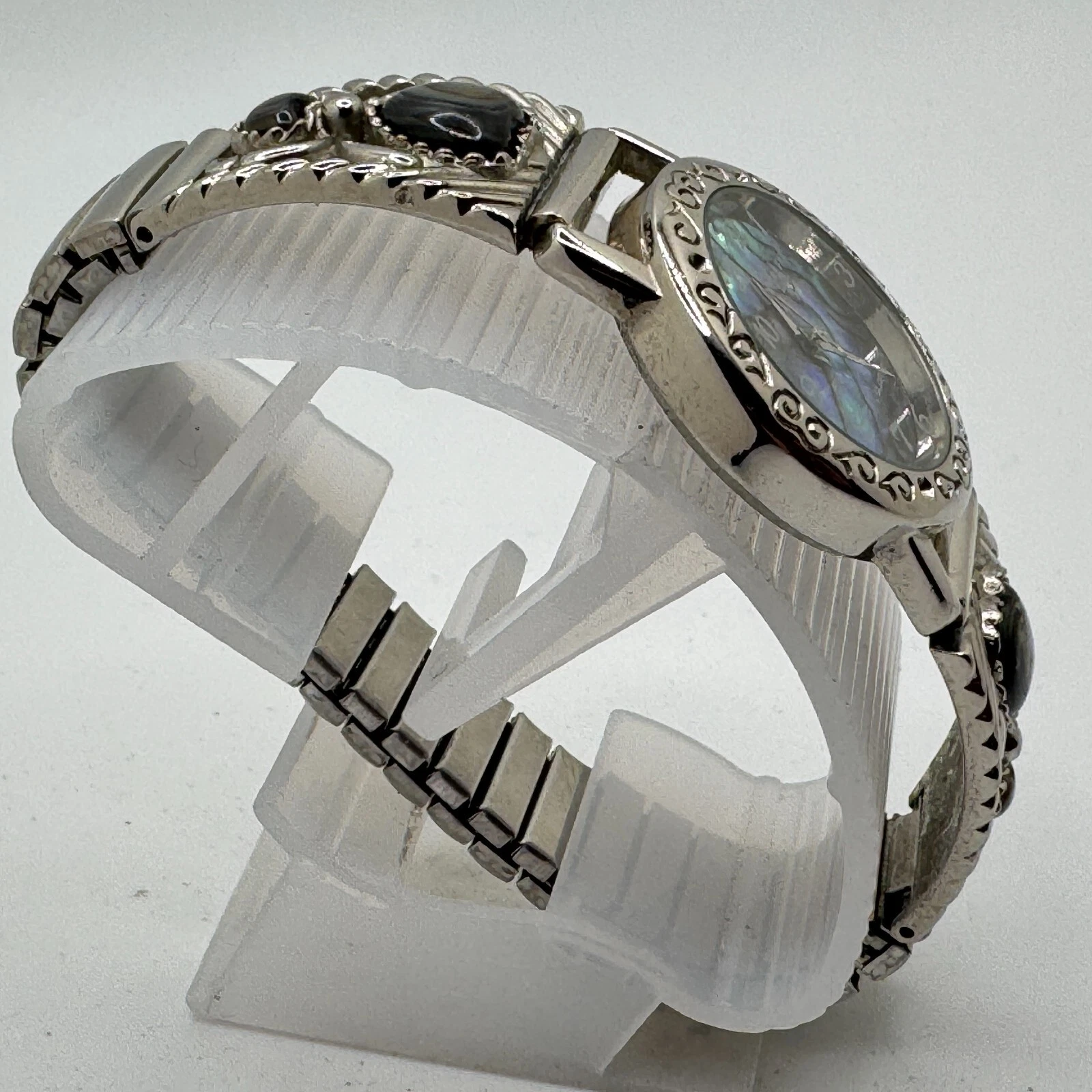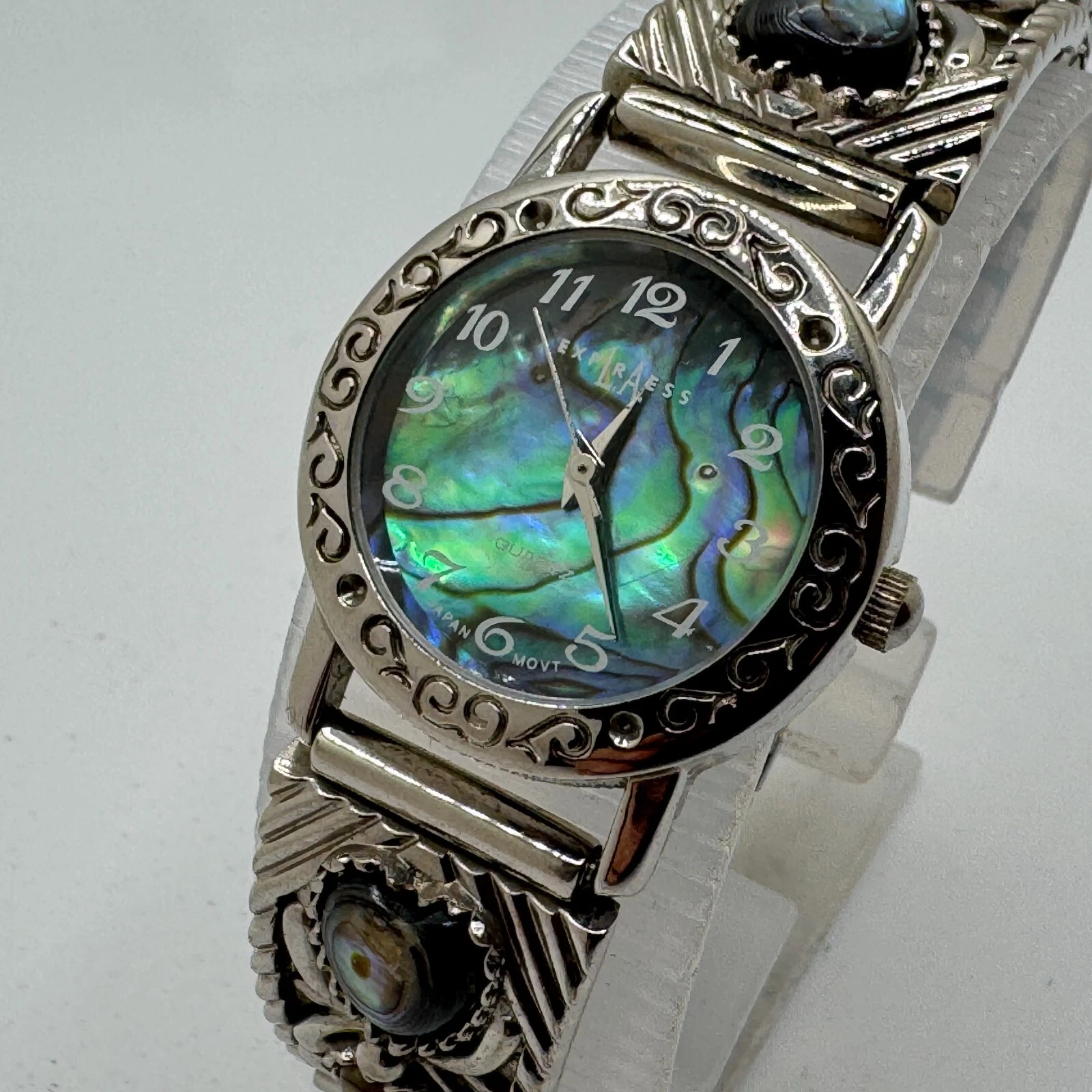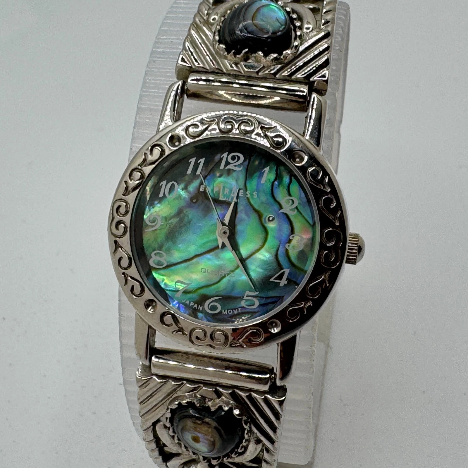 VTG LA Express Quartz Watch Women Silver Abalone Stretch Japan Movt New Battery