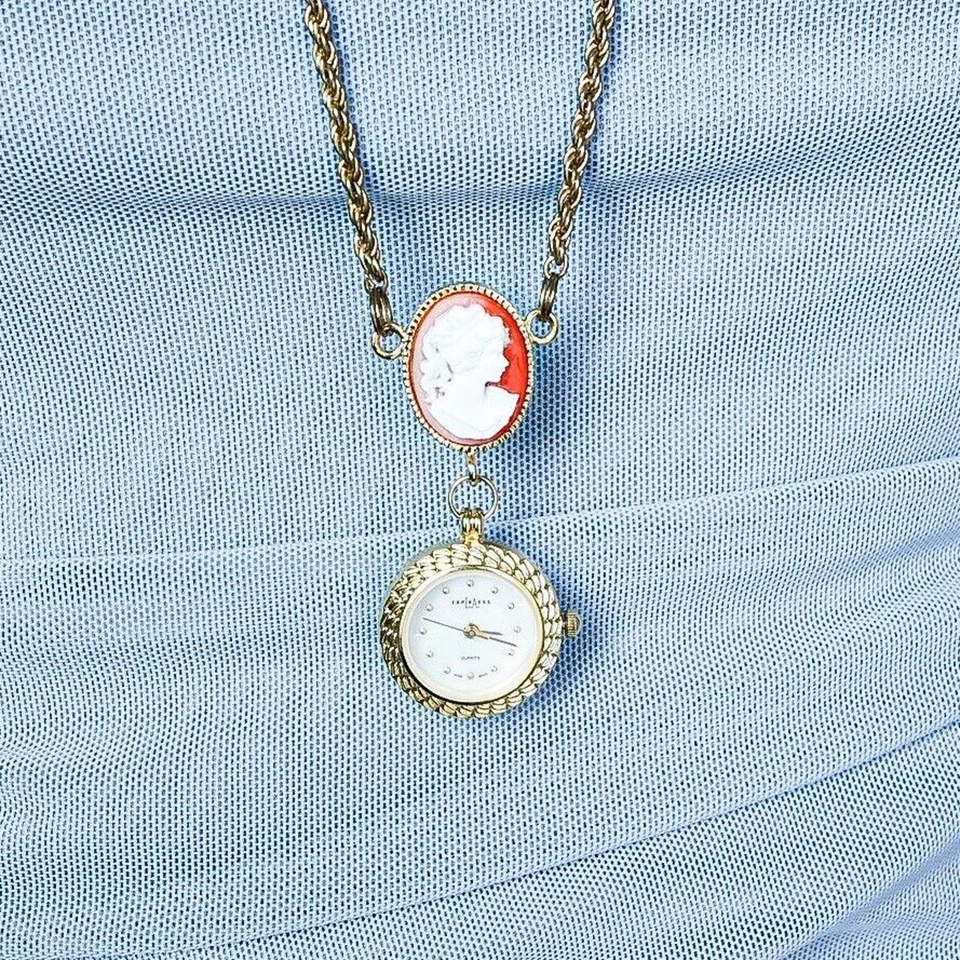 LA Express Cameo Pendant Necklace W Chain Women’s Watch Tested Works