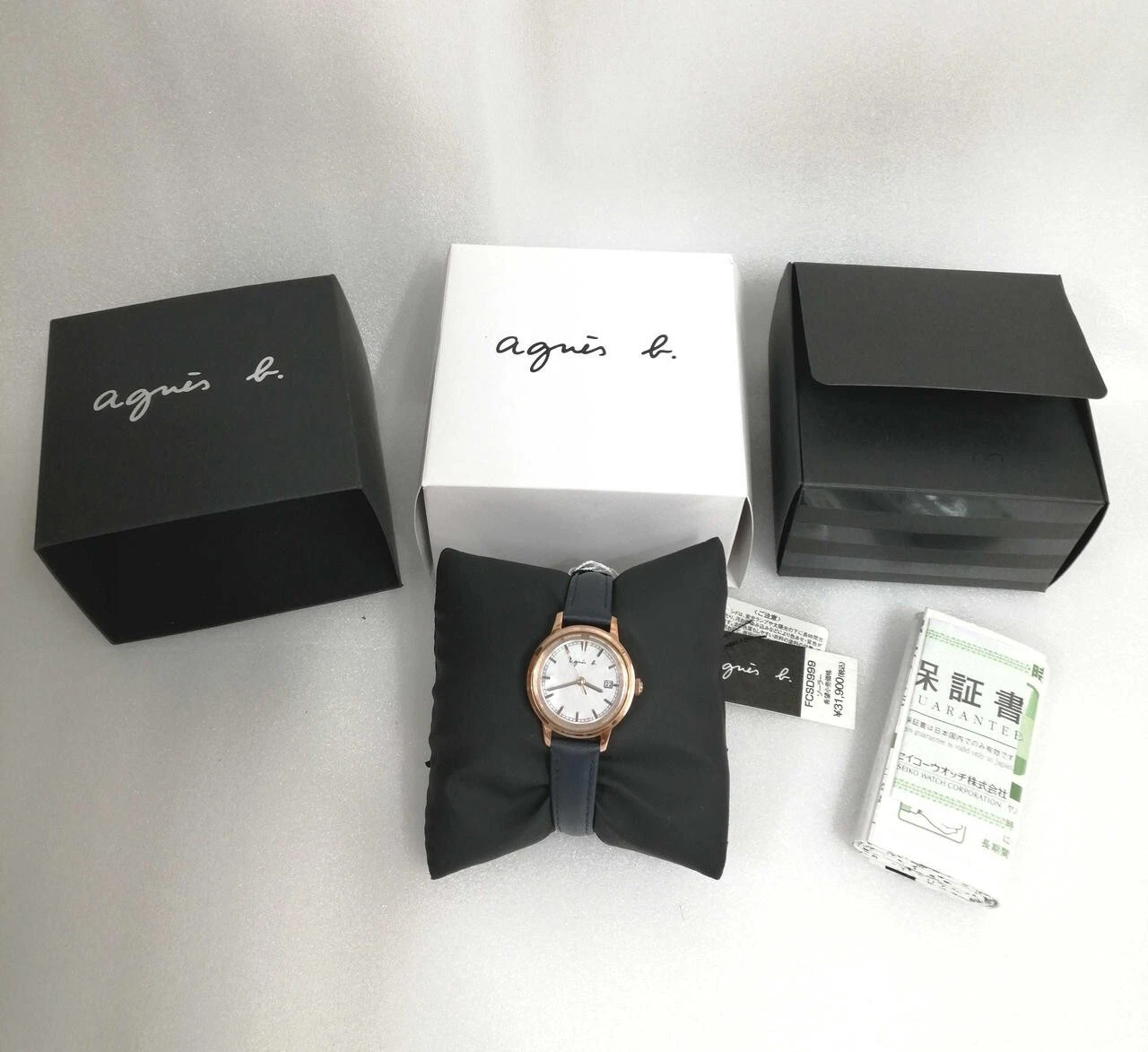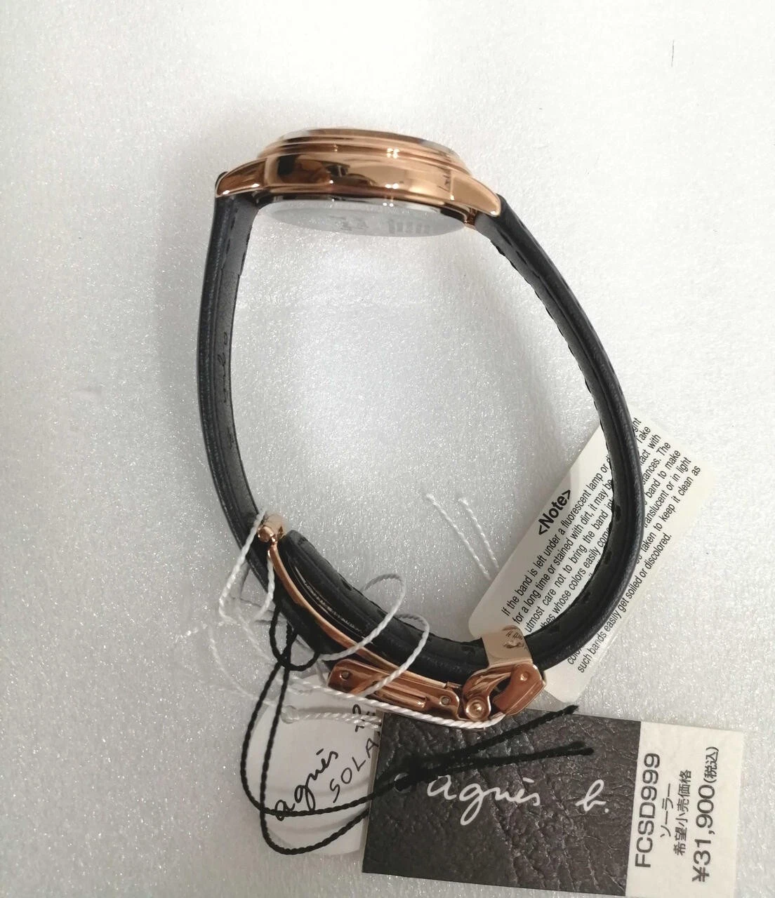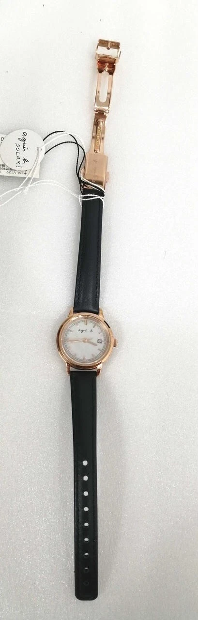 Agnes b V137-KLS0 Solar Quartz Analog Stainless Leather Women's Watch Preowned