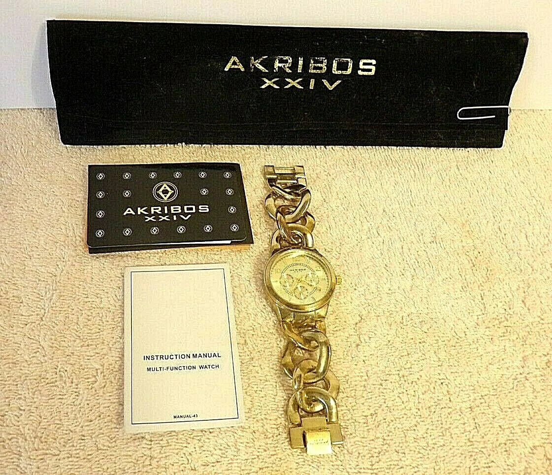 Women's Akribos XXIV AK531YG Twist Chain Quartz Multifunction Bracelet Watch