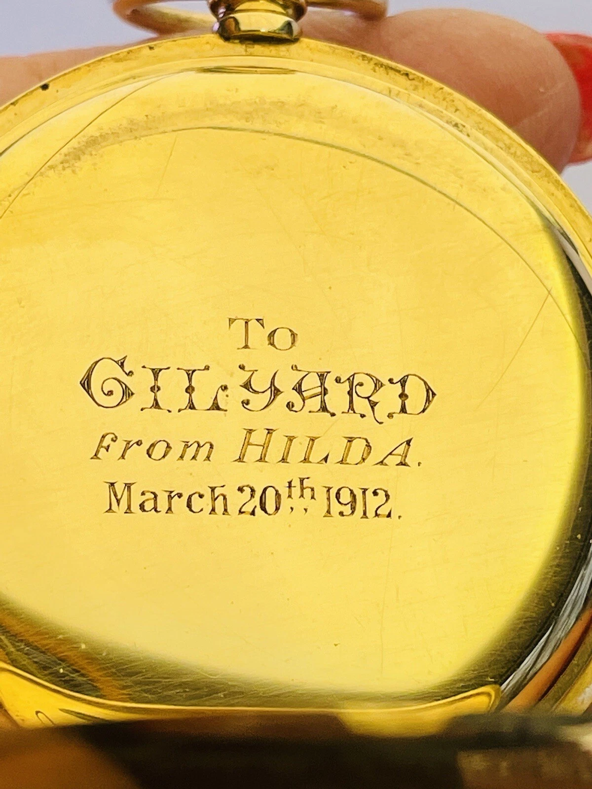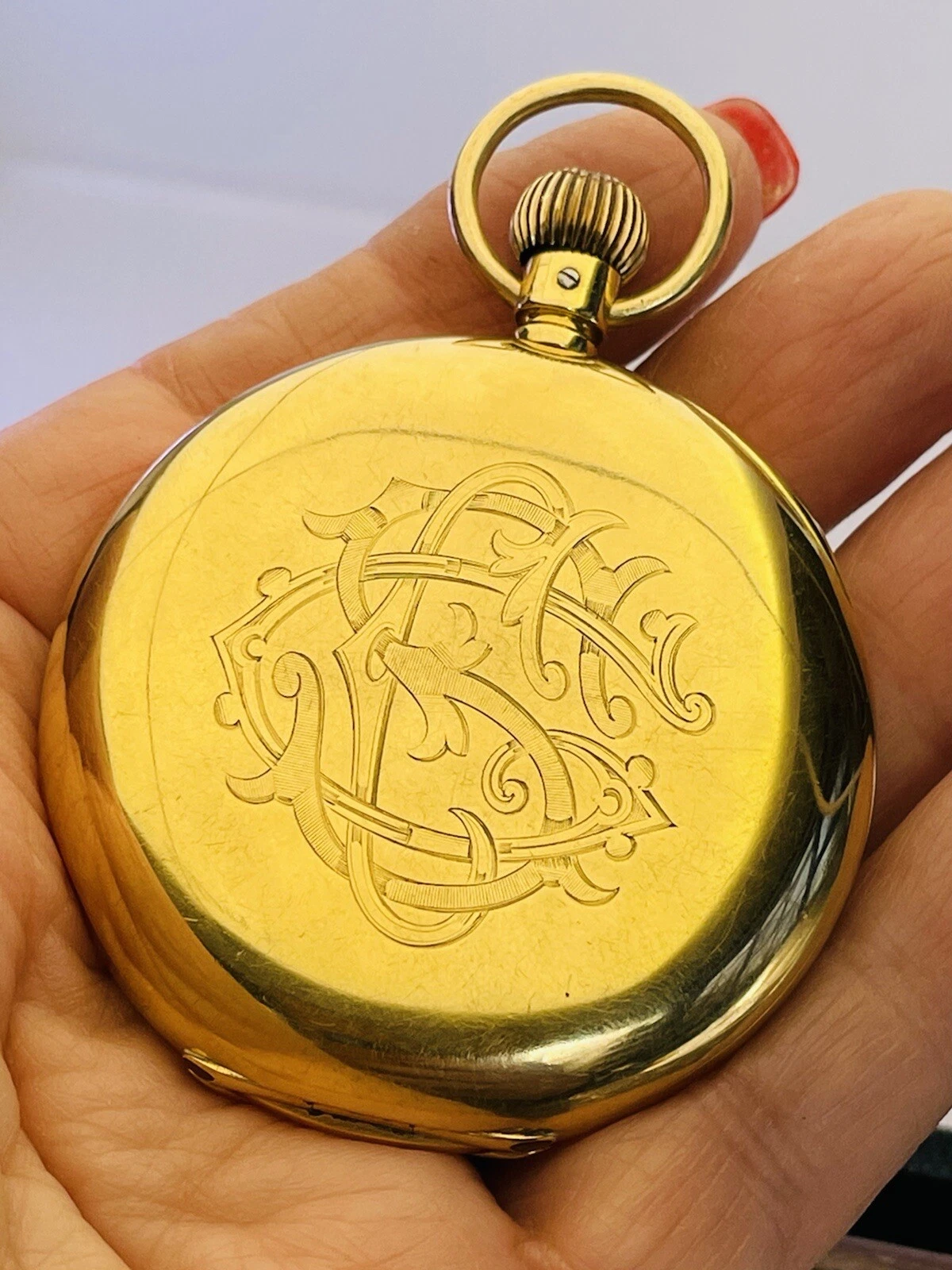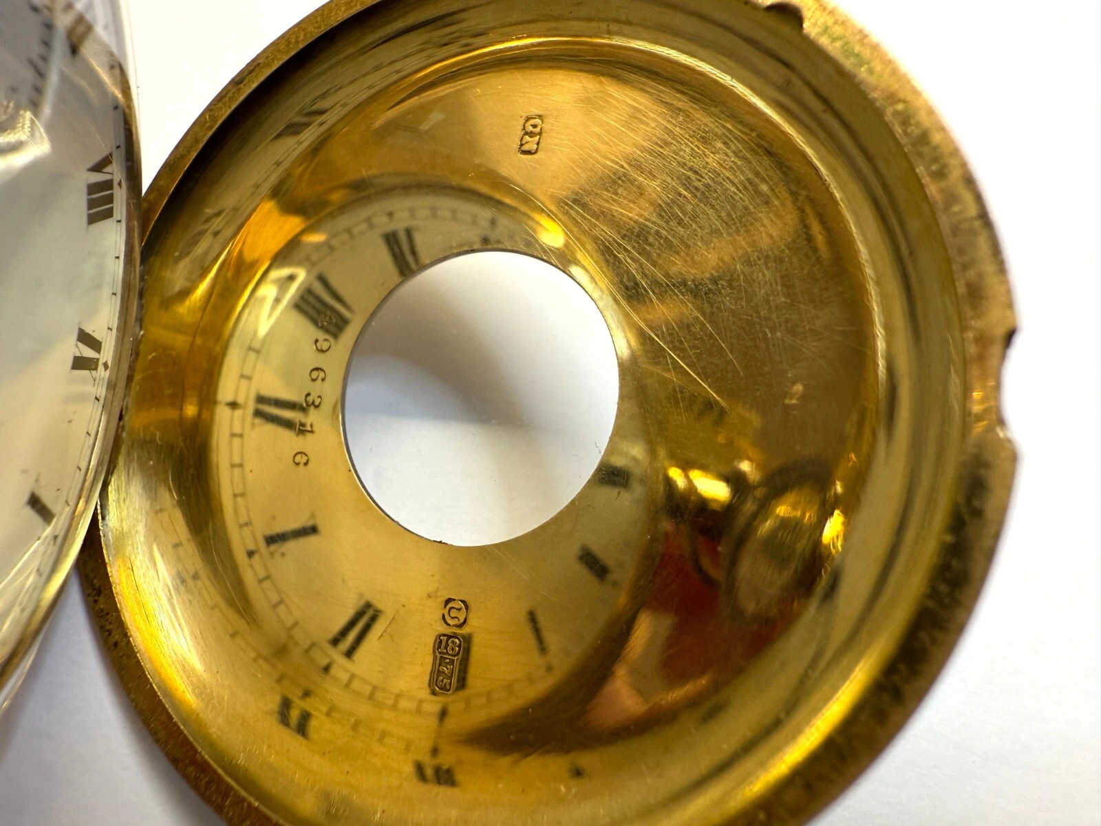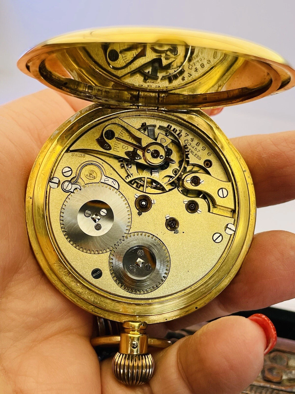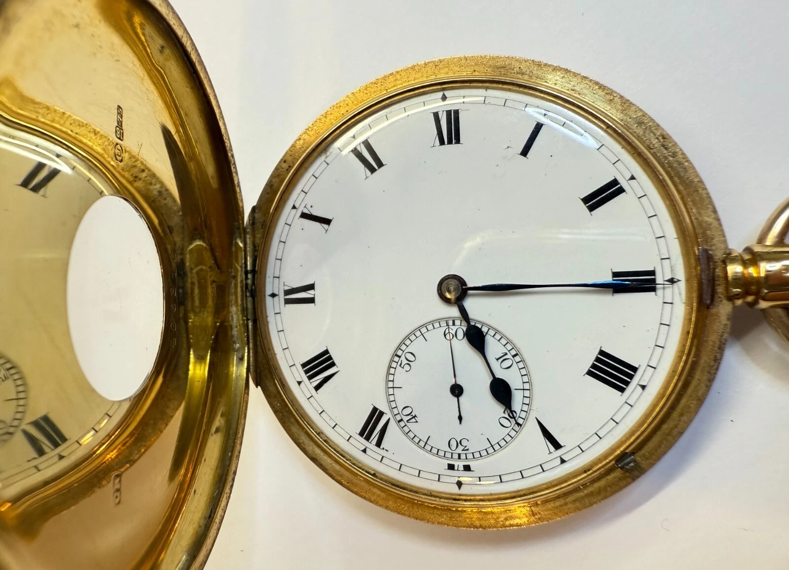Antique 18ct Yellow Gold 1910 Half Hunter Pocket Watch Blue Roman Numerals Hands