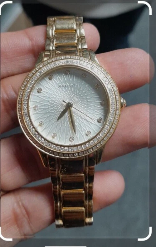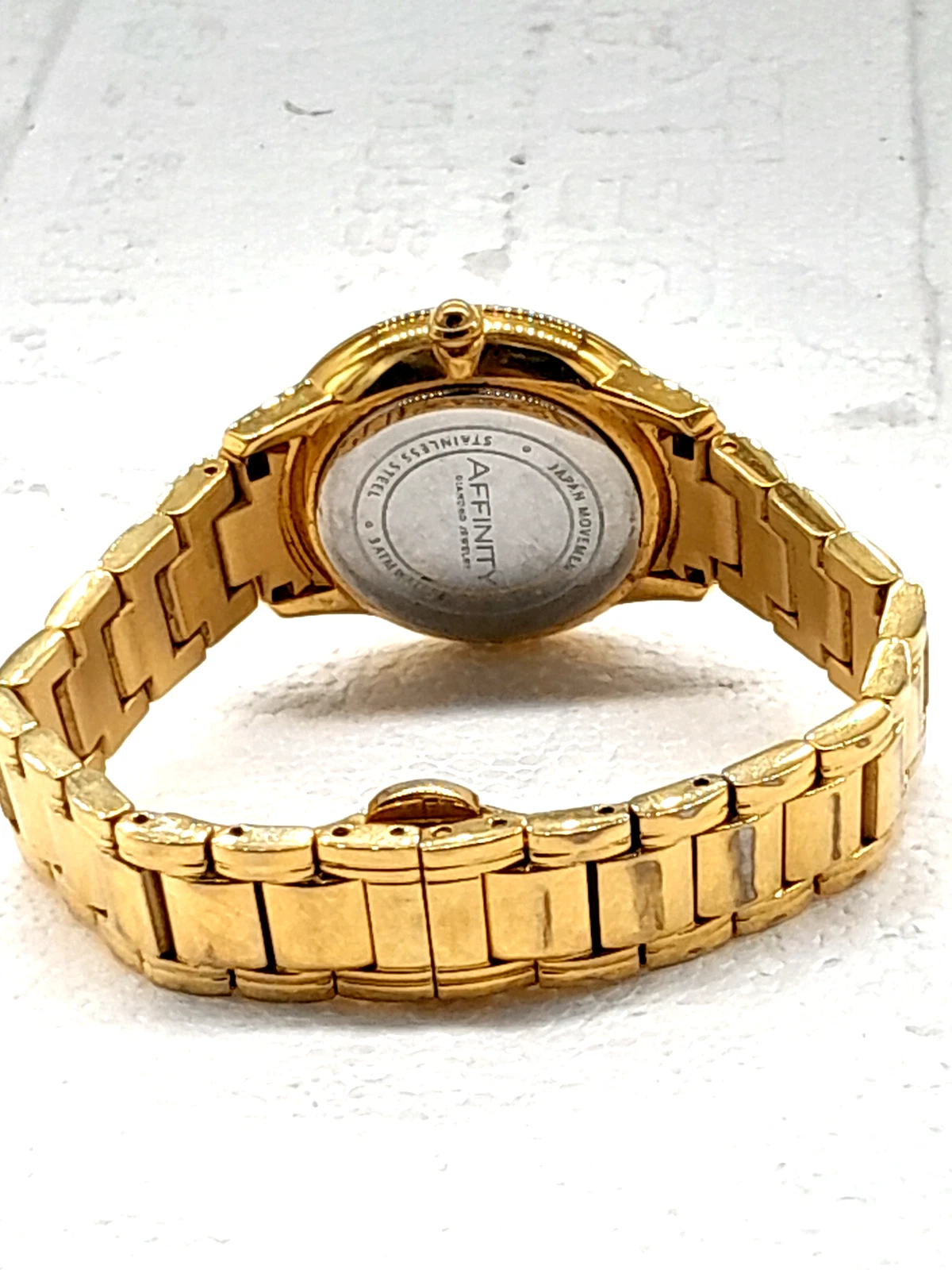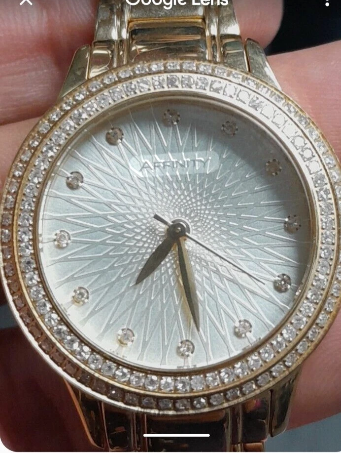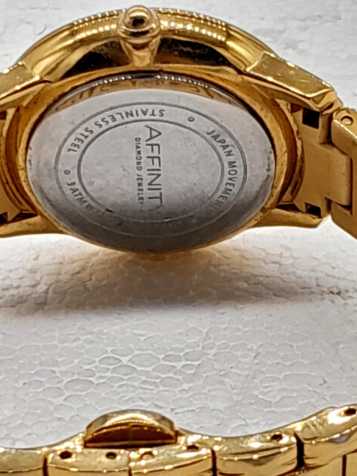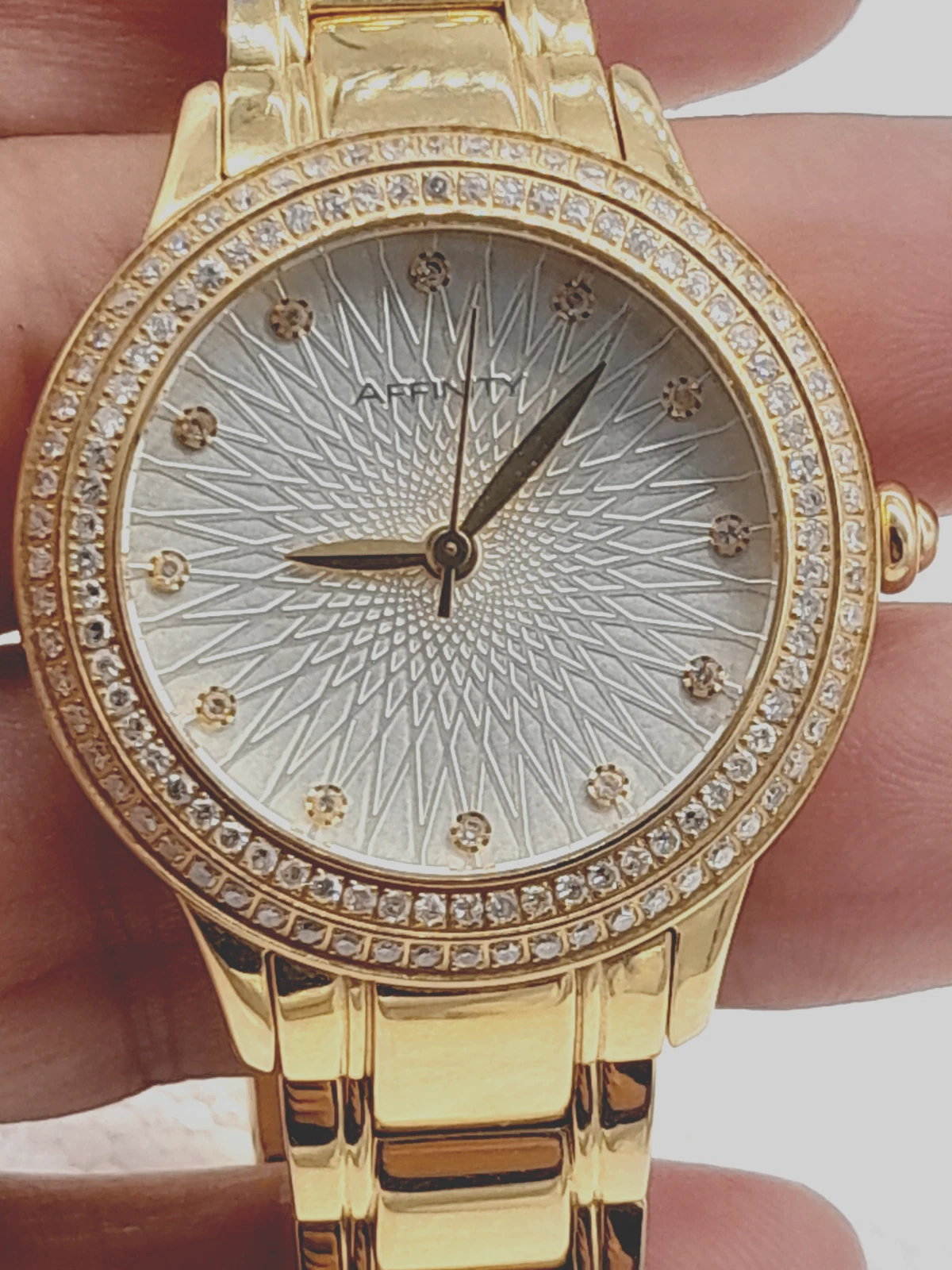 Affinity Goldtone 1 carat pave diamond bezel 3 atm Stainless steel watch Nice!