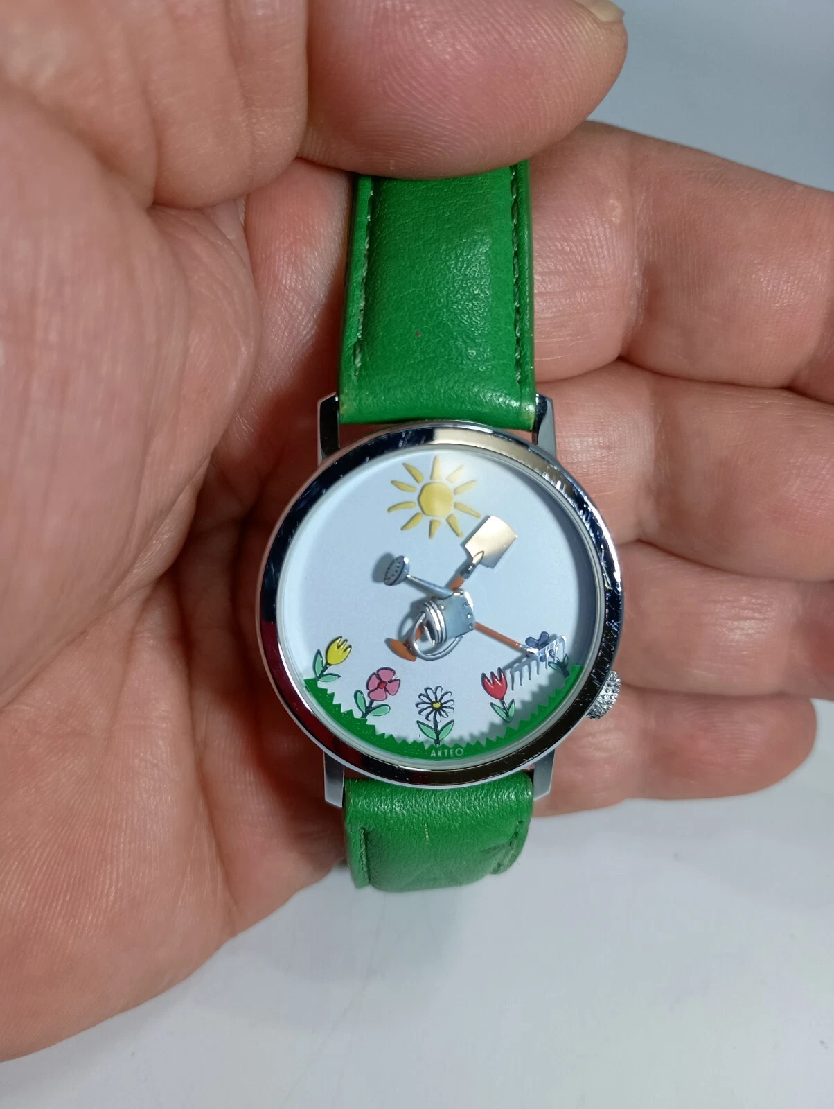 RARE Story Box Akteo Gardner Watch Green Leather New Battery
