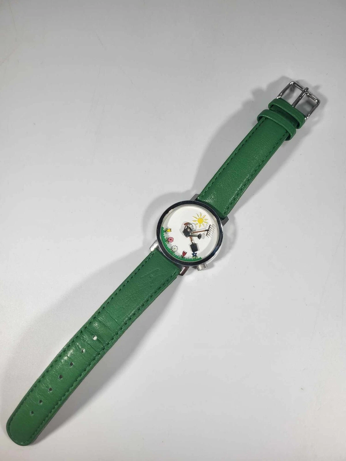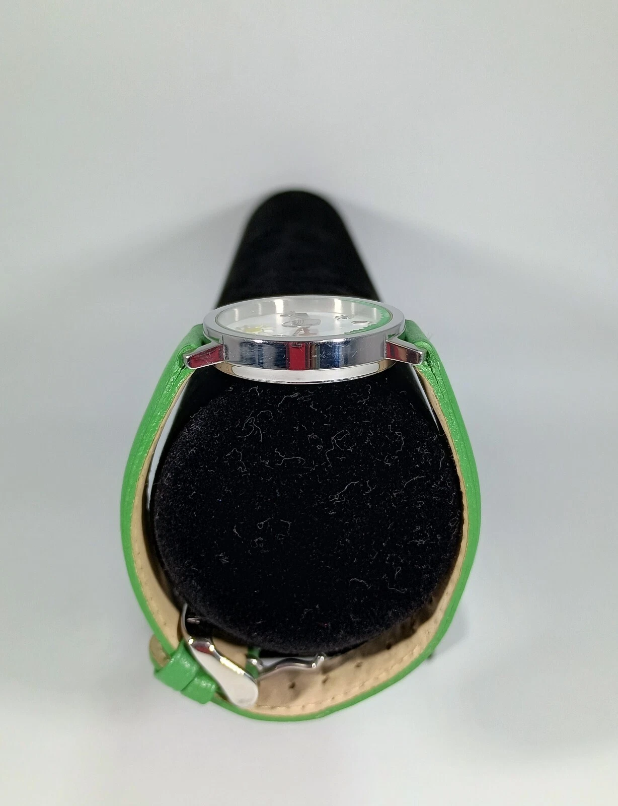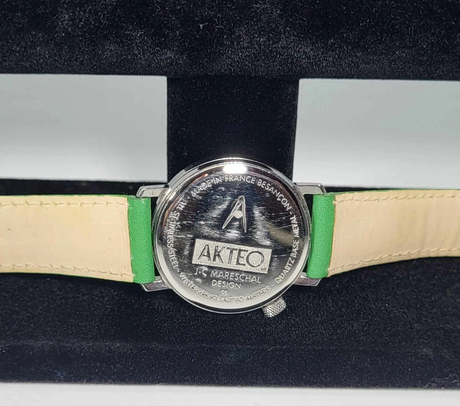 RARE Story Box Akteo Gardner Watch Made in France Green Leather Band Vintage