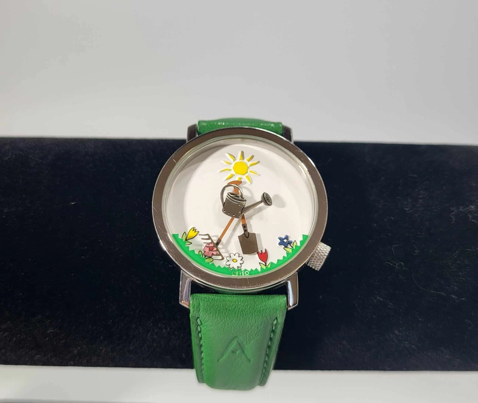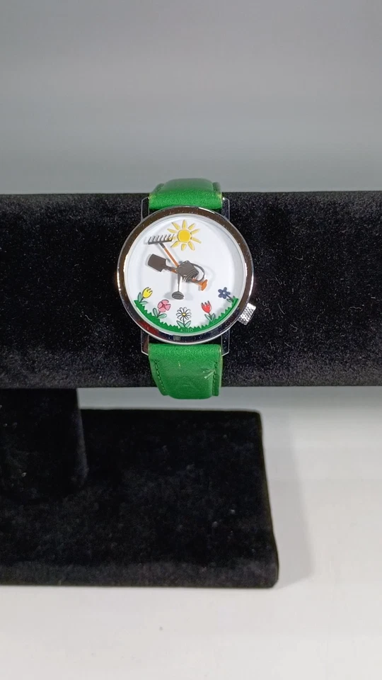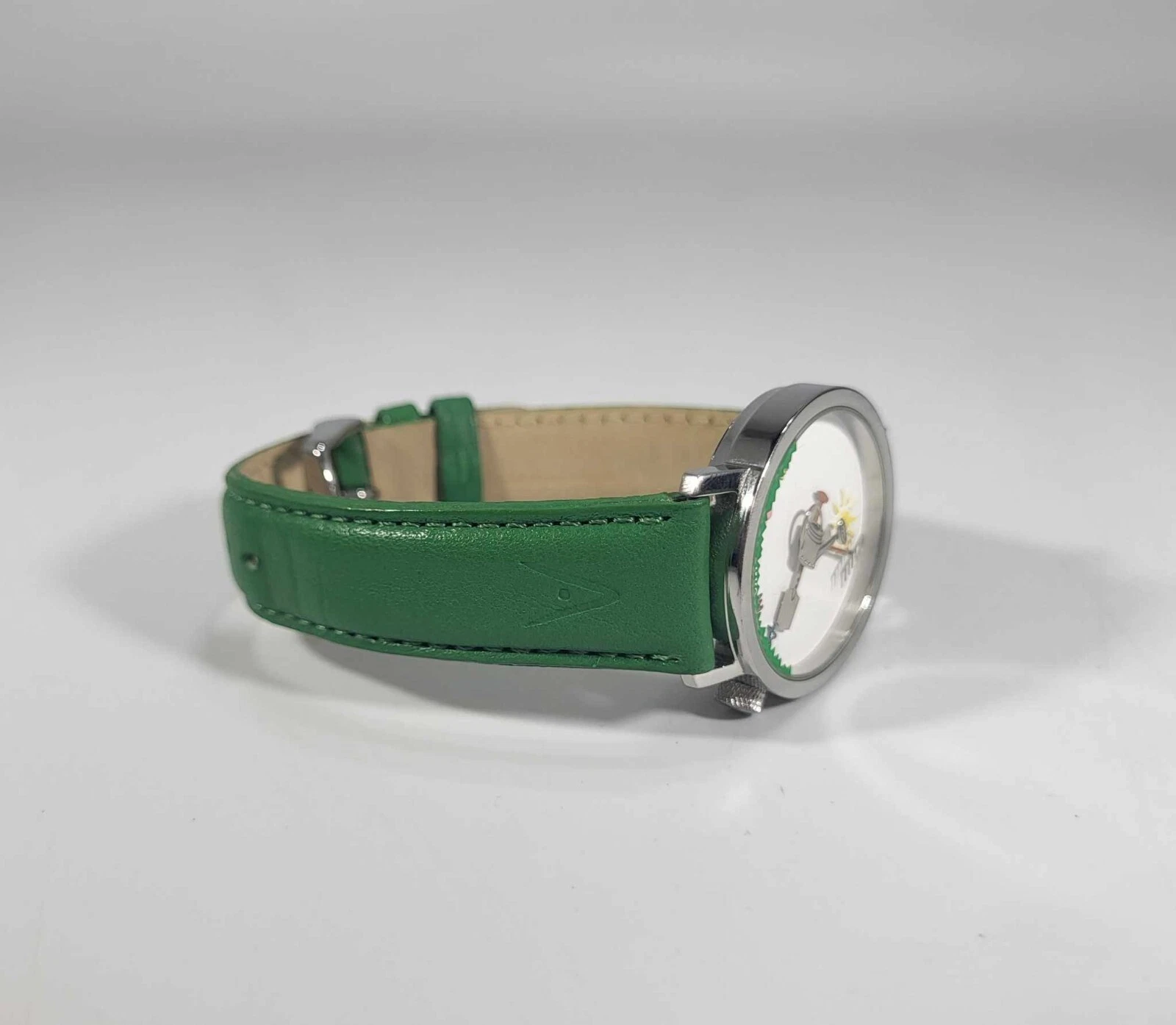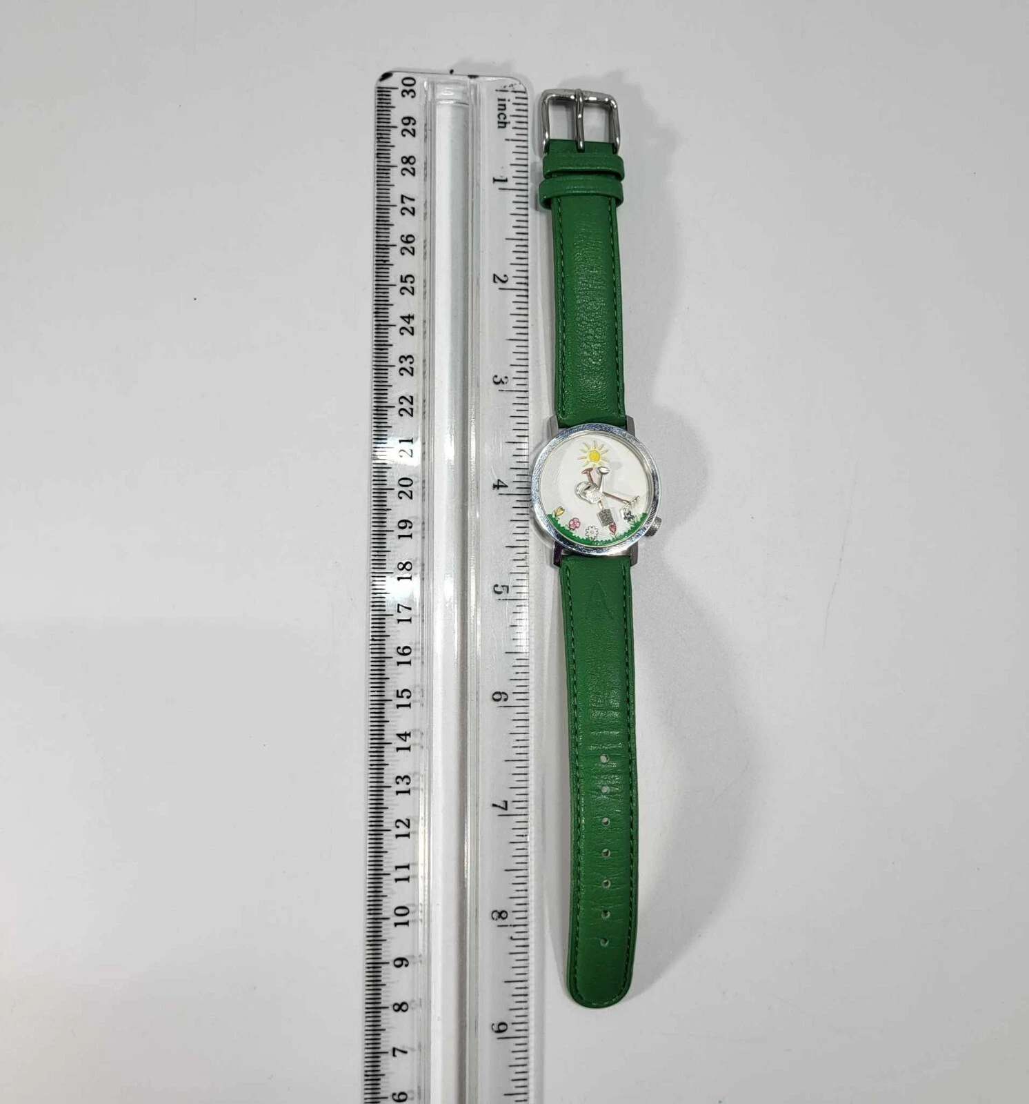 RARE Story Box Akteo Gardner Watch Made in France Green Leather Band Vintage