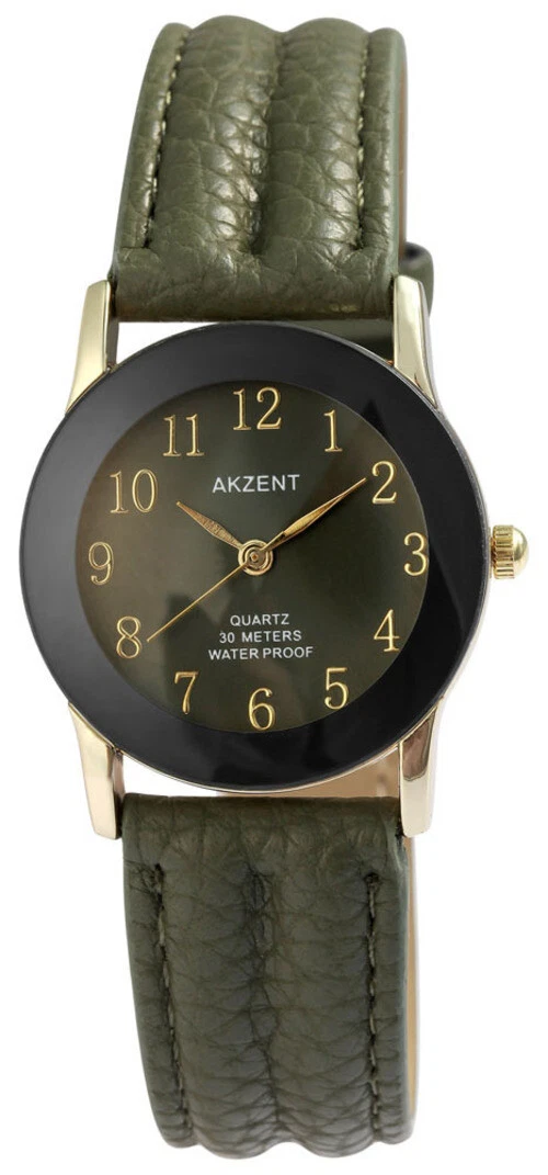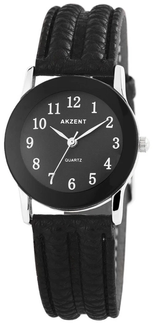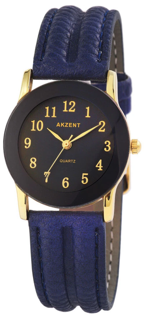 Akzent Women's Black Rose Gold Blue Silver Quartz Lederimit Wrist Watch