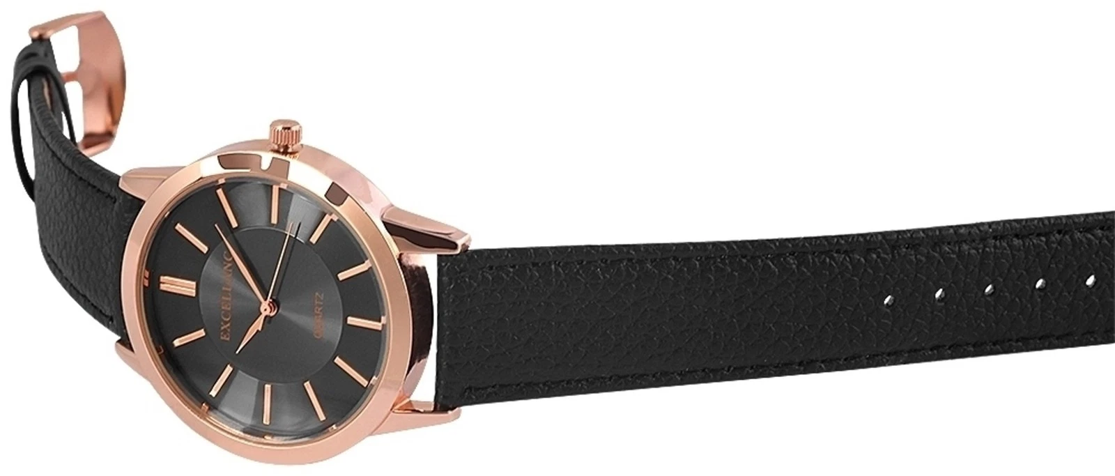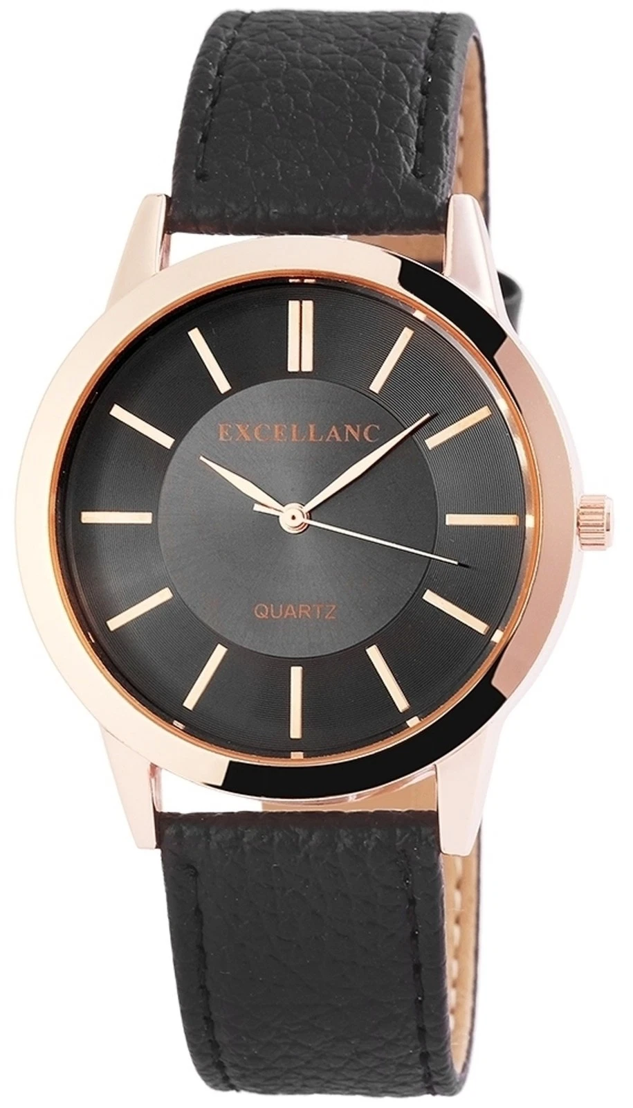 Excellanc Men's Watch Wristwatch Leather Strap Leather Black Watch
