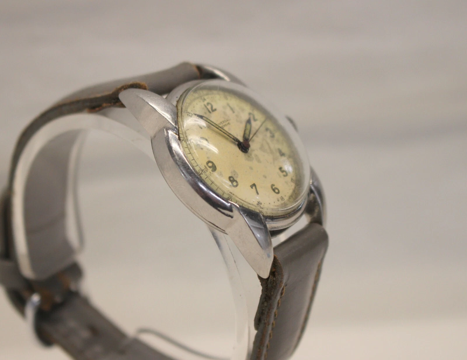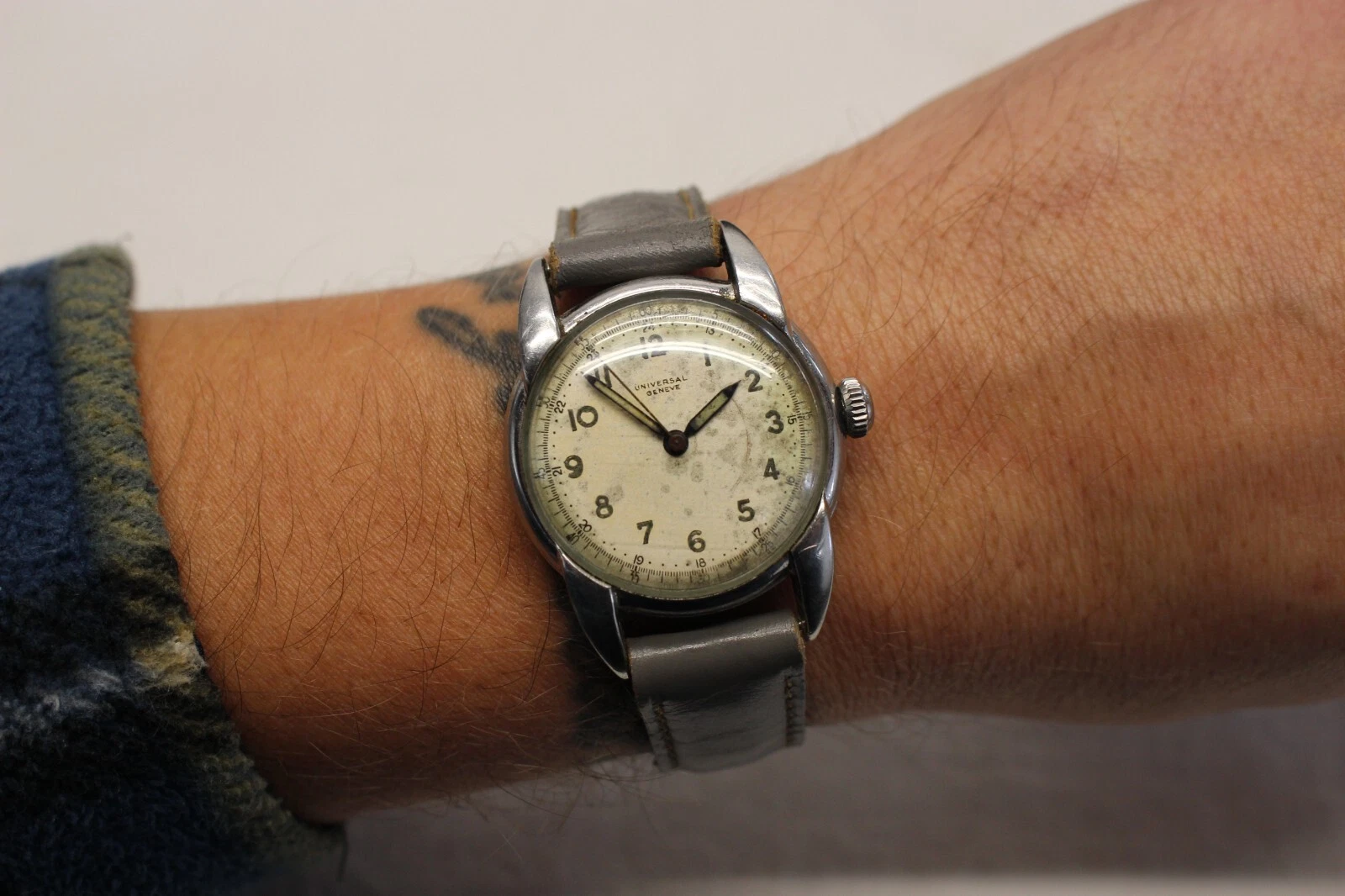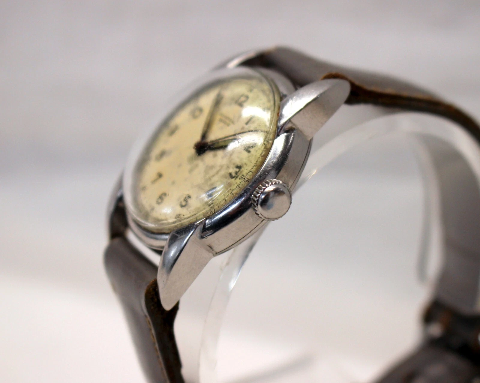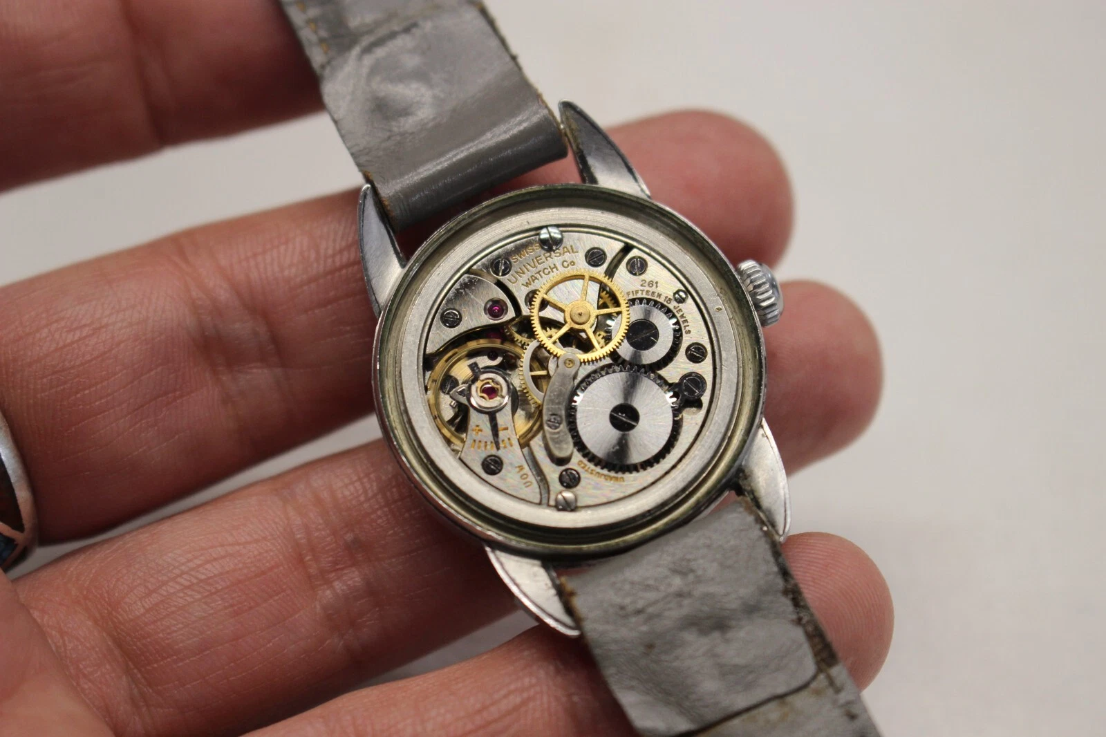 1950's UNIVERSAL GENEVE Manual Watch MILITARY DIAL Running RARE CASE DESIGN 31mm