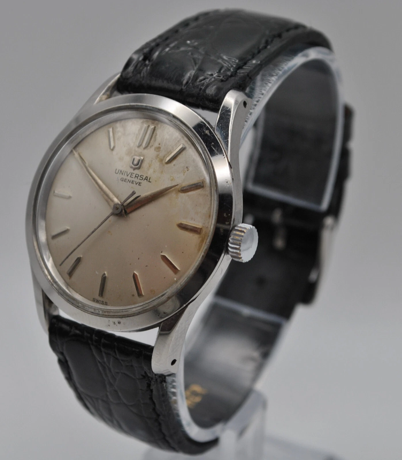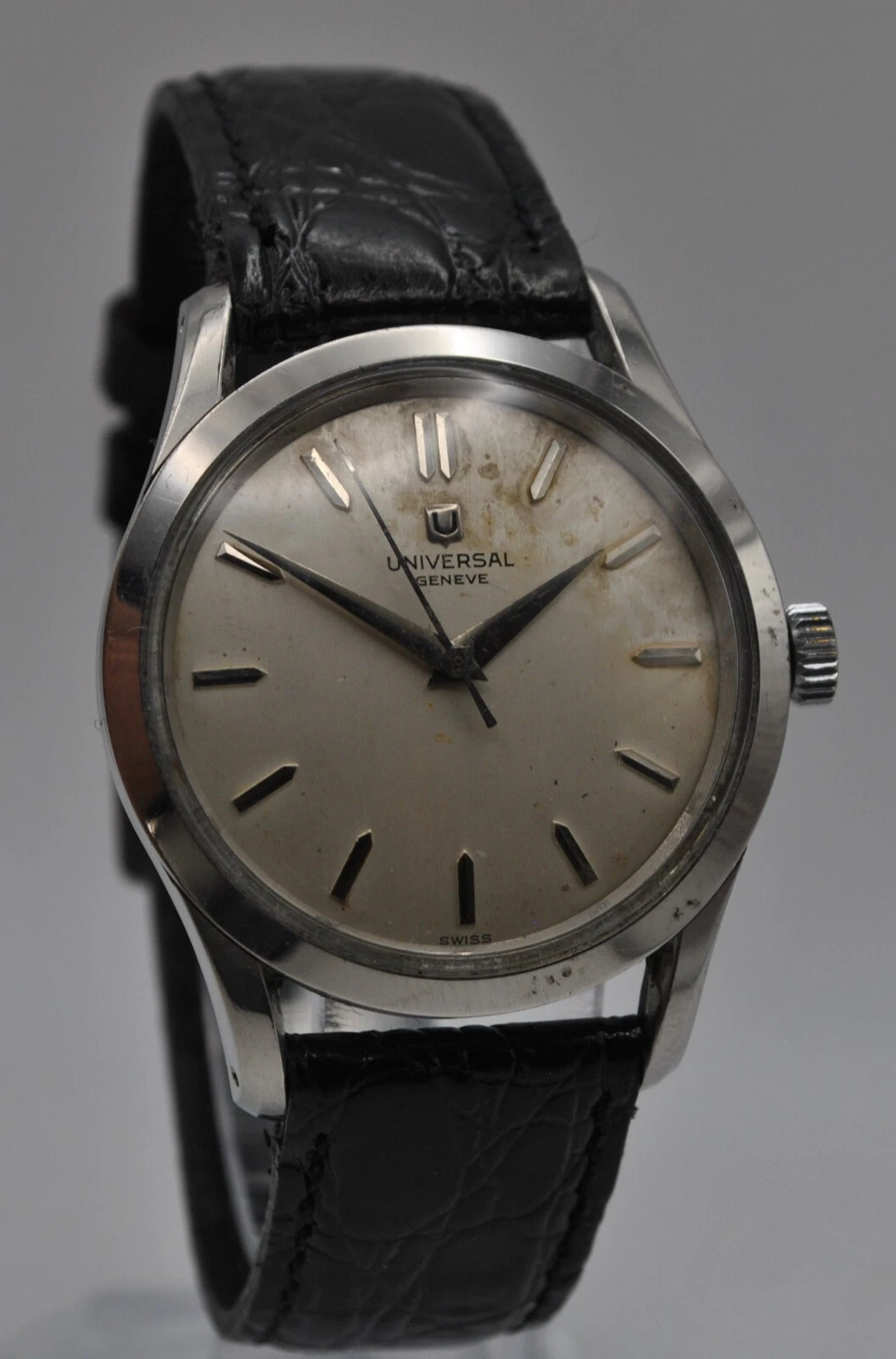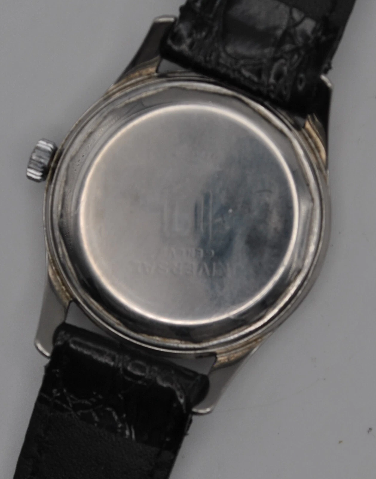 Universal Geneva 206513-1Manual wind stainless gents watch 17 Jewel Cal 332~1950