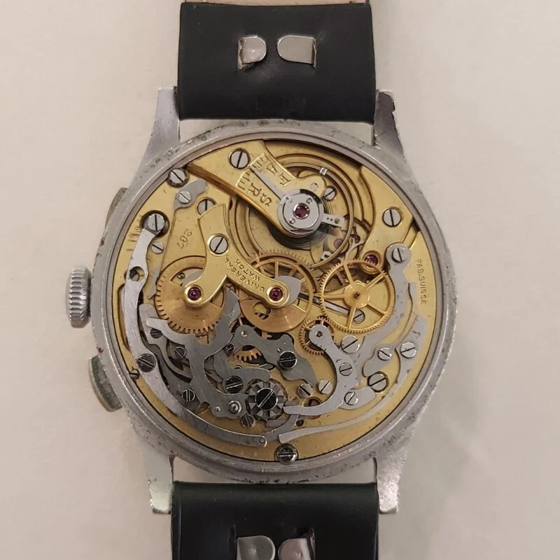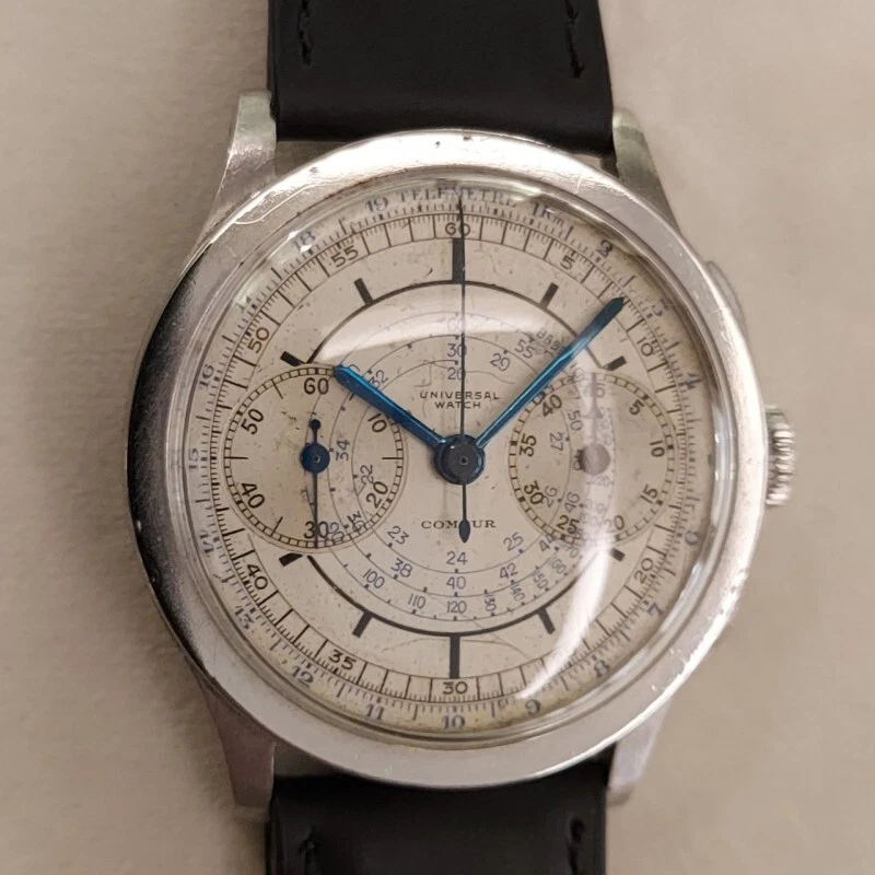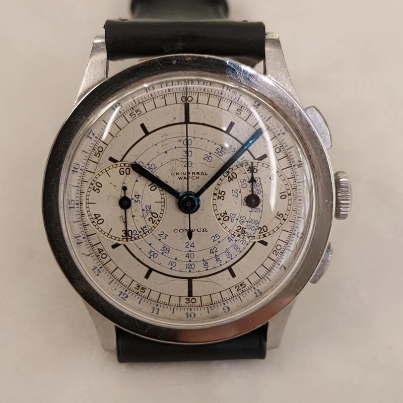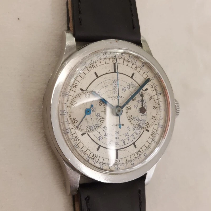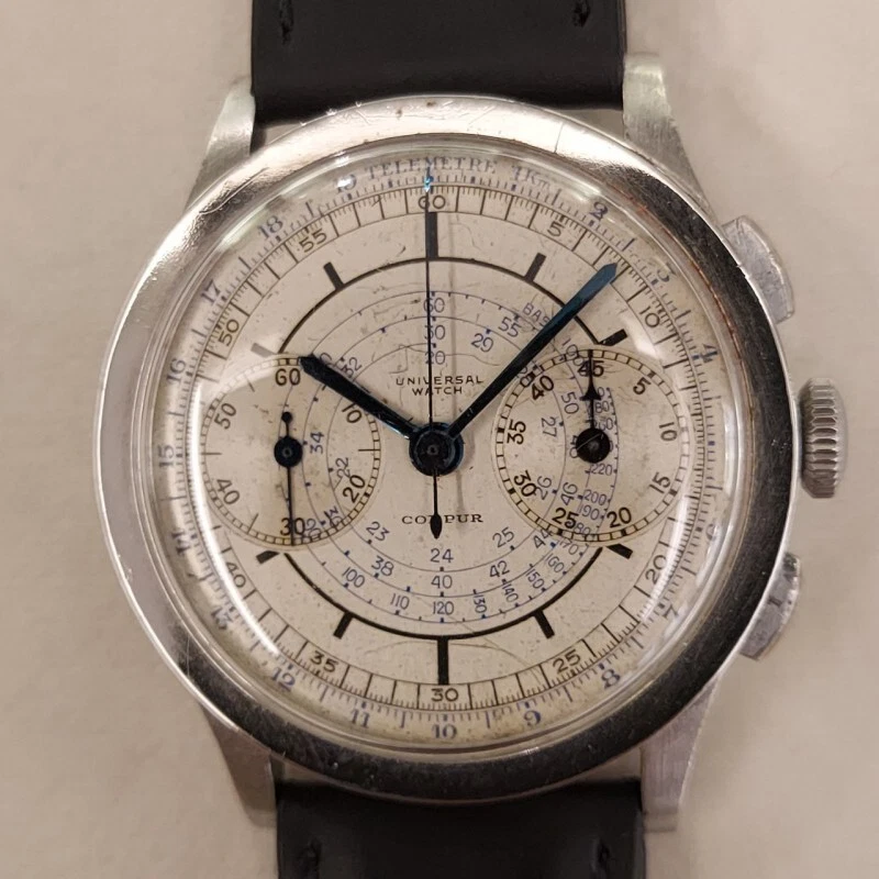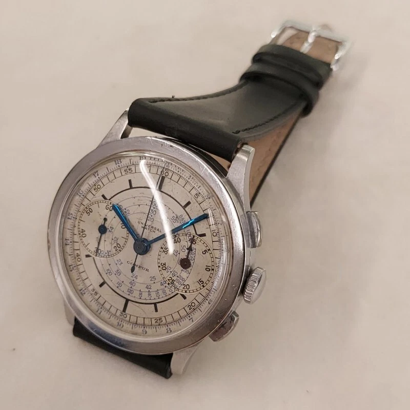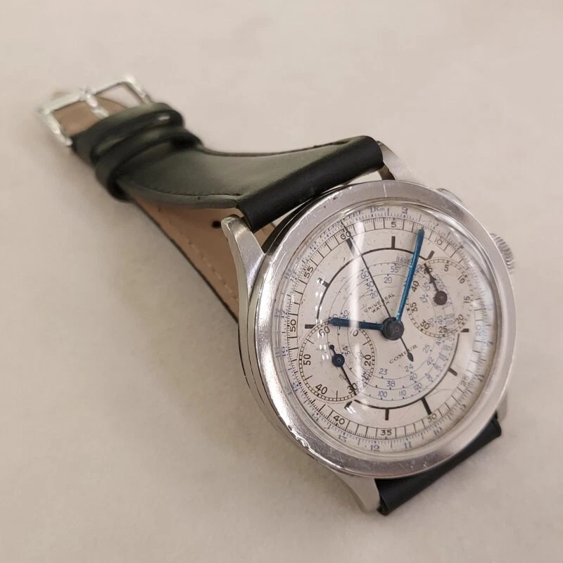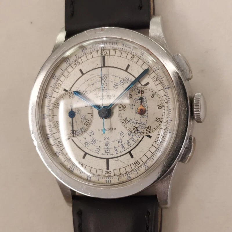 Universal Chronograph Compur in steel manual wind 37 mm fixed lug