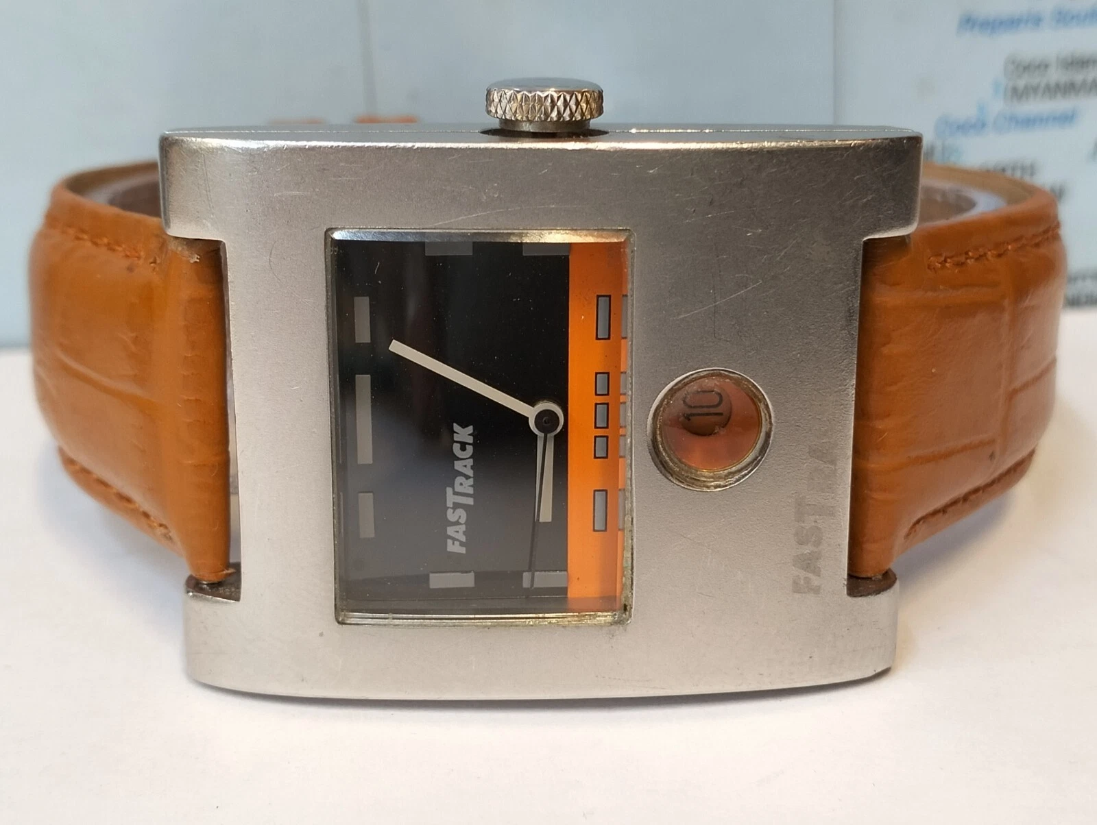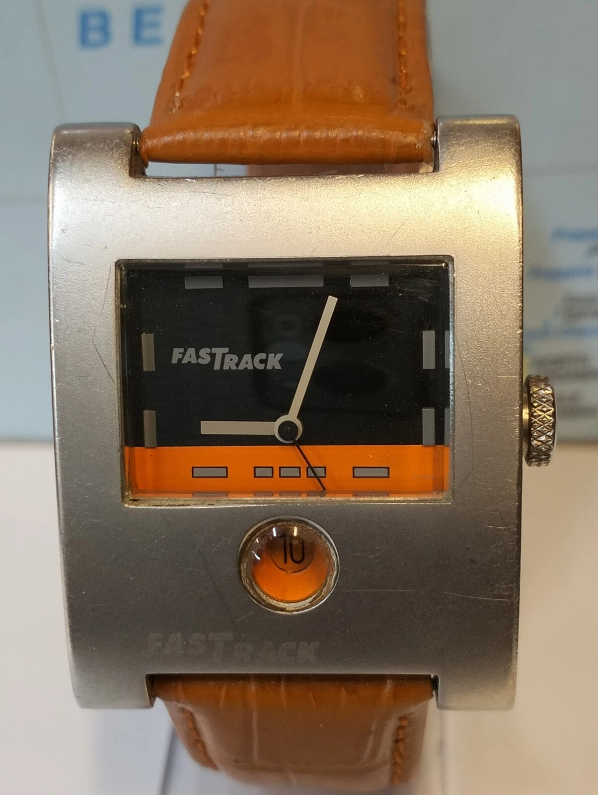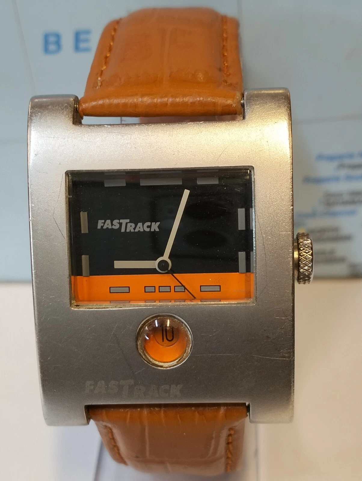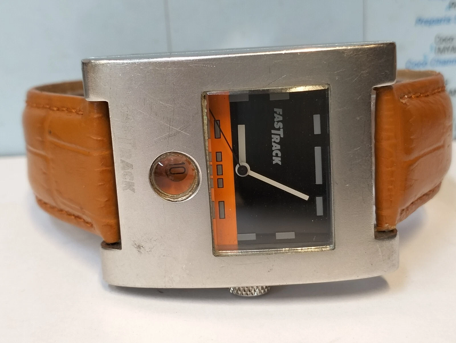 FASTRACK QUARTZ BLACK & GRANGE DIAL 1095SSA INDIA MEN'S FULL WORKING WRISTWATCH