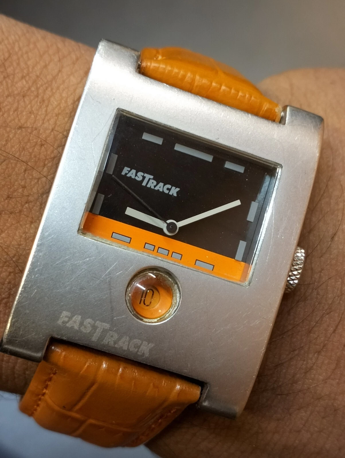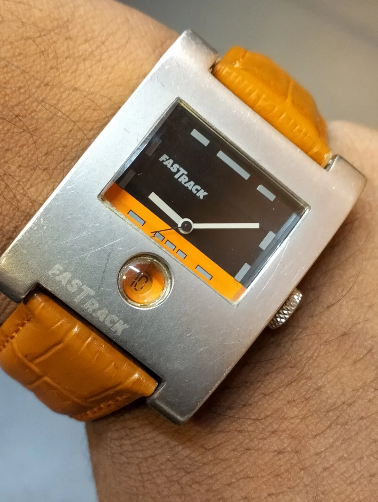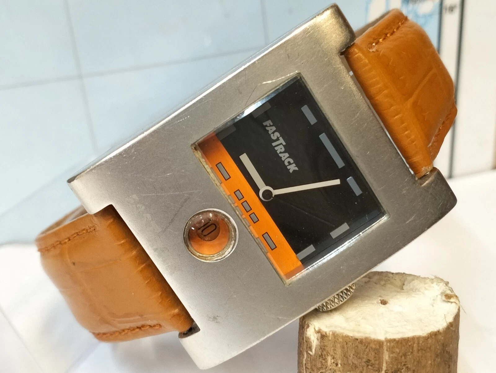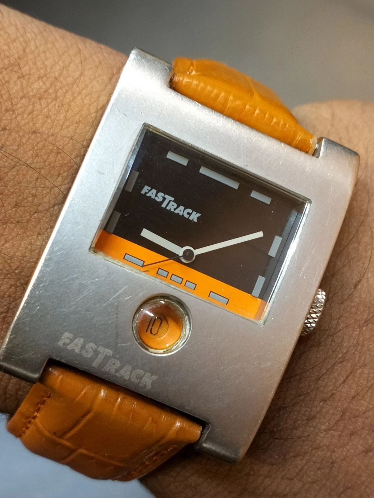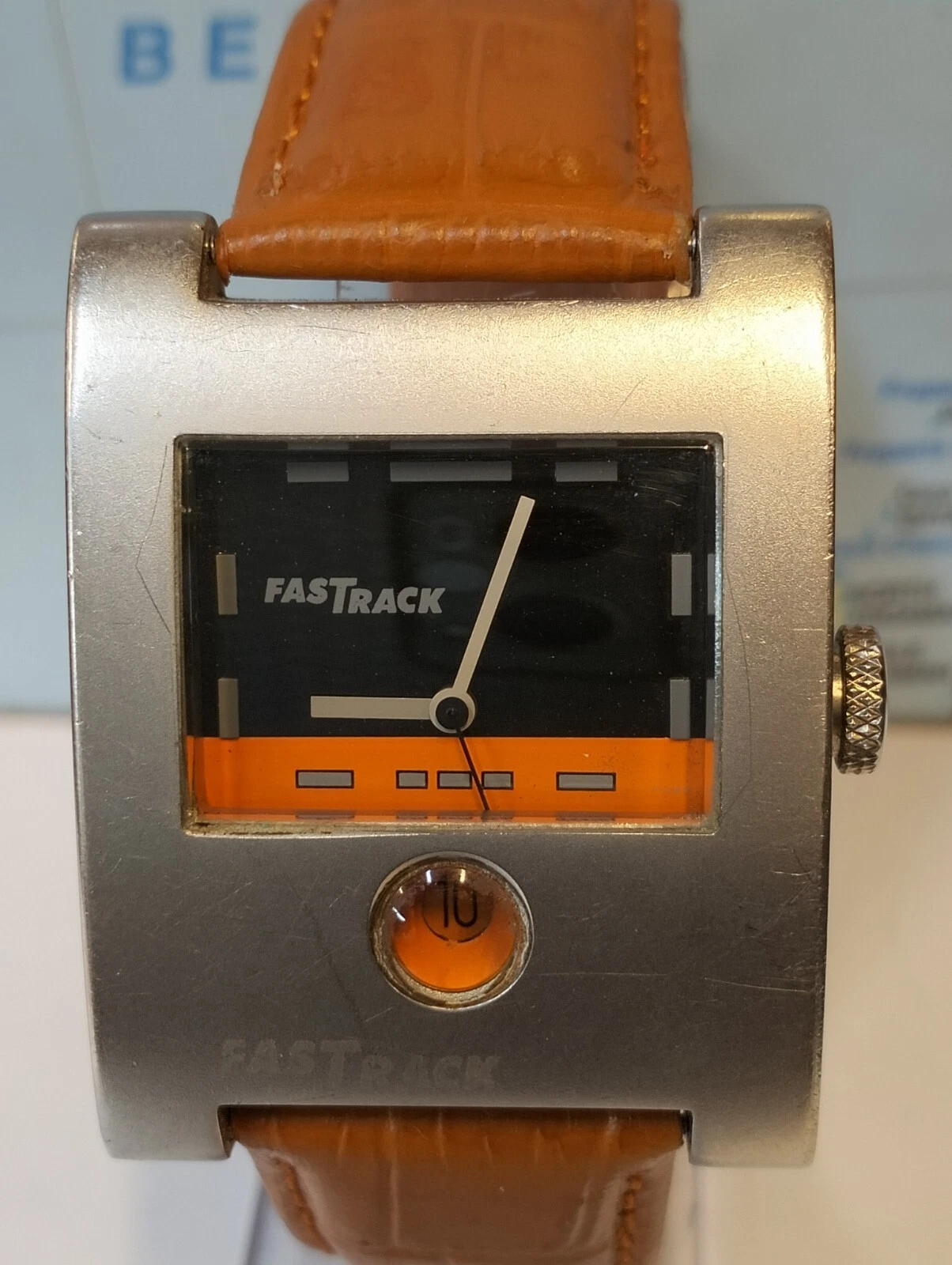 FASTRACK QUARTZ BLACK & GRANGE DIAL 1095SSA INDIA MEN'S FULL WORKING WRISTWATCH