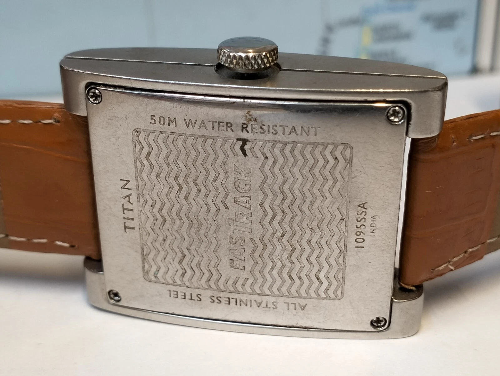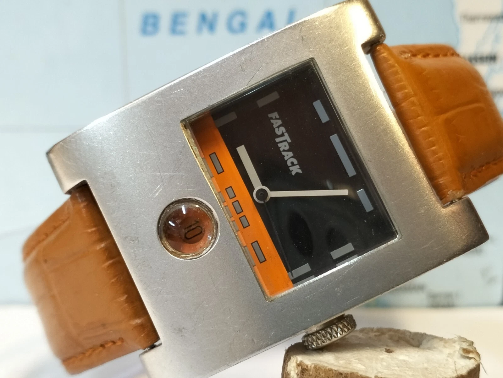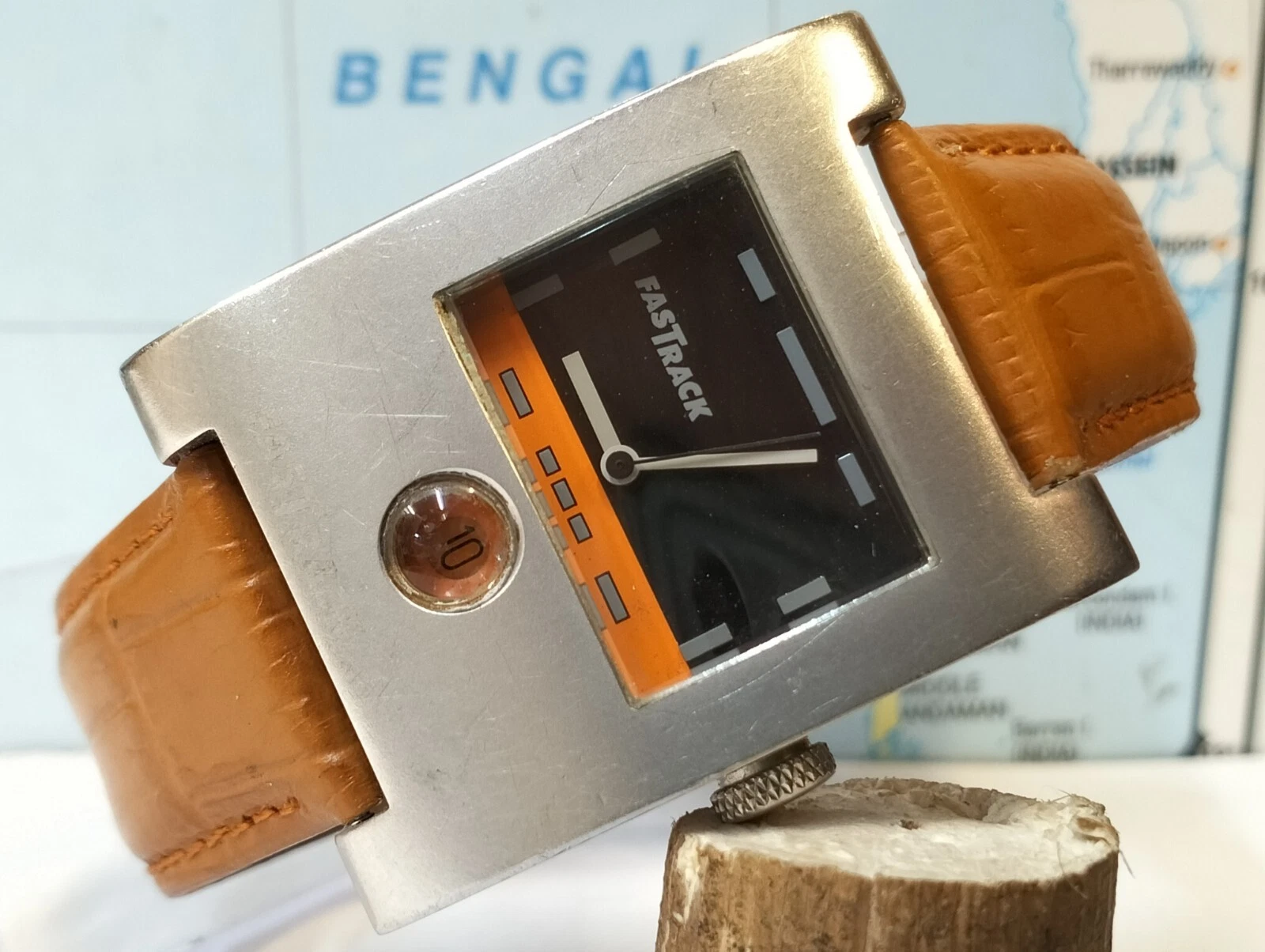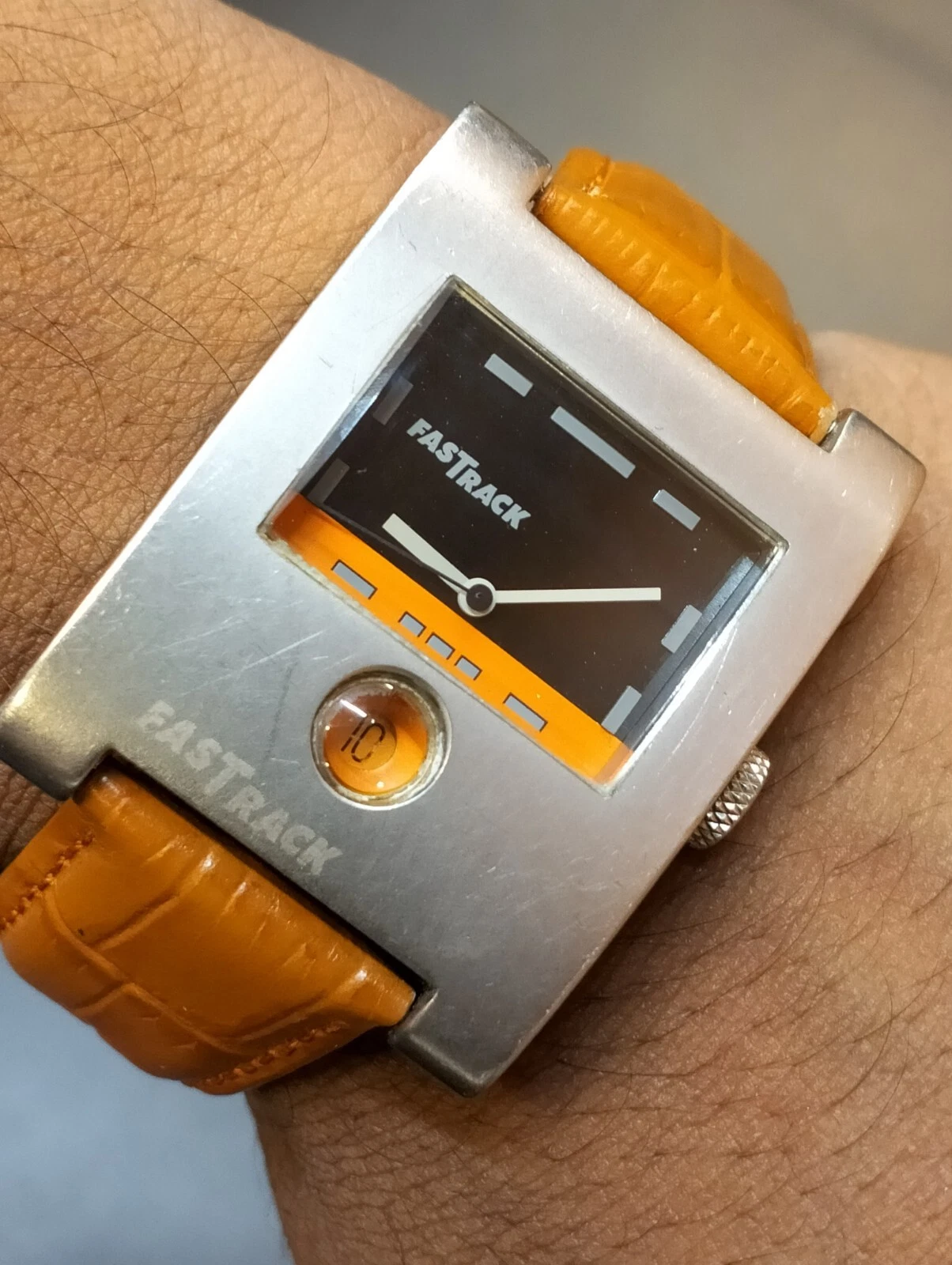 FASTRACK QUARTZ BLACK & GRANGE DIAL 1095SSA INDIA MEN'S FULL WORKING WRISTWATCH