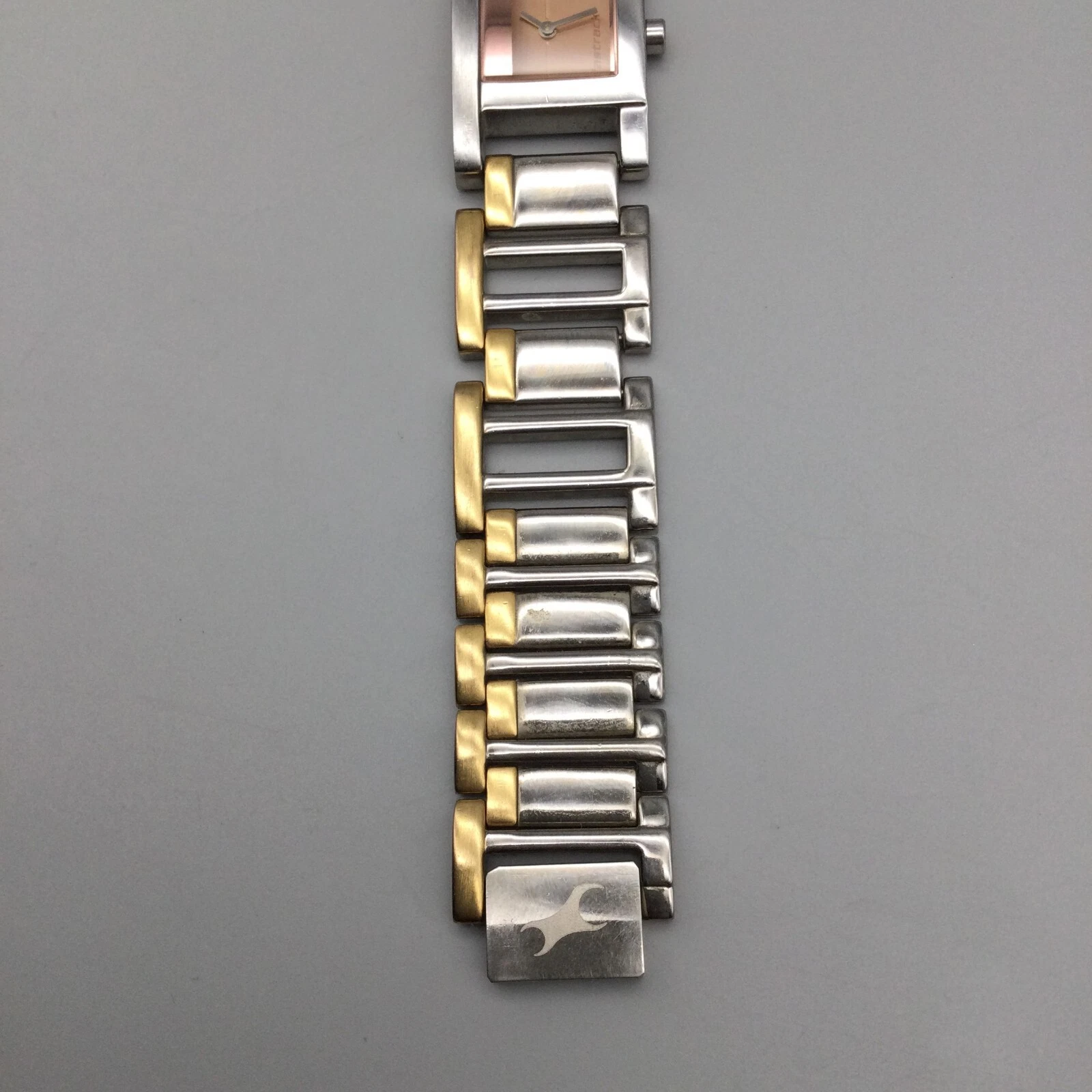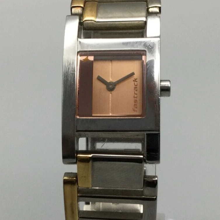 Fastrack Titan Watch Women 20mm Silver Rose Gold Tone Square New Battery 7.25"