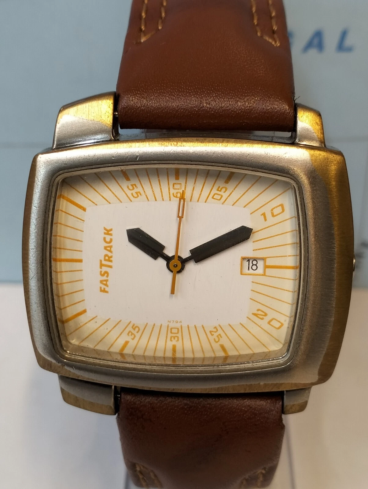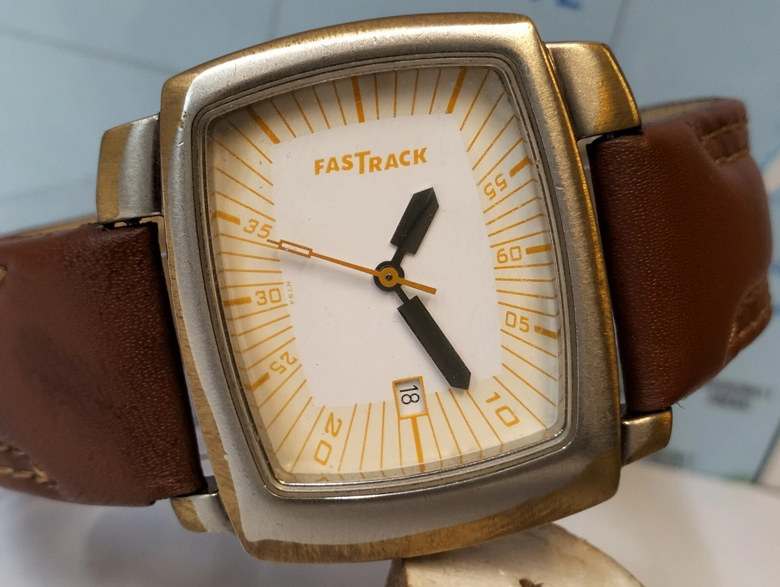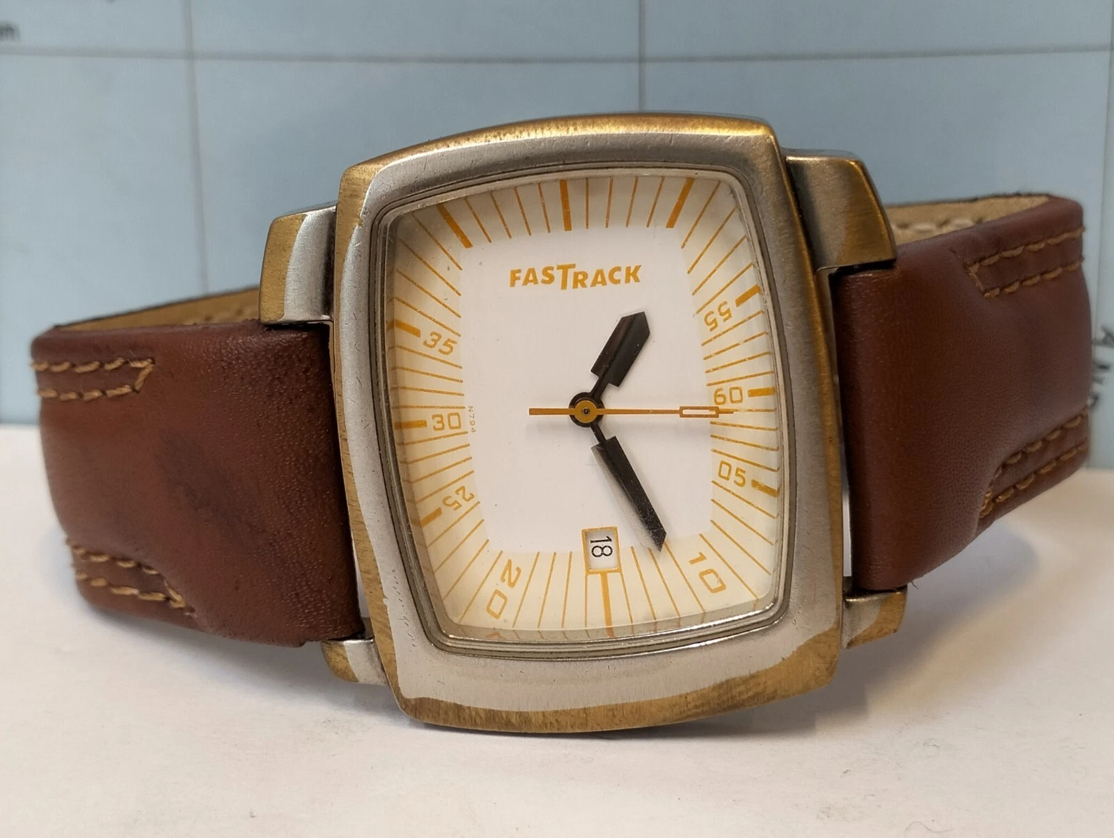FASTRACK QUARTZ WHITE DIAL 1242SAA INDIA MEN'S FULLY WORKING CONDITION VTG.