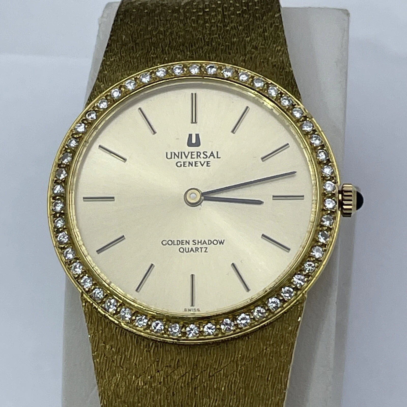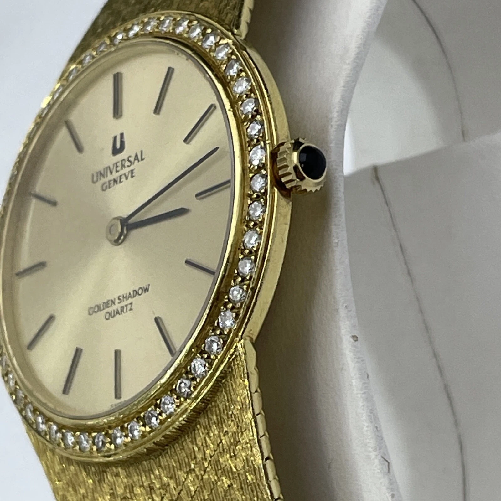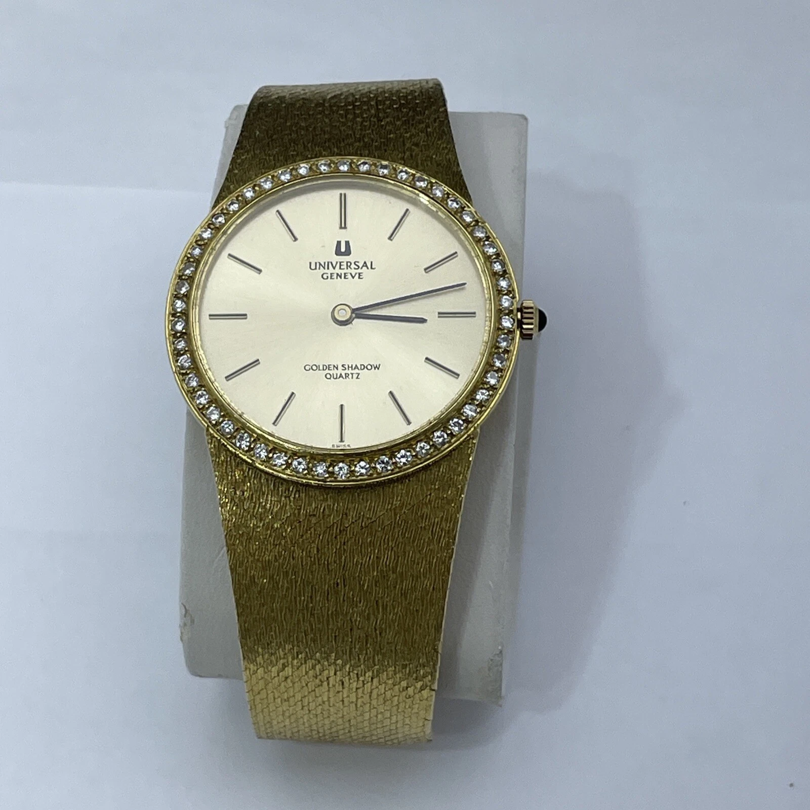 BEAUTIFUL 18K Yellow Gold Universal Geneve Golden Shadow Quartz Watch 7 1/2 In