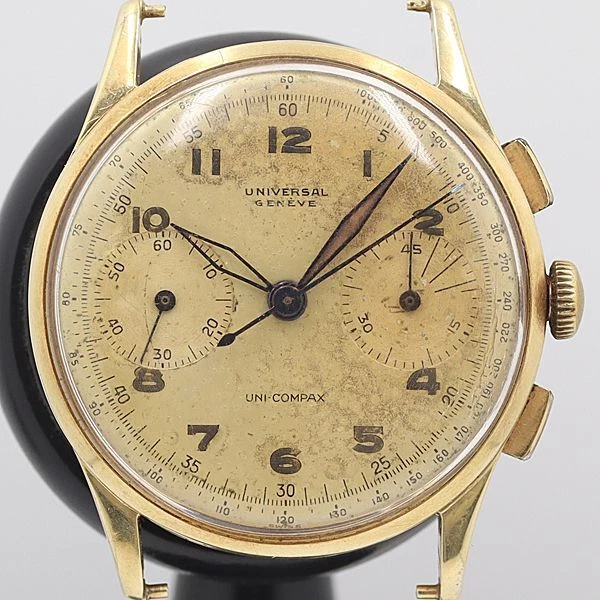 Universal Unicompax Hand-wound Chrono 52402 Gold Dial 14K 585 YG Men's Watch