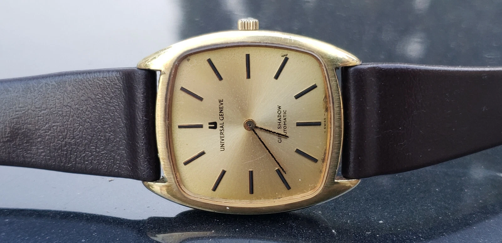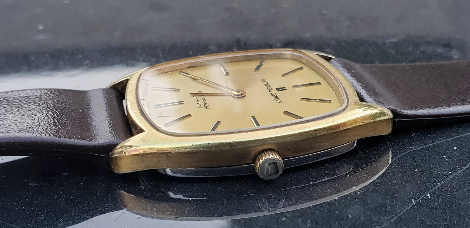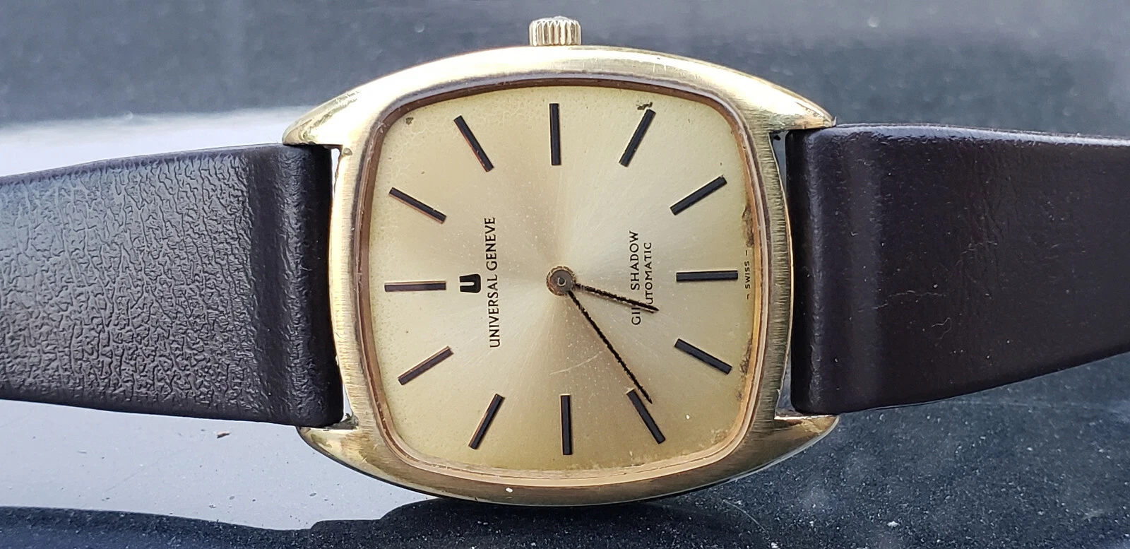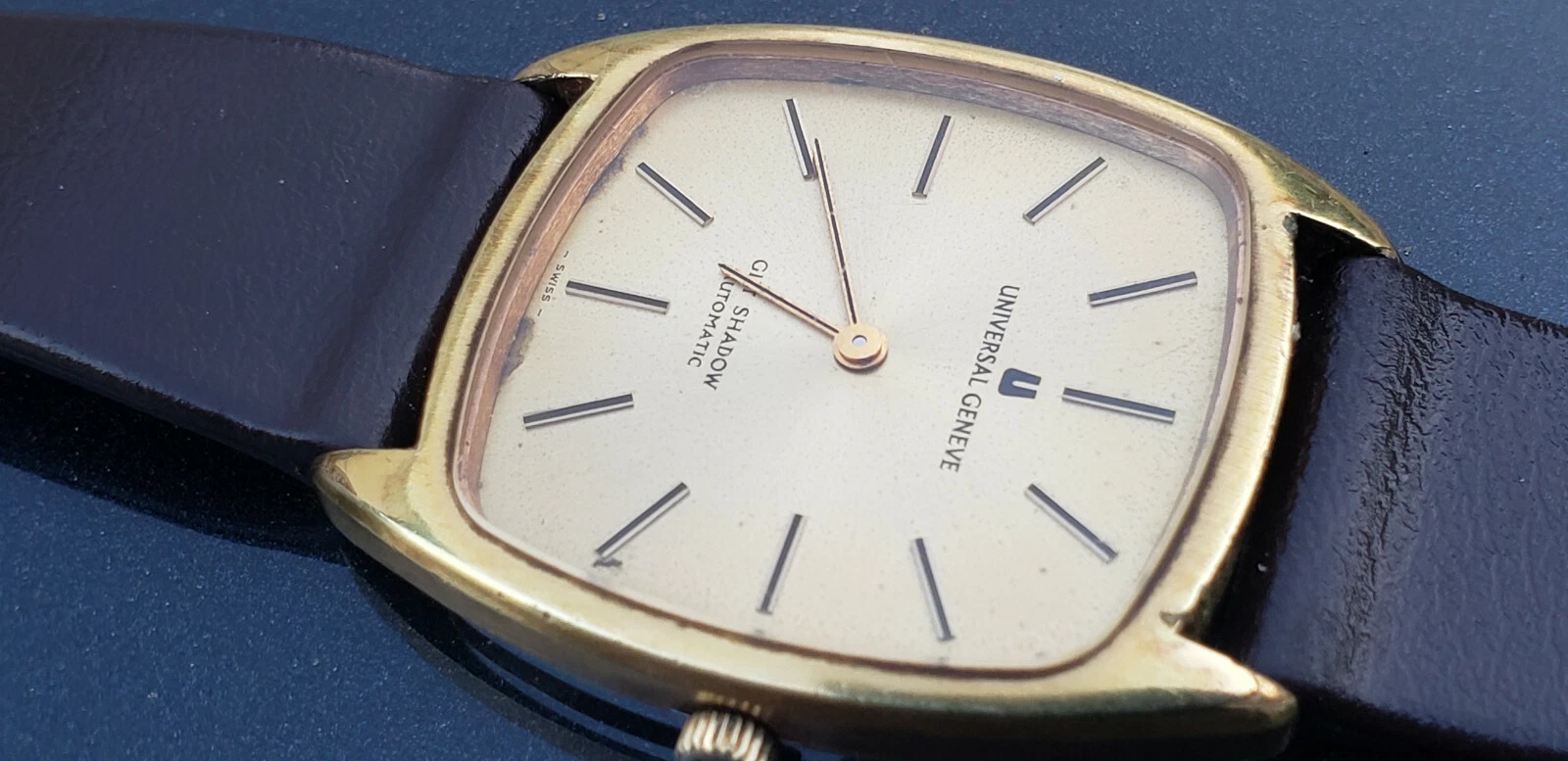 VINTAGE UNIVERSAL GILT SHADOW MICRO ROTOR GOLD PLATED MENS WATCH