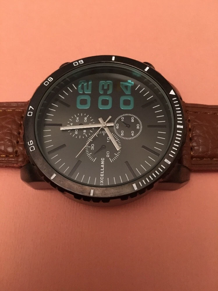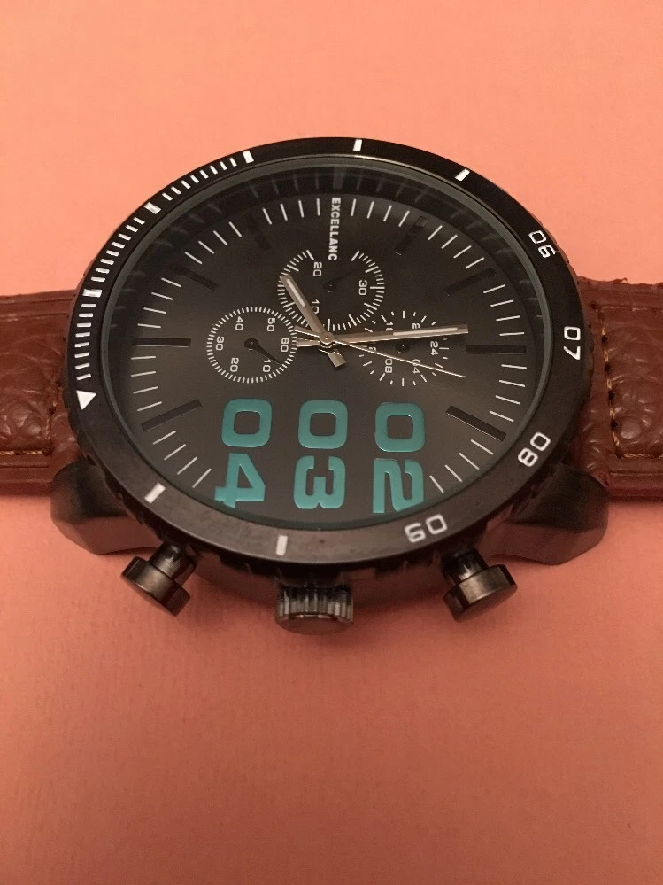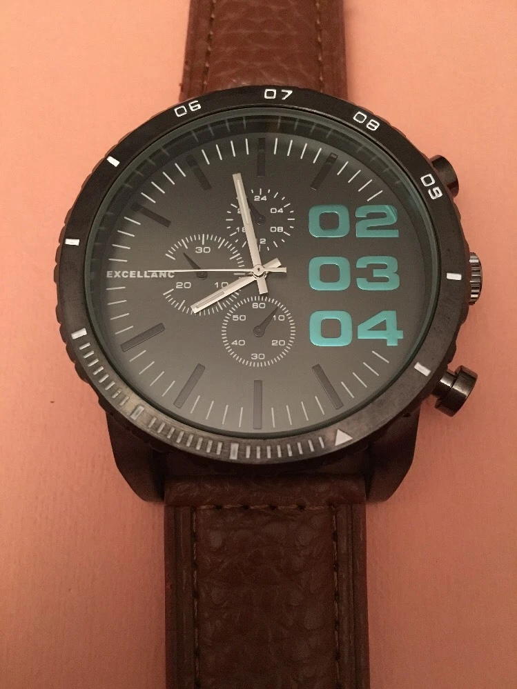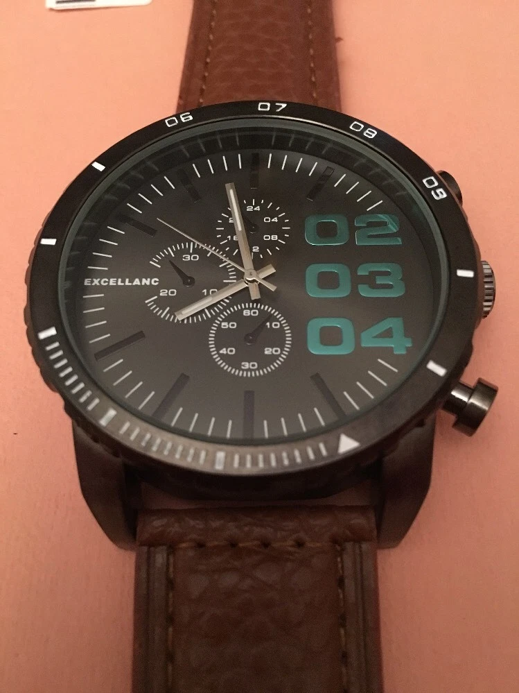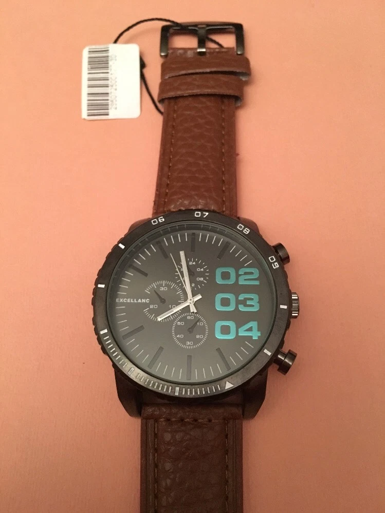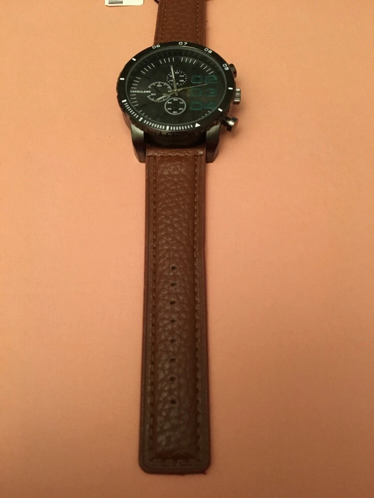 WRISTWATCH: Black Face. Brown Strap. BNWT. EXCELLANC.