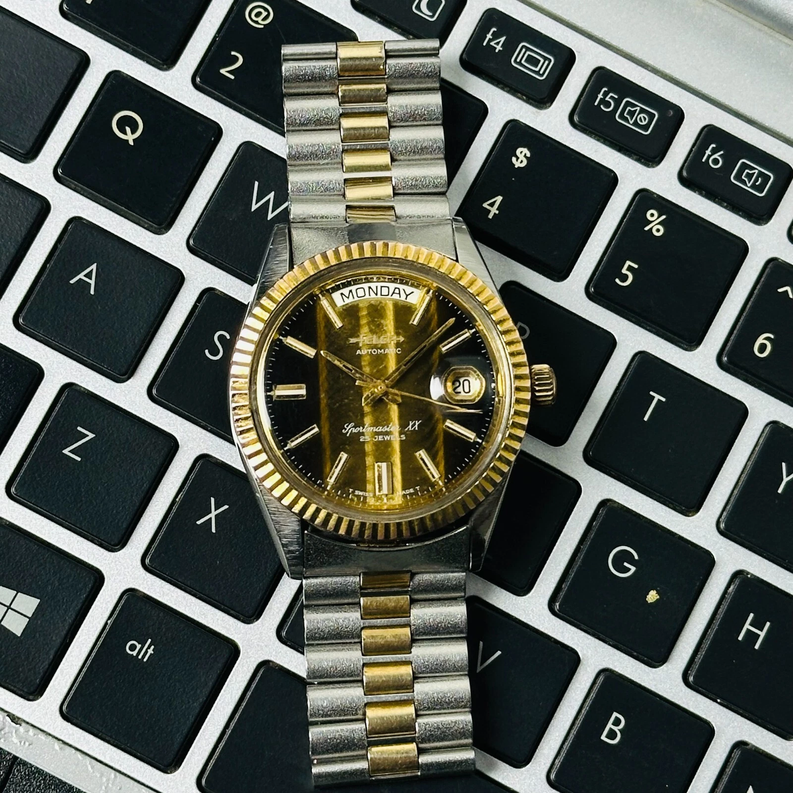 Vintage Felca President Sportmaster Tiger Eye Dial Automatic Men Watch 8521 G.F