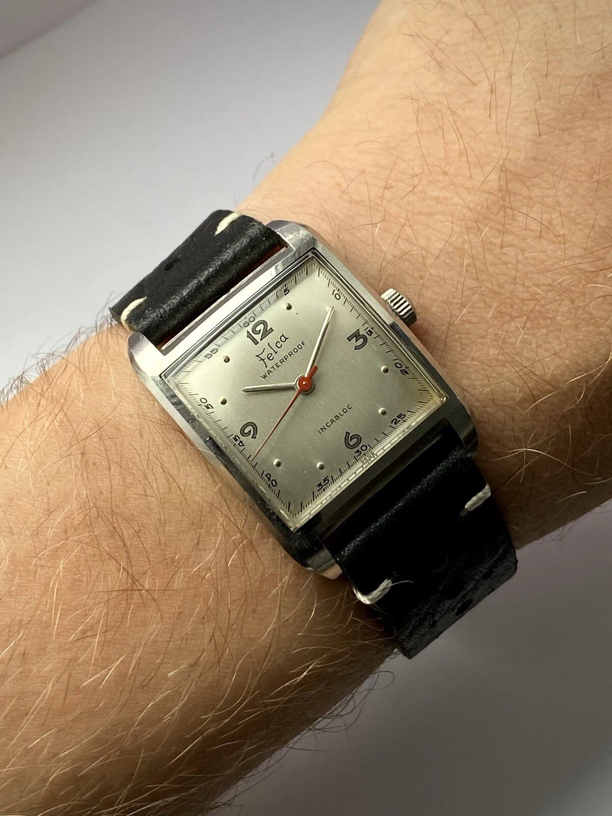 1950s Felca Waterproof Clamshell Square Steel watch ref 4066 ETA 1080 serviced