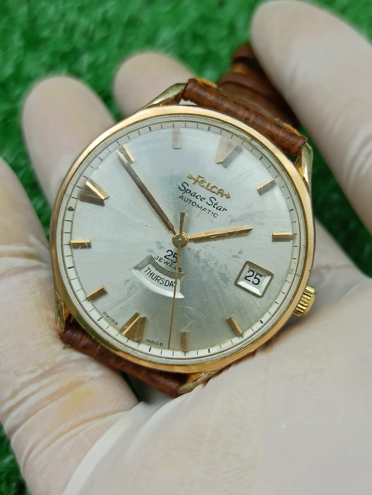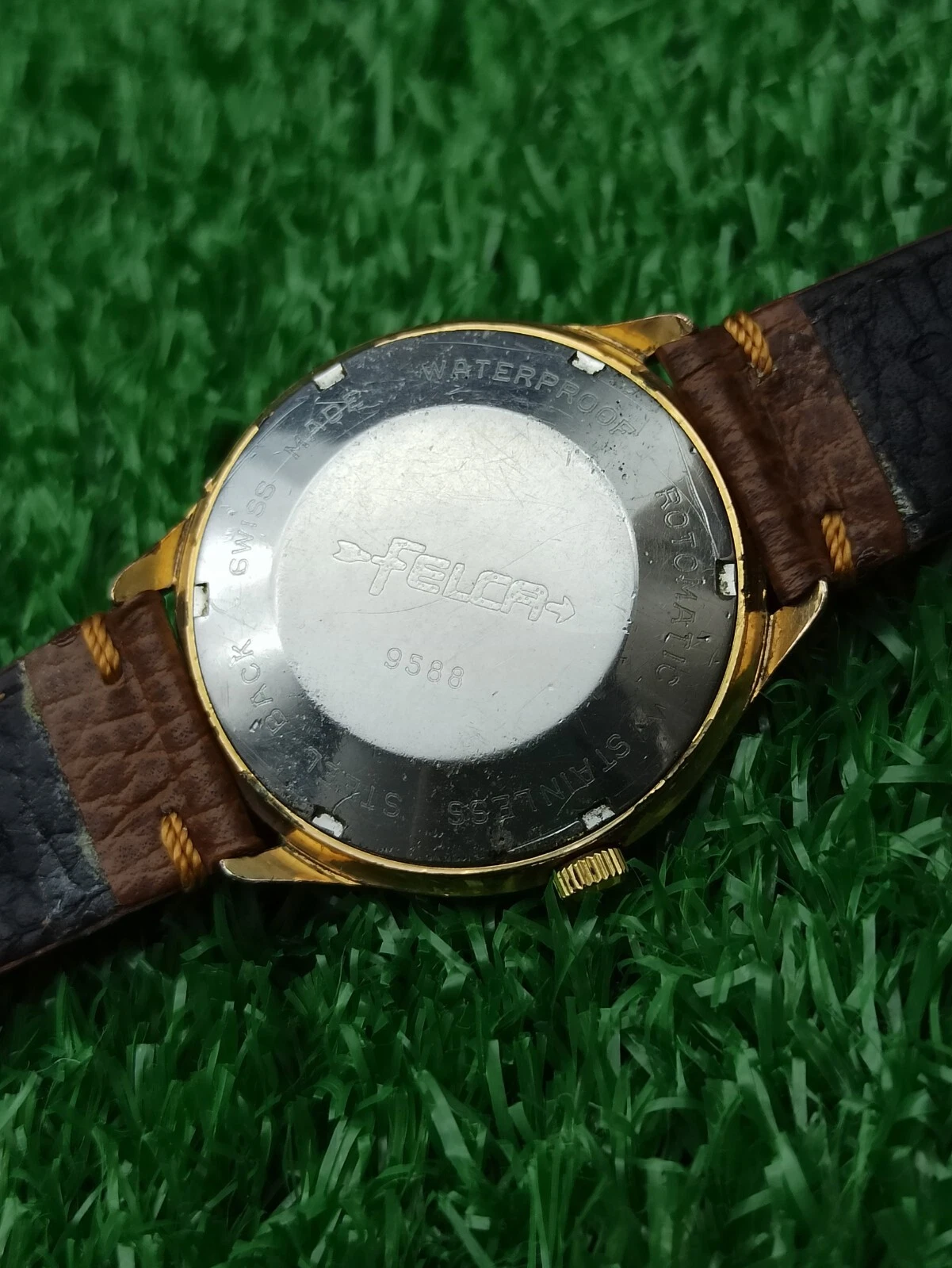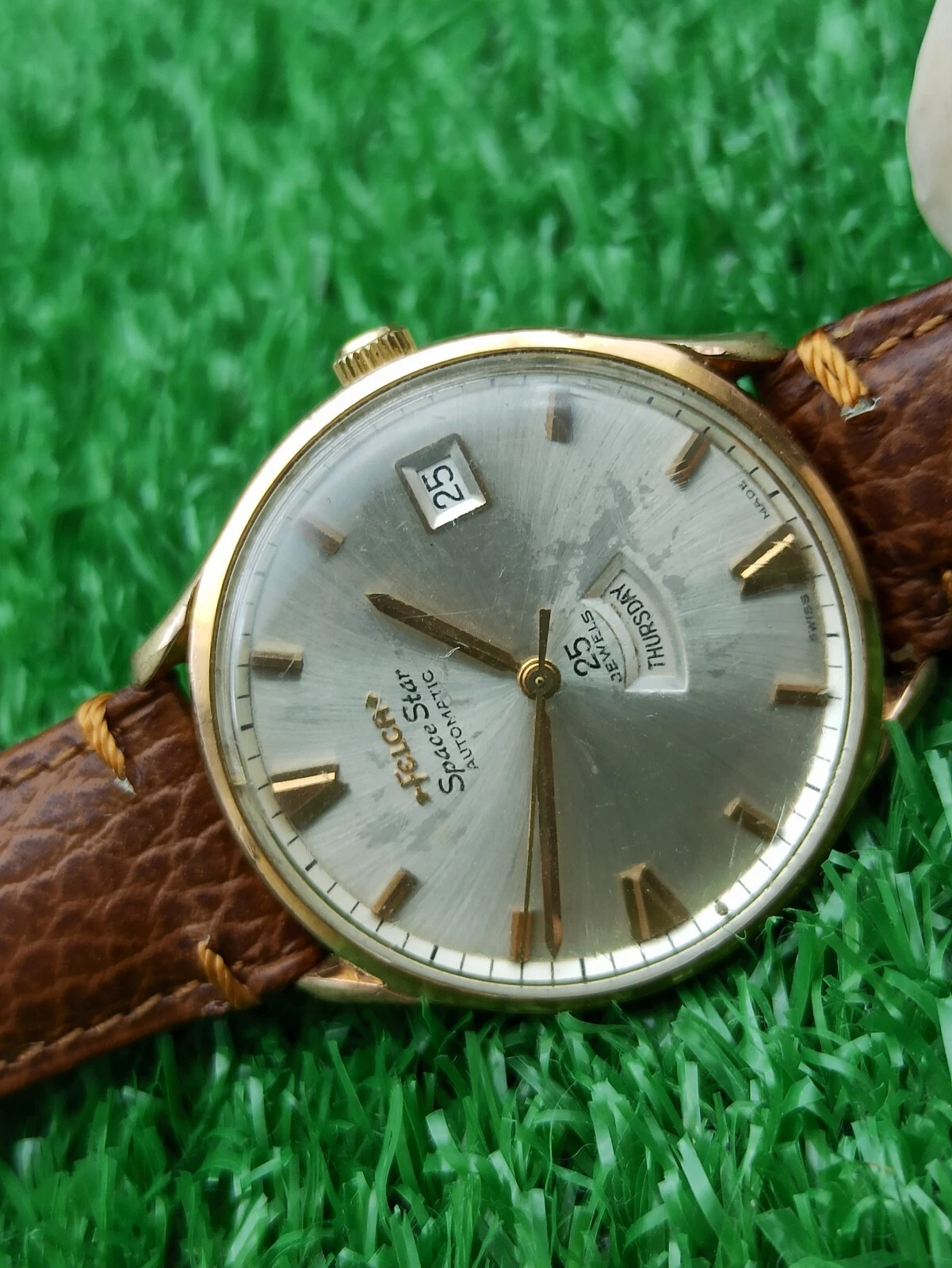 ONE-TIME-PIECE FELCA SPACE STAR WATCH AUTOMATIC & TRIPLE CALENDAR 1970s SWISS