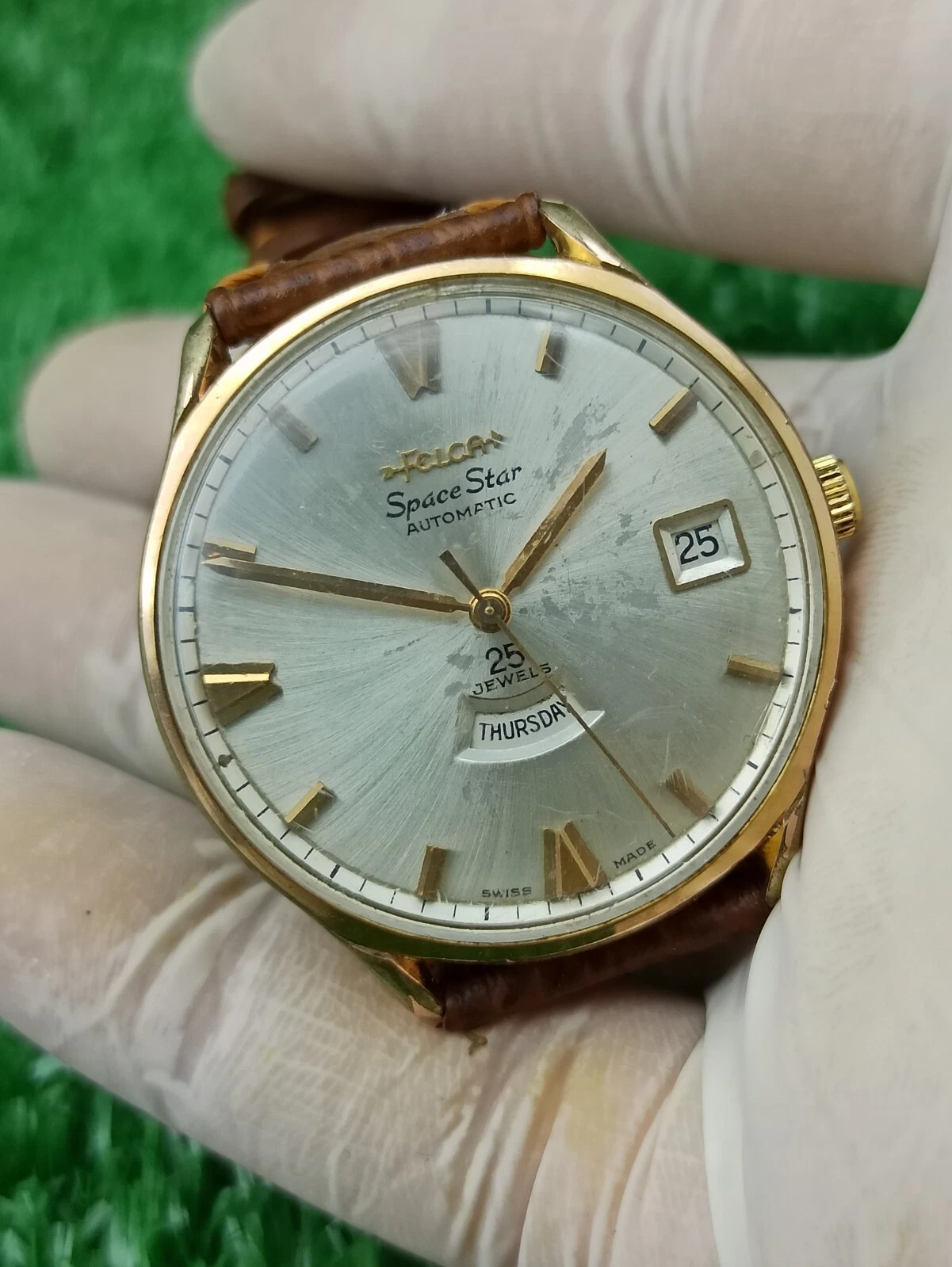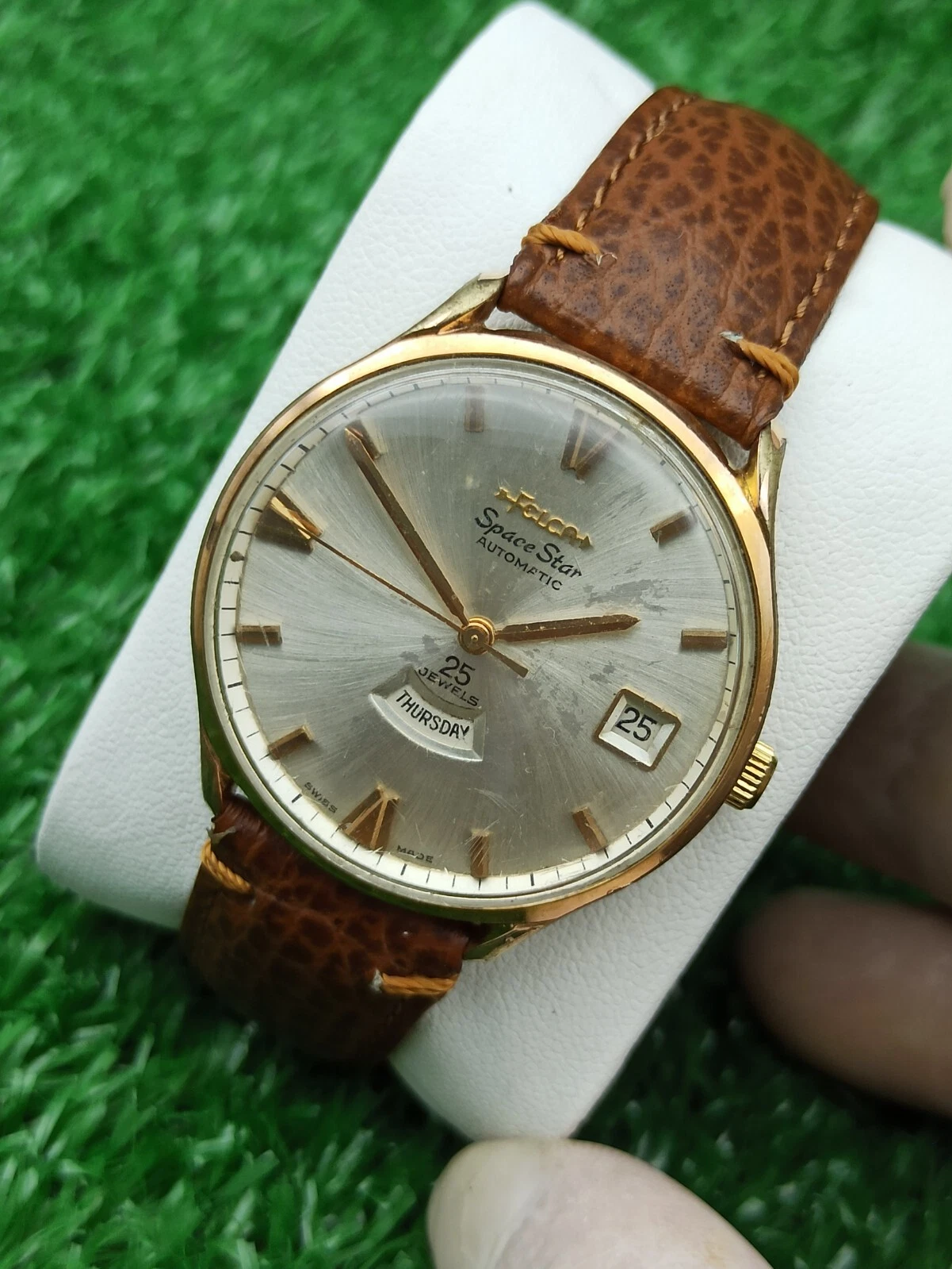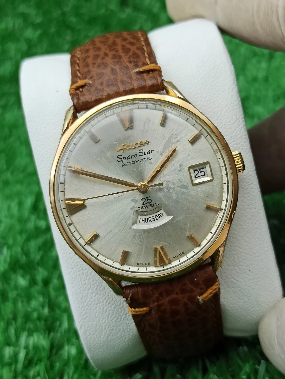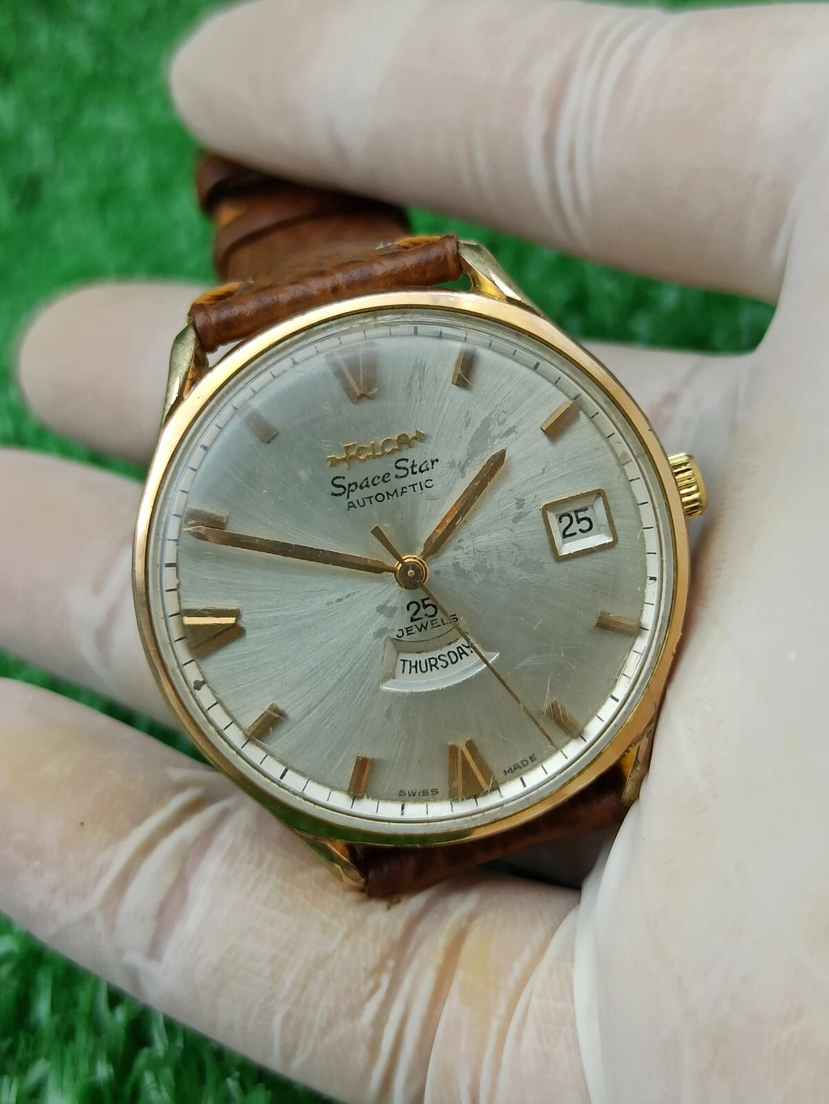 ONE-TIME-PIECE FELCA SPACE STAR WATCH AUTOMATIC & TRIPLE CALENDAR 1970s SWISS