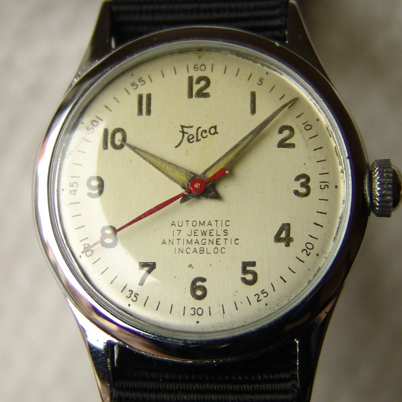 MEN'S WWII period FELCA Automatic by F Schluep MILITARY STYLE WRISTWATCH