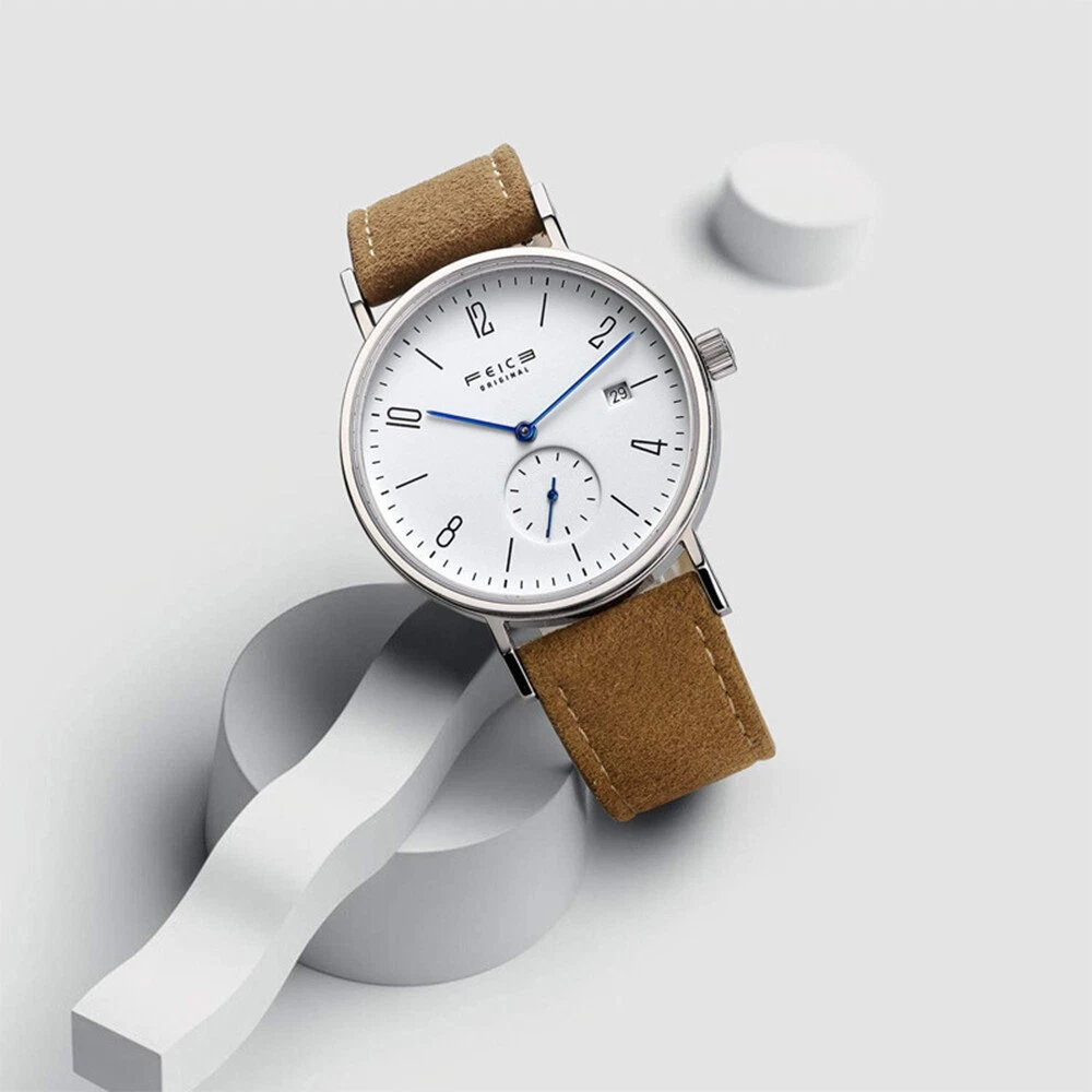 FEICE Men's Automatic Watch Mechanical Watch Stainless Steel Leather Band FM201