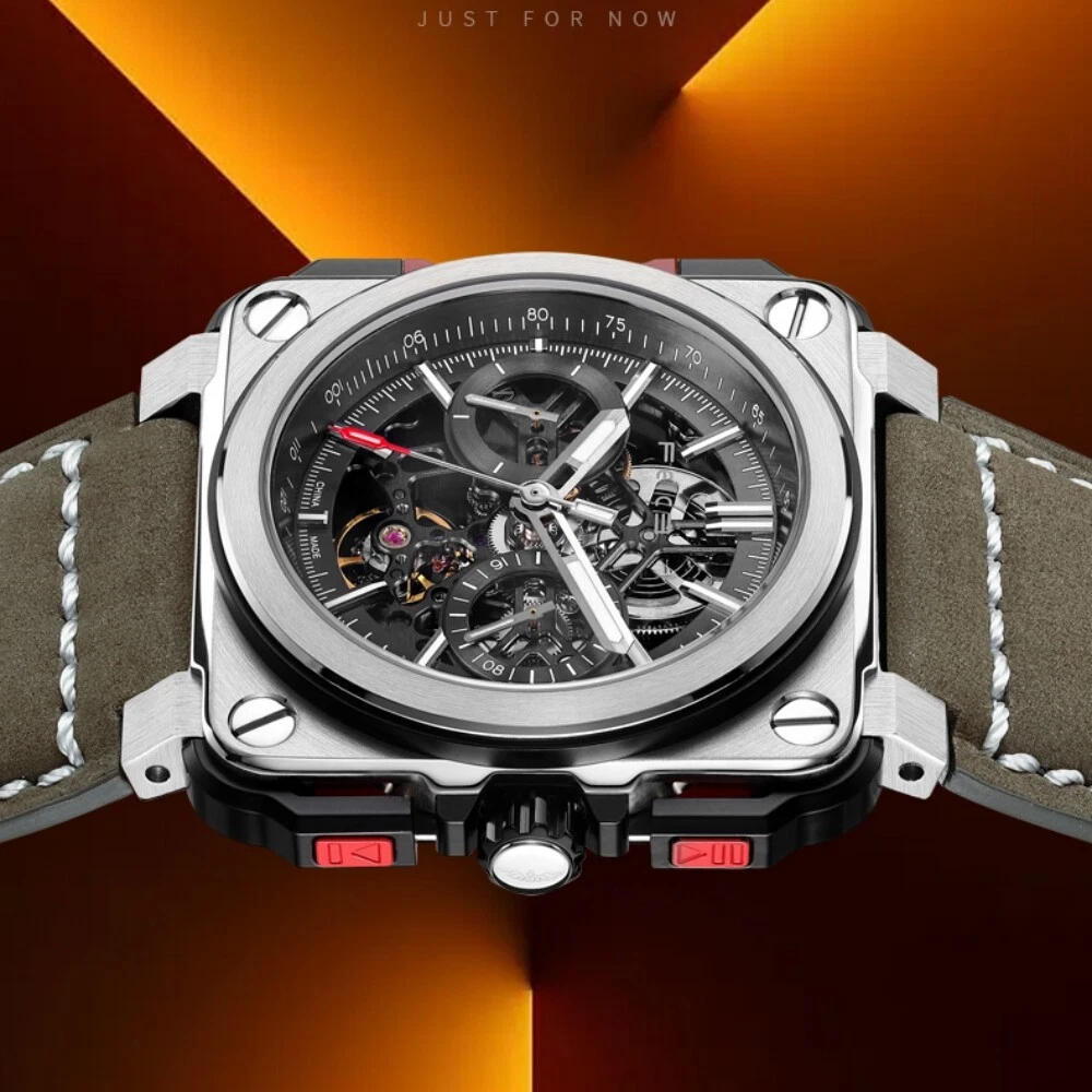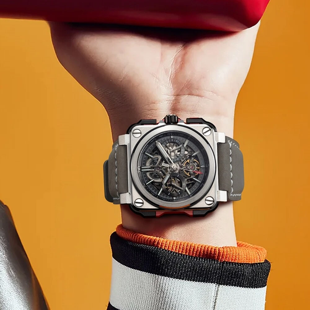 Mens Automatic Skeleton Mechanical Watch Luminous Sapphire Glass 100M Waterproof
