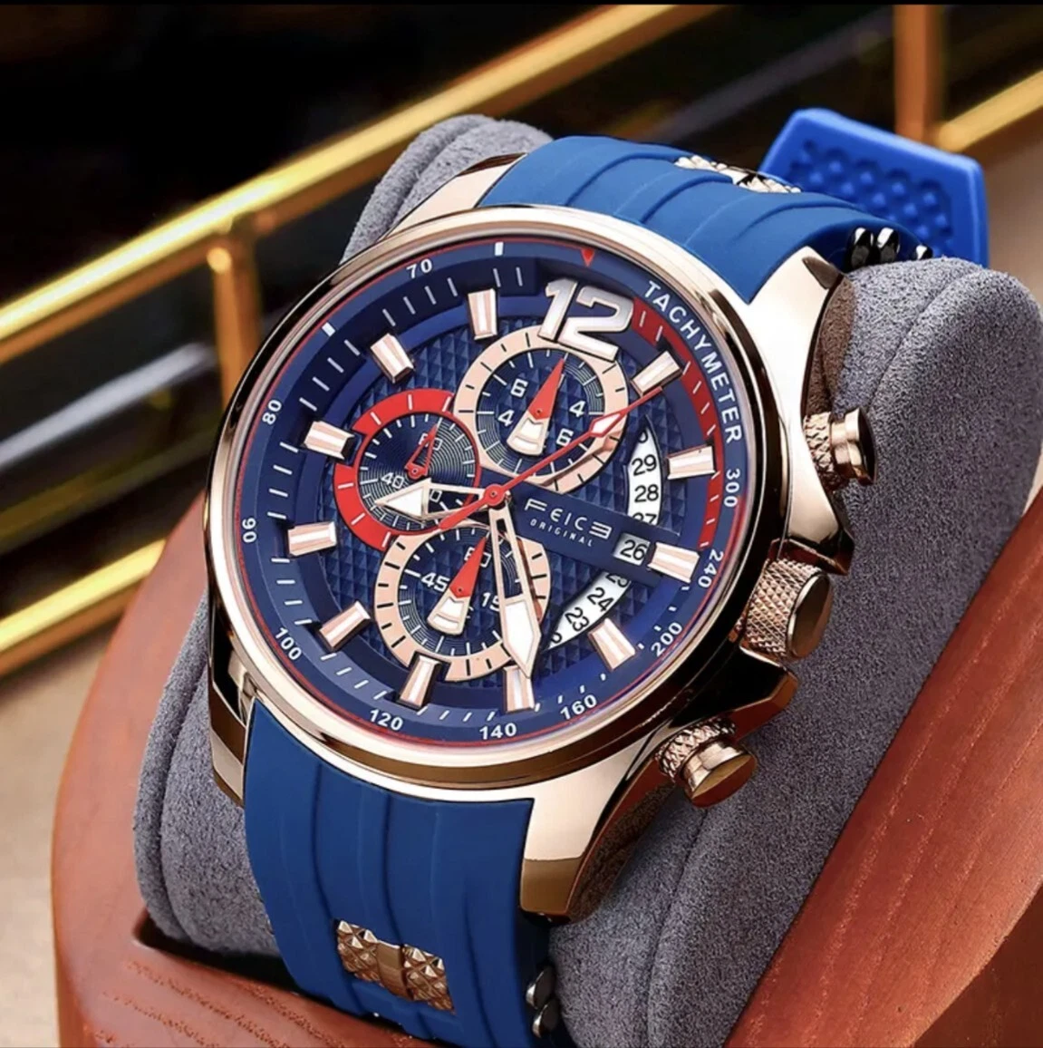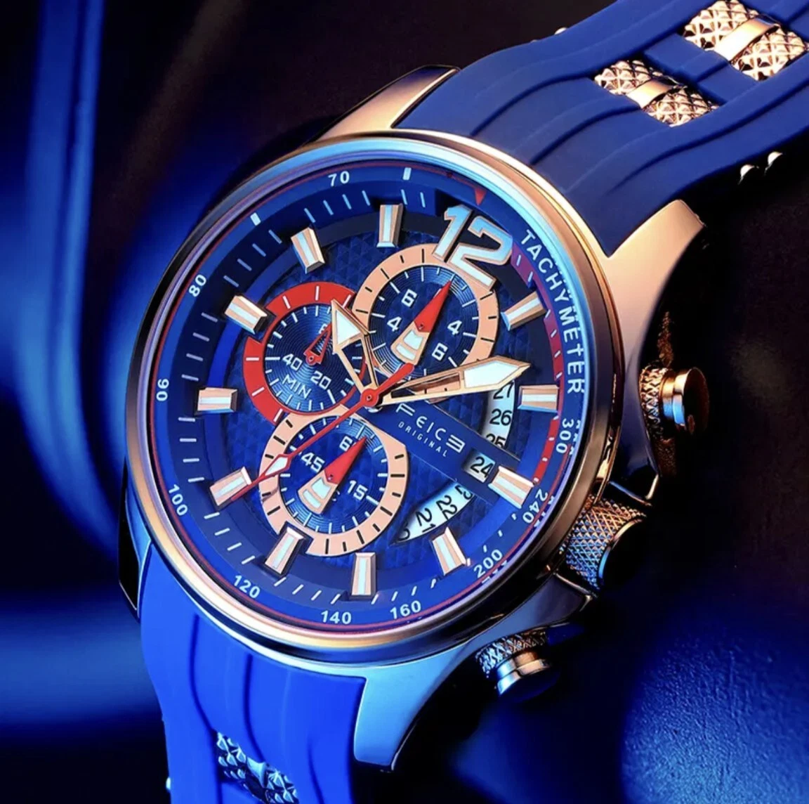 FEICE High-End Men's Watch Multifuctional,Klein Blue Lominous,Waterproof
