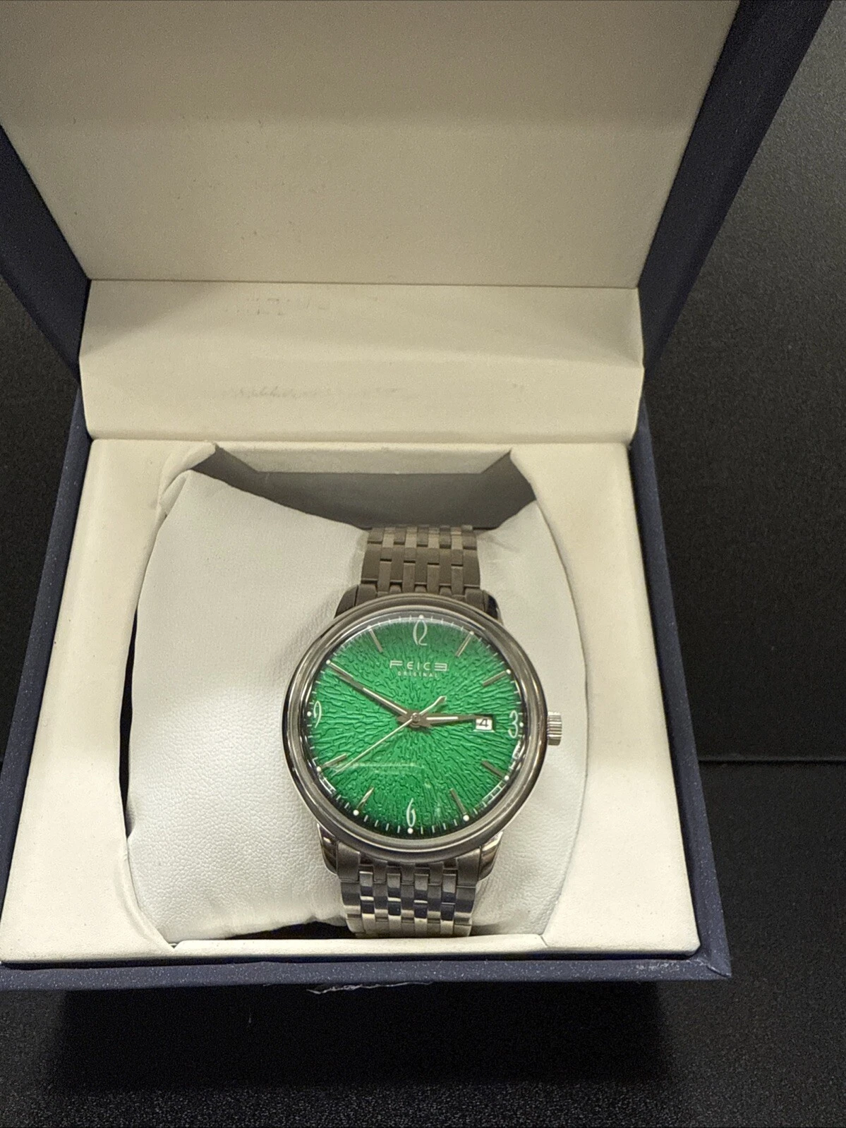 Men's Automatic Mechanical Watches Emerald Green Stainless Steel Thin Waterproof