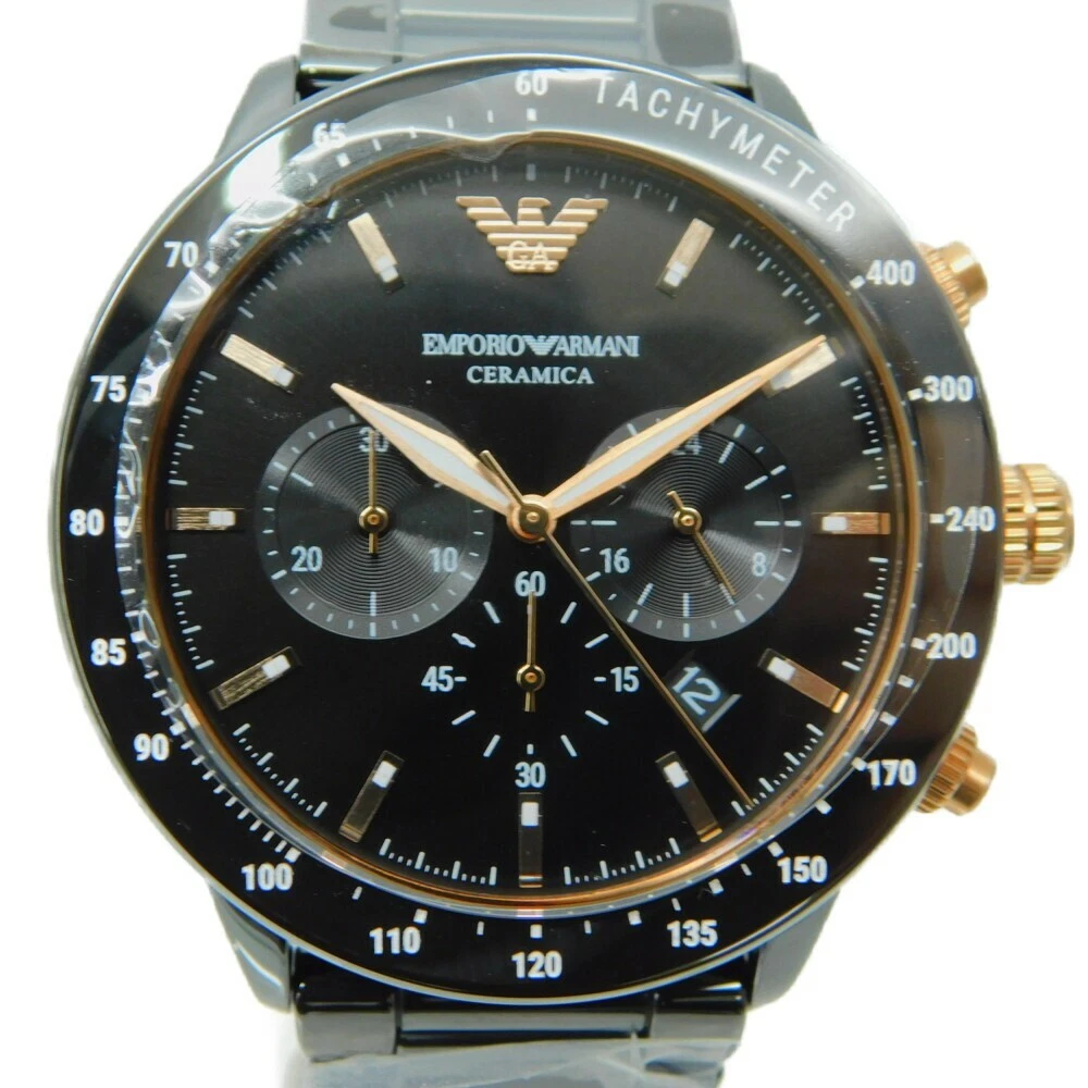 EMPORIO ARMANI Ceramic AR70002 Quartz Date Chrono 43mm Tachymeter Black Men's
